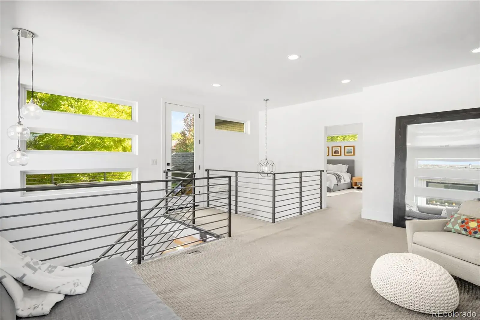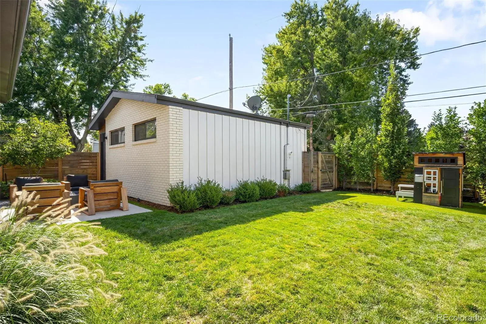 Contemporary and sophisticated design defines this 5-bed, 5-bath residence in Denver’s coveted University Hills neighborhood! An open floor plan showcases a chef’s kitchen with oversized island, striking open-riser steel staircase, and a family room anchored by a sleek fireplace. The primary suite is a retreat with vaulted ceilings, a five-piece spa bath, oversized dual-head shower, and expansive walk-in closet. Walls of windows bathe the home in natural light, while a finished basement speaks volumes about the property and the lifestyle. Outdoor living is elevated with mature landscaping that creates a private backyard oasis, featuring a covered patio, built-in seating, a gas fire pit, and a dedicated gas line for grilling—perfect for year-round entertaining. Enjoy two additional front patios on the main and second levels, offering multiple spaces to relax and unwind. Ideally located just a short walk to nearby parks, Wellshire Golf Course, and convenient access to the scenic High Line Canal Trail. This home has it all! Experience modern elegance at its finest—schedule your showing today!