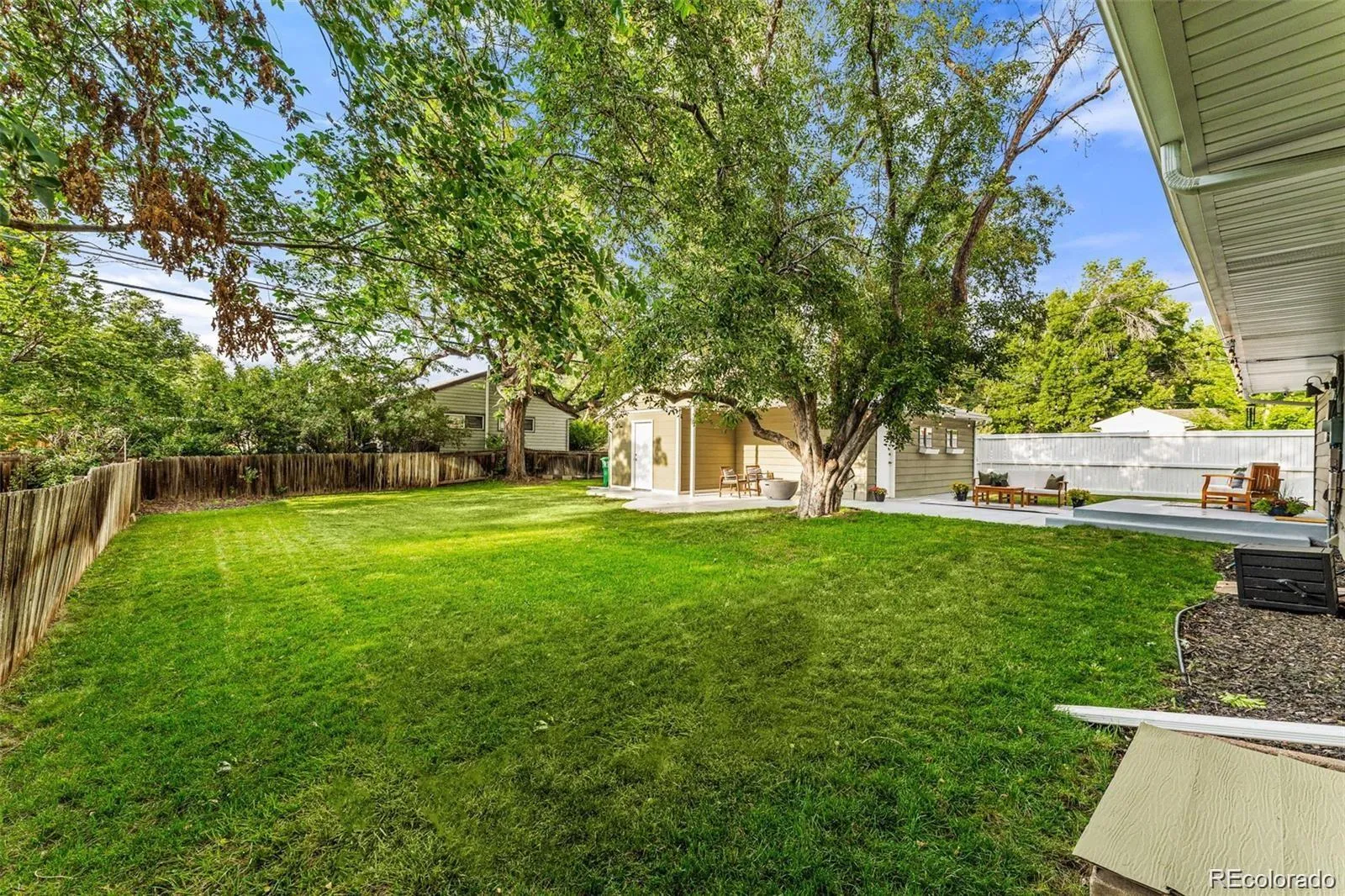 Step outside to one of the largest lots on this side of University Hills—a true standout feature. The expansive backyard offers endless possibilities, from entertaining to relaxation, and even includes a dedicated area ready for an outdoor movie setup. Whether hosting friends or enjoying quiet Colorado evenings, this space delivers.