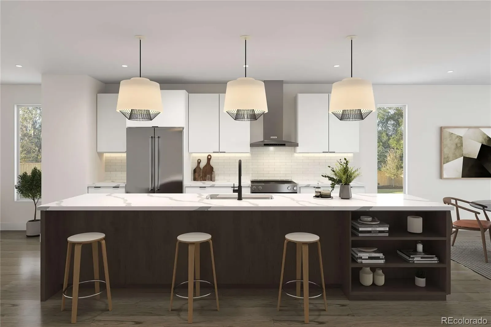 Inside, expansive windows invite natural light across an open-concept main level designed for seamless everyday living and effortless entertaining. Refined materials and contemporary detailing shape a kitchen and living space that feel both sophisticated and welcoming. Inside, exceptionally curated finishes and intentional design details shape a highly functional, light-filled layout ideal for everyday living and effortless entertaining. The main living areas flow seamlessly, while the upper levels provide comfortable privacy for bedrooms and baths. A third-level bonus space with wet bar opens directly to a rooftop deck, creating the perfect setting for sunset gatherings or relaxed evenings under the city sky. Complete with a two-car garage and contemporary craftsmanship throughout, this residence delivers architectural presence, versatile living, and a sophisticated take on new construction in one of Denver’s most connected neighborhoods.