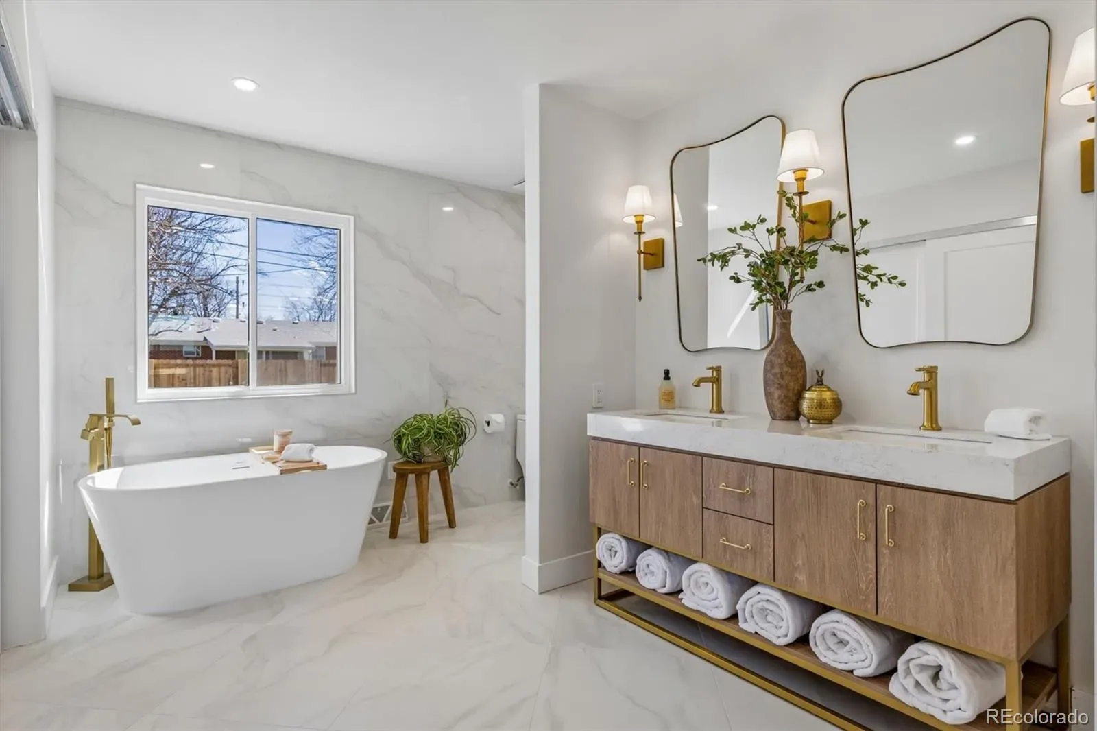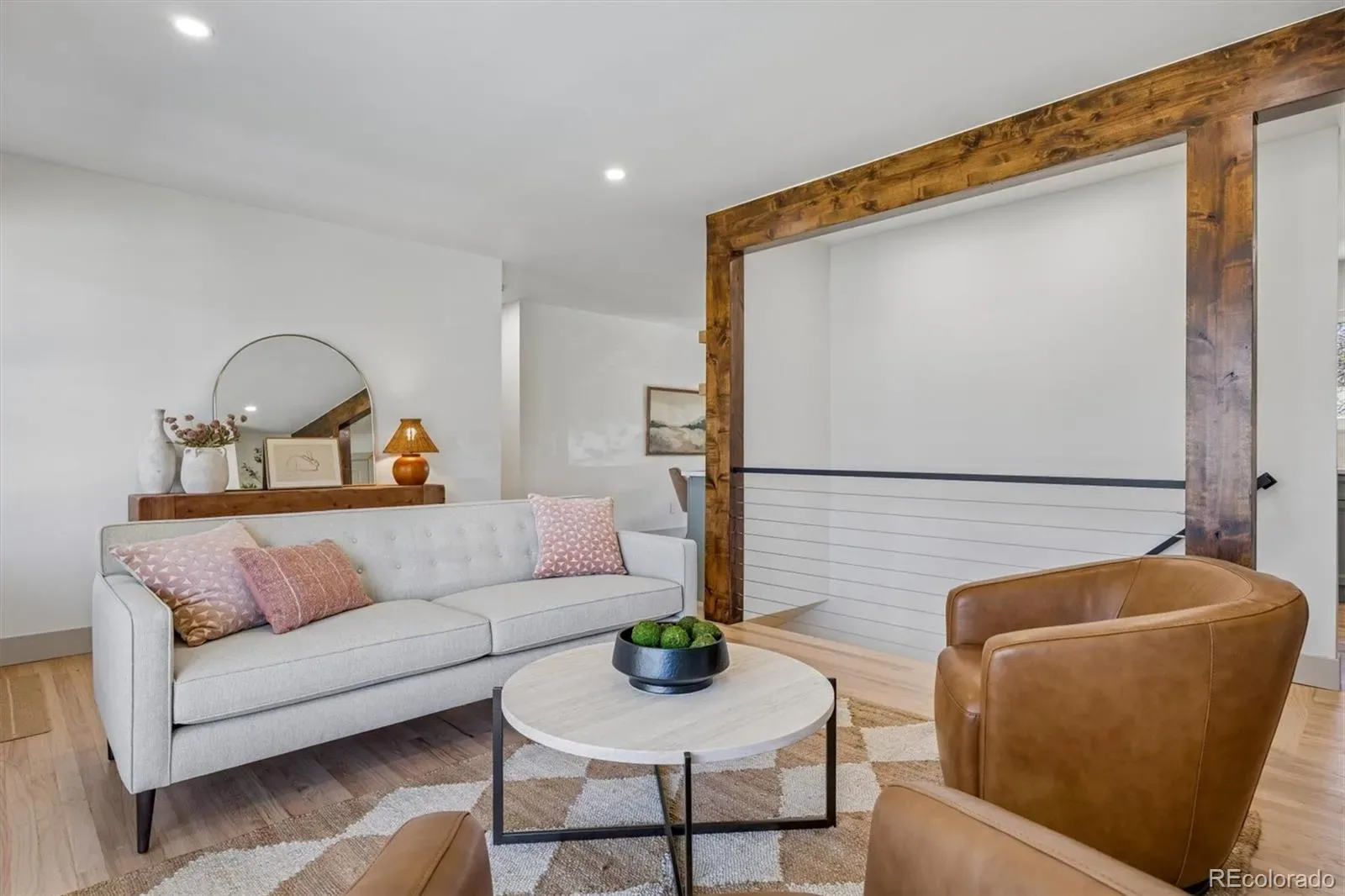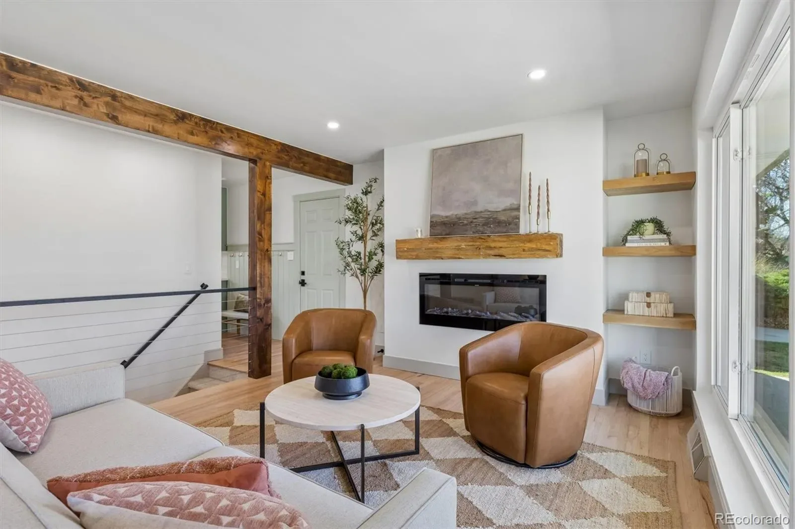 This stunning & renovated home has been thoughtfully remodeled blending modern finishes w/timeless design. The interior features refinished hardwood floors throughout the main floor, new custom trim & molding & an exceptional mahogany entry door featuring Flemish insulated glass creating a striking first impression. The walls reflect a flawless Level 4 smooth finish, complemented by all new door/hardware, elegant light fixtures, recessed illumination & updated switches & outlets for a refined, cohesive aesthetic. The Great Room boasts an 8×5 picture window, stylish electric fireplace w/a reclaimed wood mantel & custom floating shelving. The dramatic open staircase w/a wood beam surround & metal cable railing serves as a standout architectural feature tying the home’s modern yet warm ambiance. The redesigned kitchen w/42″ custom colored cabinetry, quartz countertops, designer tile backsplash, modern lighting & new LG appliances is open to the dining room accented w/a statement light fixture & provides covered patio access. The spacious Owner’s Suite offers a luxurious retreat w/double sink vanity, outstanding 5×7 walk-in shower, free standing soaking tub, designer finishes, lighting & oversize closet. The versatile secondary main floor bedroom/study, enhanced by a beautifully designed full bath, completes this level. The gorgeous finished basement adds significant living space including new carpet, dry bar w/beverage cooler, 2 bedrooms w/new egress windows, totally remodeled 3/4 bathroom & a large dedicated laundry room complete w/washer/dryer, utility sink, & laminate wood flooring. Exterior upgrades include new windows, fresh paint using premium Romabio masonry paint for long-lasting durability & added shutters for impressive curb appeal. The outdoor living area highlights a landscaped yard, new rear privacy fencing & a discreetly enclosed space for trash & utilities, combining style & functionality. THIS HOME SHOWCASES UPSCALE FINISHES THAT SET IT APART!!