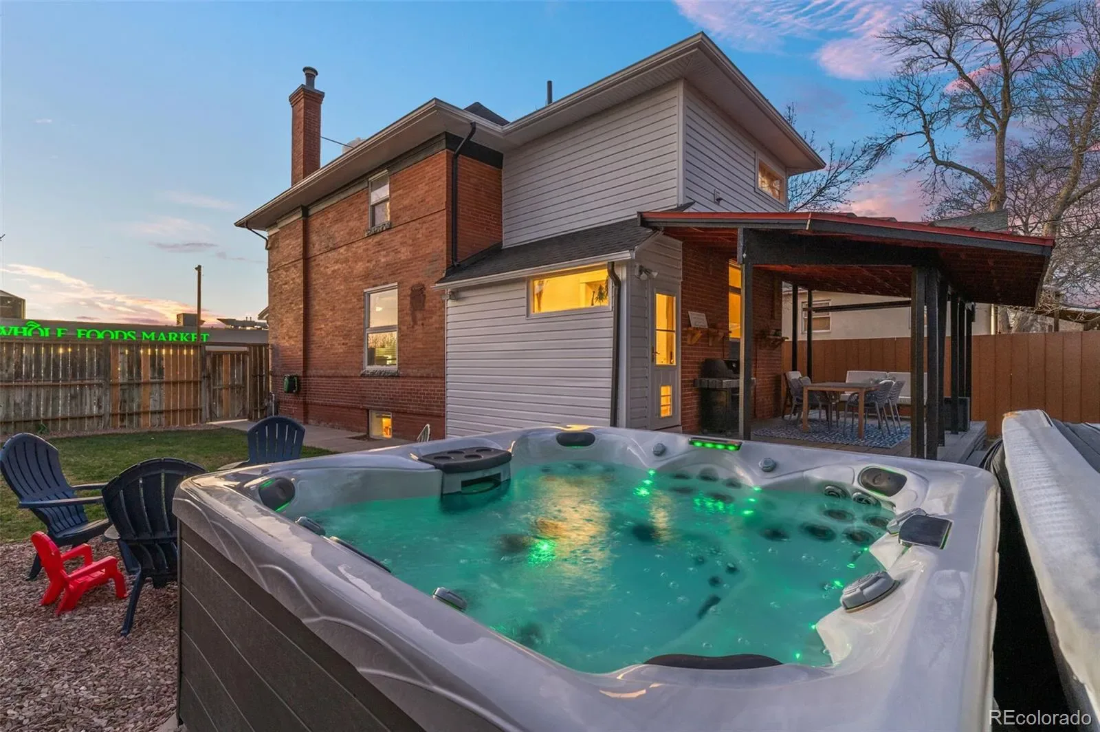 STUNNING WEST WASH PARK HOME WITH RENO’D ADU+SHORT WALK TO WASH PARK, WALKING DISTANCE TO AN ARRAY OF VIBRANT RESTAURANTS, BREW PUBS+NEIGHBORHOOD PARKS. Lovely brick home with enclosed front porch. Great place to relax +unwind or enjoy your morning coffee. As you enter the front door you are greeted by a gorgeous wood crafted staircase+etched glass entry to the living area. The recently remodeled kitchen has beautiful wood cabinets, stainless steel appliances, farmhouse sink, lots of cabinet+counter space, and incredible wood floors, which are found throughout. The kitchen overlooks the dining+ living areas, making entertaining fun. The main floor bedroom with remodeled full bath includes beautiful tile work, newer vanity + lighting. It is the ideal space for guests. Head upstairs to the private primary suite with his and her closets, a 3/4 bath en suite, with double sinks, + walk-in shower. The laundry is conveniently attached to the en suite bathroom which makes doing laundry easy. Just down the hall is the 3rd bed with lots of natural light, ample closet space+ sitting room to curl up & read a book. The basement provides the perfect private office space for the work from home professional, a storage closet, + separate storage with lots of room for all your gear. Step out onto the incredible covered back deck on the 6250 sf double lot. The large lot includes a planter box ready for you to plant and enjoy your veggie and/or flower garden, + a private hot tub for you to enjoy to end the day. Rare detached ADU studio with bathroom and kitchenette. Great for mother-in-law suite or rental income potential. Easy access to biking trails, playgrounds + shopping. Light rail is just 2 blocks away. Walk to Fierce 45 for pilates, Rosie’s Ice Cream + Roast Coffee Bar in less than 5 minutes. Short 10 min drive to DTD. (Roof 2020, Tankless Hot water heater 2023, Sump pump 2021 Newer Hot Tub). This rare home has so much to offer, come by & check it out. You’ll be glad you did.