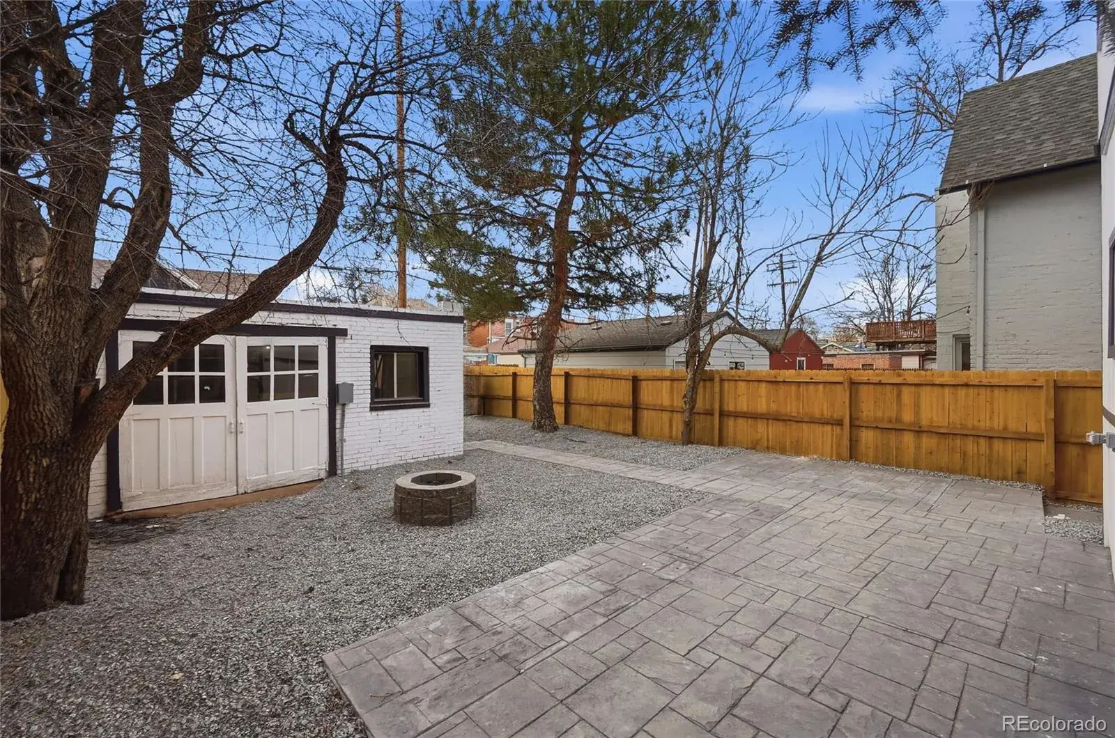 Outside, the home continues to impress with an inviting covered front porch and a backyard designed for low-maintenance entertaining, featuring custom stamped concrete, firepit area, and space for gatherings. A detached garage adds additional storage and convenience.