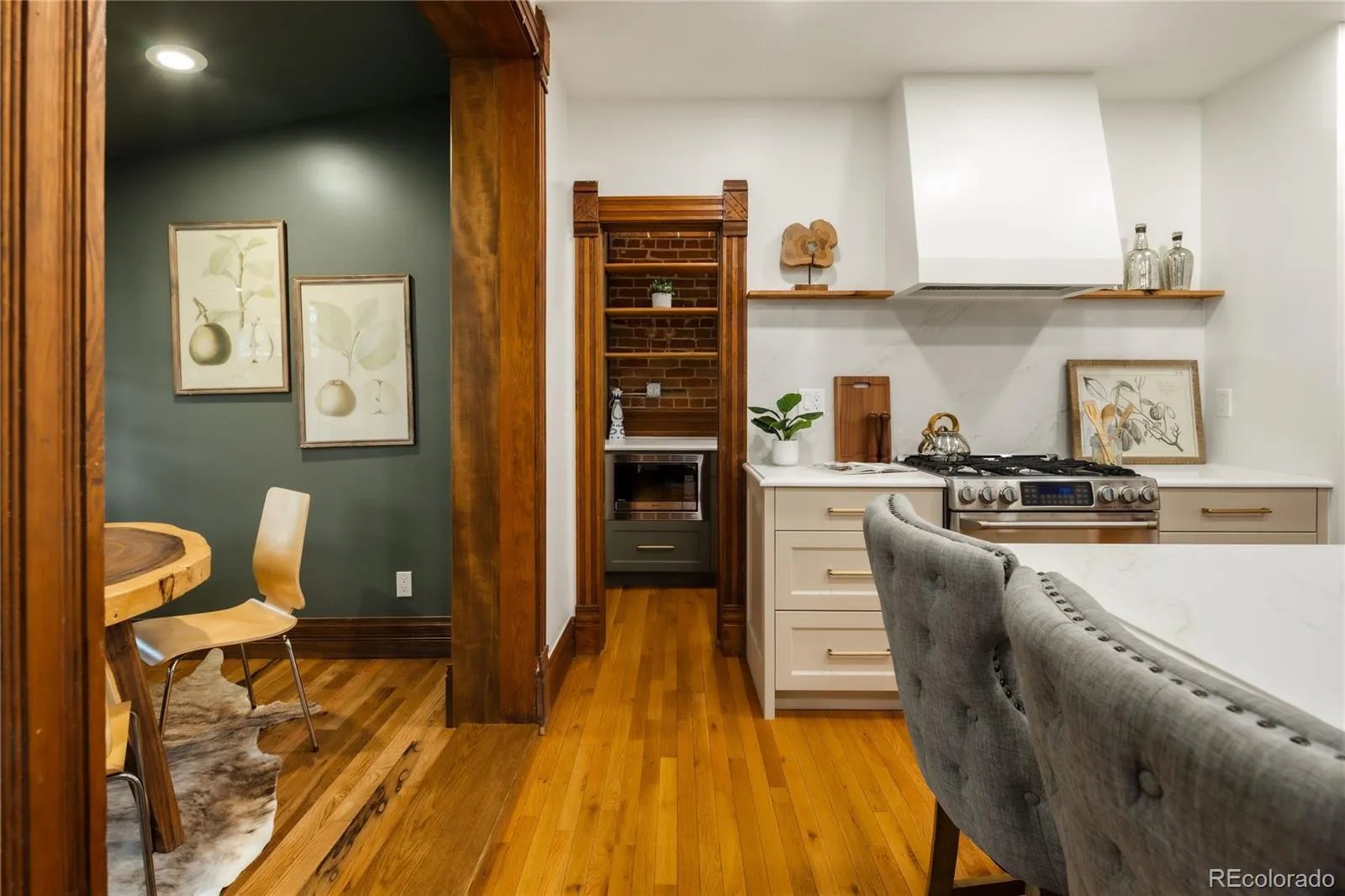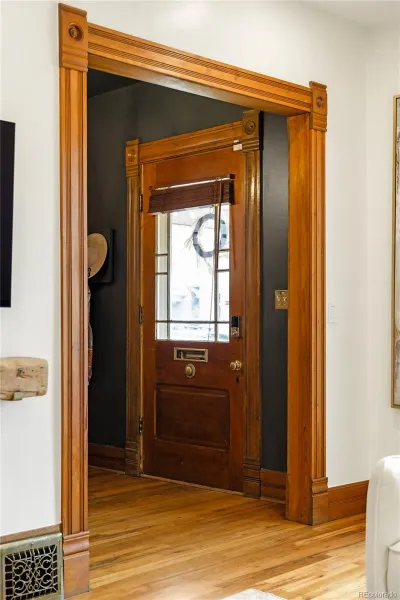 Timeless charm meets modern refinement in this beautifully renovated Victorian in Denver’s highly sought after Washington Park neighborhood. Inside, the home artfully blends original architectural details with thoughtful updates. Exposed brick and preserved woodwork greet you upon entry and continue to captivate throughout. Afternoon sun pours through an arched stained glass window, offering elegant privacy while filling the west-facing home with warm natural light.