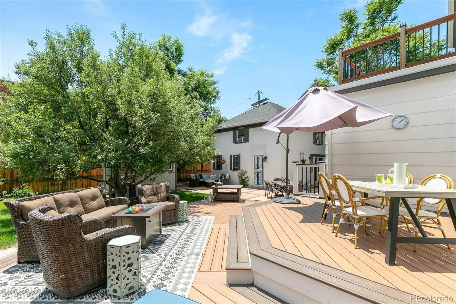 Crown Jewel in Highlands! 2 houses on 4 city lots in top location just blocks to Highlands Square & Tennyson! 3846 square foot 2-Story Denver Square with 5 bedrooms/3 bathrooms coupled with another 2-story fully self-contained 1092 square foot 2 bed/1 bath Carriage Home with farmhouse flair. Over 3000 sf of finish in main house with tremendous public spaces including a grand foyer, original staircase, a superb great room with media and conversation space, impressive formal dining room large enough to seat 10 with built-in hutch. A casual dining area overlooks lush backyard. Kitchen, laundry, & powder room complete the main floor. Original pocket doors, bay windows, rich wood floors throughout, front & back staircases, beautiful trim and large windows throughout. Upstairs you’ll find 4 large bedrms, 1 full bath, a spacious office, plentiful closet space. Center hall access to the 2nd story deck overlooking expansive grounds. Casual dining area, large enough to pair with playroom, provides everyday dining space and opens to a magnificent deck and grounds. “Comfy” kitchen overlooks lush backyard, but kitchen needs future renovation and has space to expand into something extraordinary. Step outdoors to enjoy huge deck overlooking the manicured grounds, sunshine year round complete with veggie beds, play space, turf, dining areas and more… Main house basement features a new, beautifully crafted media room, a new 3/4 bath and plenty of storage, new HVAC/ducting, and new paint. Carriage home includes a cute, sunny kitchen with stainless steel appliances, 2 bedrooms, + 1 full bath. Rare Find! Great value for the size of house, grounds and setting! Note, main house is in need of a kitchen renovation to include a floor plan adjustment, and a primary suite on 2nd story as well… There is currently no garage, but the lower floor of carriage could be converted back… house lives nicely. Lots of upside here!