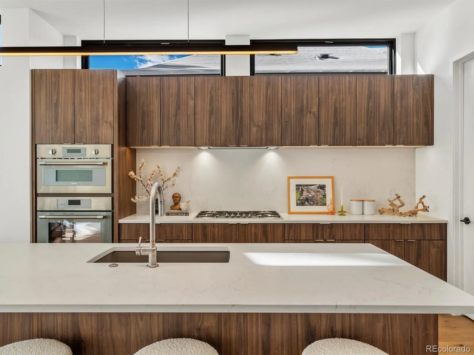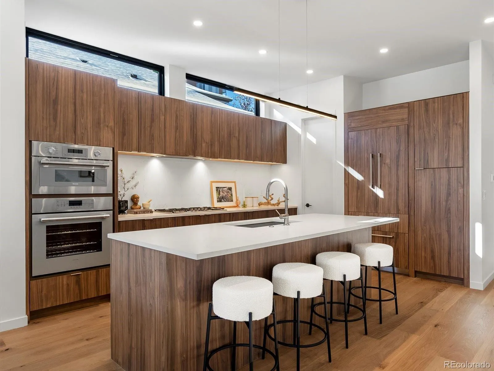 Constructed in 2025, this brand-new, solar-powered home offers 3 bedrooms, 4 baths, an upstairs laundry room, plus a dedicated office/flex space. Soaring ceilings, abundant natural light, and 8” wide white oak flooring create a warm, modern and airy feel throughout. The chef’s kitchen is anchored by custom walnut cabinetry and premium Thermador appliances, making weeknight dinners feel elevated and gatherings effortless. Upstairs, the primary suite offers a true retreat, complete with a spa-inspired bath featuring a Jetta soaking tub and gorgeous walk-in shower. For movie nights and Broncos parties, the expansive entertainment room with a large wet bar and 9.5’ ceilings will not disappoint.