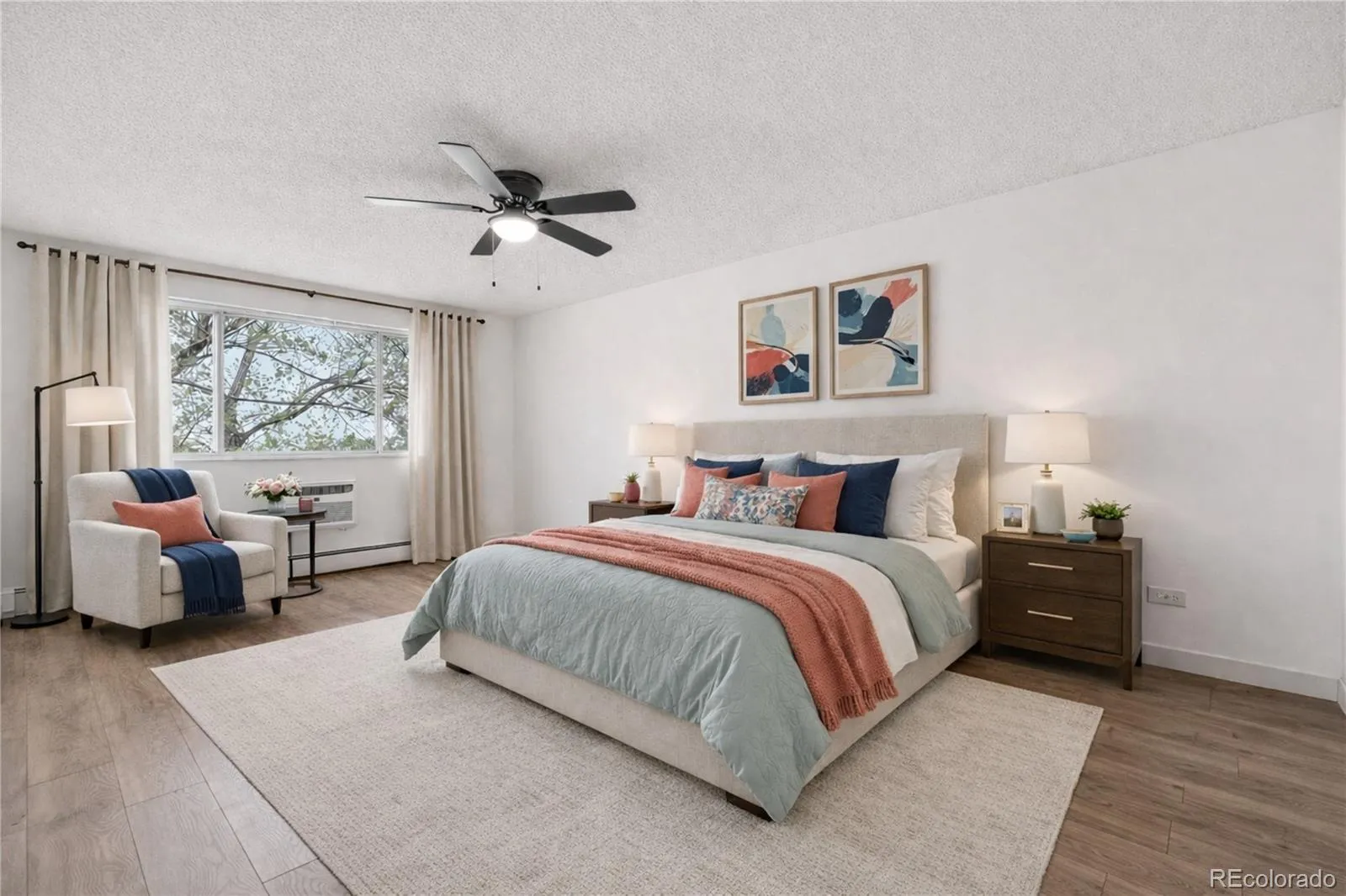 Welcome to Winsor Gardens, a vibrant 55+ community offering low-maintenance living with an exceptional array of resort style amenities in the heart of Denver. This updated, one of the largest condo in the complex is filled with natural light and features a spacious, open layout. Located on the third floor, the home offers stunning mountain, open space and city views from a generous covered balcony – perfect for morning coffee meditation or evening relaxation. Beautiful hardwood floors flow throughout the condo adding warmth and elegance. The primary suite includes a large walk-in closet and a tastefully updated private shower while a bright spacious non-conforming second bedroom and versatile nook provide flexible living space. Another fully updated full bathroom is conveniently located in the hallway. Plenty of storage throughout make this home as functional as it is inviting.Perfect parking spot in underground garage,close to the building no stairs!