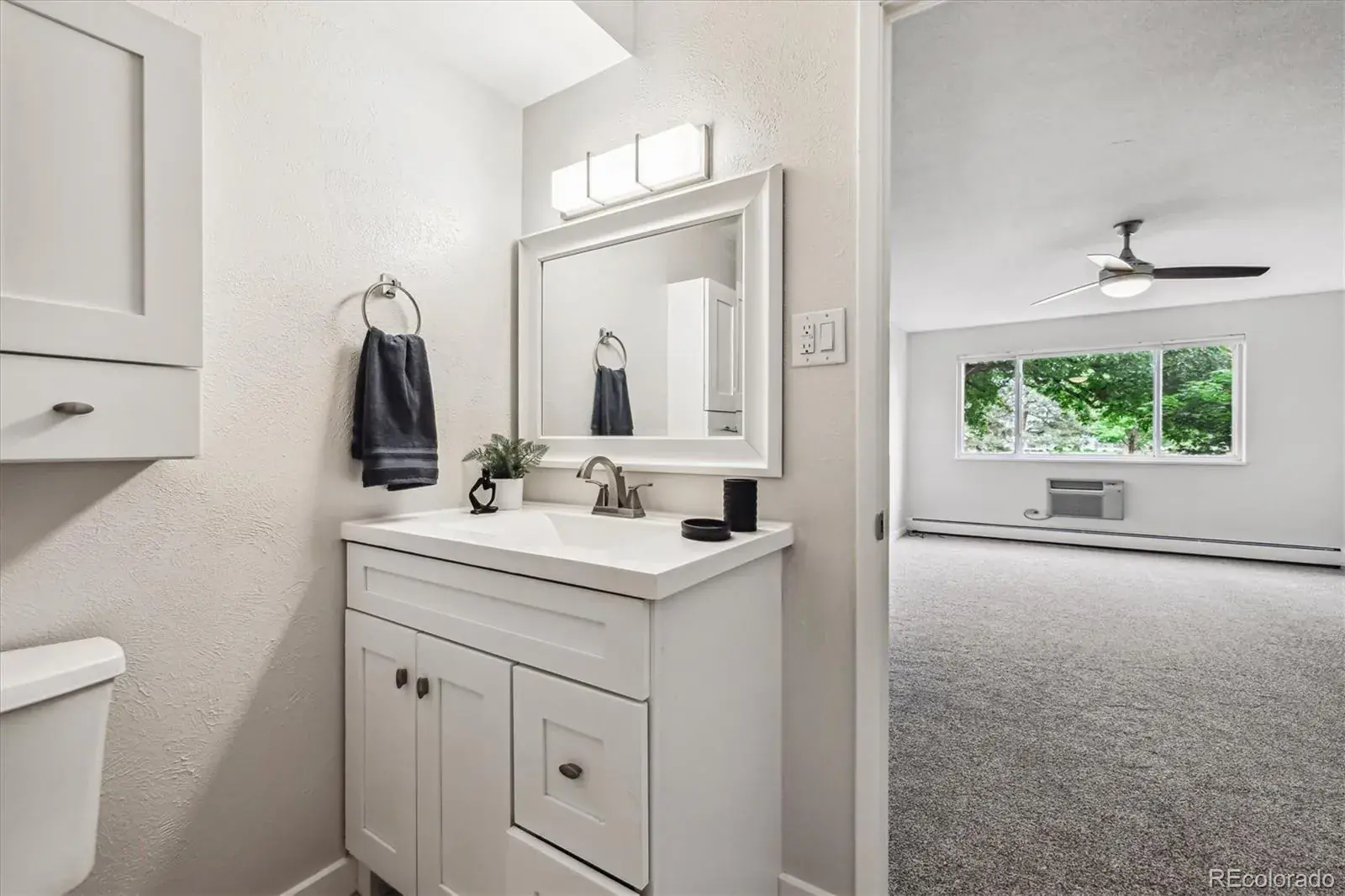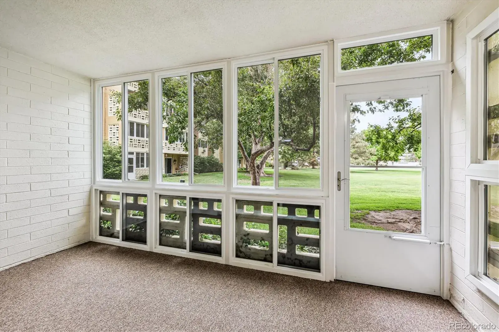 Huge Price Improvement! Great Opportunity! Golf Course Views from 1st Floor Condo! Remodeled and beautiful, this property is 1200 sf, with 2 bedrooms, 2 bathrooms, multi-purpose room, and 1 detached garage included! Kitchen features open floorplan- newer cabinetry freshly painted white, stone slab counters, tile backsplash, stainless appliances, tile floor, and spacious pantry. Bathrooms remodeled with tall white vanities, updated fixtures, lighting, and tile surrounds in both tub and shower. Primary bedroom is oversized with en-suite 3/4 bathroom and oversized walk-in closet. All new carpet and interior nuetral 2 tone paint color scheme. Enjoy the vast golf course scenery from this double pane vinyl enclosed lanai with tile floor. Bonus storage room in building. Additionally there are 2 updated wall ac units- one in living room, the other in primary bedroom. This condo is a must see!**Windsor Gardens is Colorado’s Largest Age 55+ Active Adult Living Condo Community. Did you know? Monthly HOA Dues include annual property taxes! And heat, water, sewer, trash, round-the-clock patrolling community responders, full time onsite association management, grounds/building maintenance, and activities department. Enjoy clubhouse amenities such as fitness center, indoor/outdoor pools, hot tub, sauna, billiards, library, craft rooms for ceramics, sewing, woodworking, and 9 hole par 3 golf course and onsite restaurant both open to the public. Stay engaged with a wide array of activities, clubs, and events scheduled every month. Additional features include garden plot program, private walking trail and nature preserve, and RV/Boat storage. The Highline Canal runs full length along south side of the complex. RTD Bus Stops located thru-out the community. FHA/VA approved. Close to restaurants, stores, shopping…Minutes to Lowry, Hwy 225, Cherry Creek…Easy access to DIA and downtown. Come see for yourself what Windsor Gardens has to offer. ©2021**