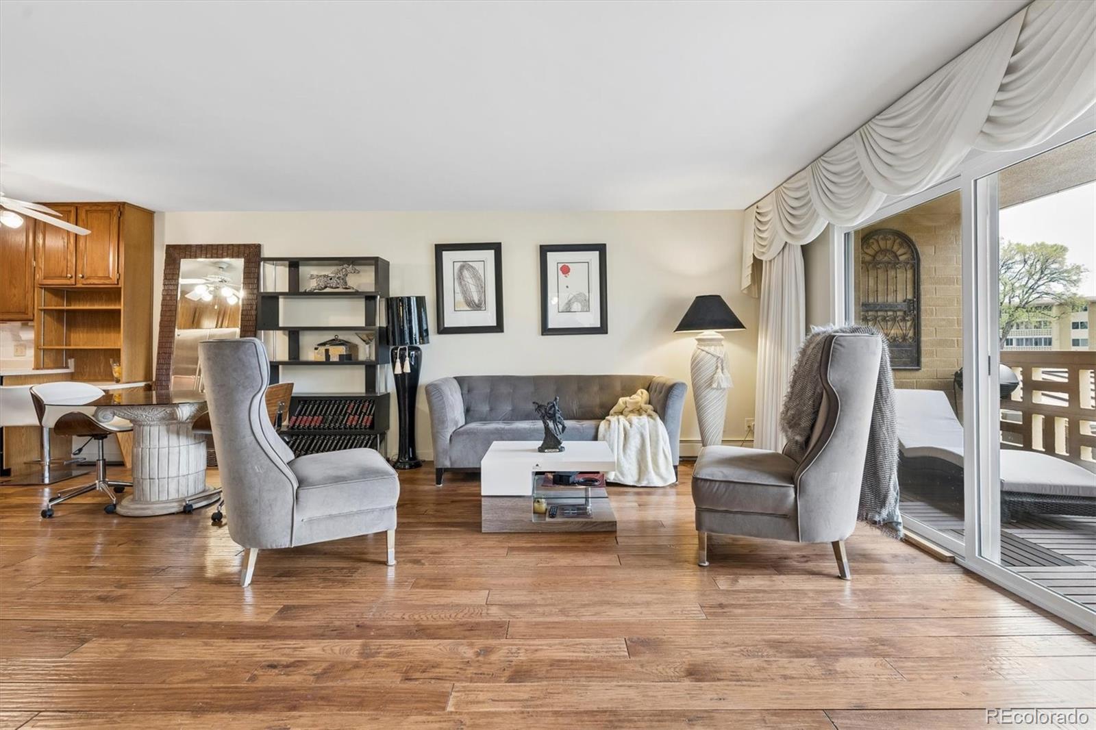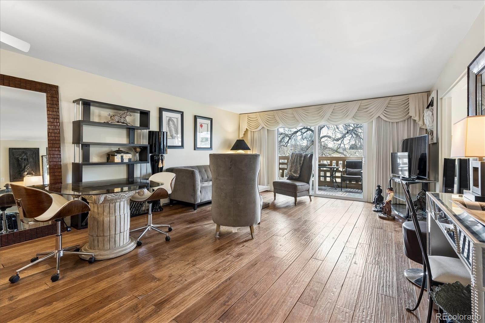 Step into effortless living at 9355 E Center Ave #7B—where every detail has been thoughtfully reimagined for comfort, style, and ease. This beautifully updated 2-bedroom, 2-bath residence welcomes you with rich solid hardwood floors, smooth modern ceilings, and a warm, inviting ambiance that instantly feels like home.