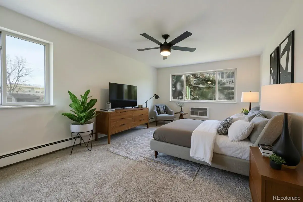 Totally renovated and gorgeous- this is a rare 1200 sf corner condo, with 2 bedrooms/2 bathrooms, and 1 car underground parking. This is one you will want to see! New kitchen w/white shaker cabinets, quartz slab countertops & backsplash, all new fixtures & stainless appliances. Bathrooms renovated w/all new tile work, fixtures, vanity’s, and quartz tops. New: neutral paint, baseboards, vinyl COREtec flooring thru-out the main living area and kitchen, carpet in bedrooms, lighting, fixtures, and 3 digital wall ac units. Bonus primary bedroom w/2 windows, walk-in closet, and en-suite 3/4 bath. Additional storage room in building on same floor. Building is close walking distance to clubhouse and all its amenities and several shops. Great opportunity to move into this gem! **Windsor Gardens is Colorado’s Largest Age 55+ Active Adult Living Condo Community. Did you know? Monthly HOA Dues include annual property taxes! And heat, water, sewer, trash, round-the-clock patrolling community responders, full time onsite association management, grounds/building maintenance, and activities department. Enjoy clubhouse amenities such as fitness center, indoor/outdoor pools, hot tub, sauna, billiards, library, craft rooms for ceramics, sewing, woodworking, and 9 hole par 3 golf course and onsite restaurant both open to the public. Stay engaged with a wide array of activities, clubs, and events scheduled every month. Additional features include garden plot program, private walking trail and nature preserve, and RV/Boat storage. The Highline Canal runs full length along south side of the complex. RTD Bus Stops located thru-out the community. FHA/VA approved. Close to restaurants, stores, shopping…Minutes to Lowry, Hwy 225, Cherry Creek…Easy access to DIA and downtown. Come see for yourself what Windsor Gardens has to offer. ©2021**
