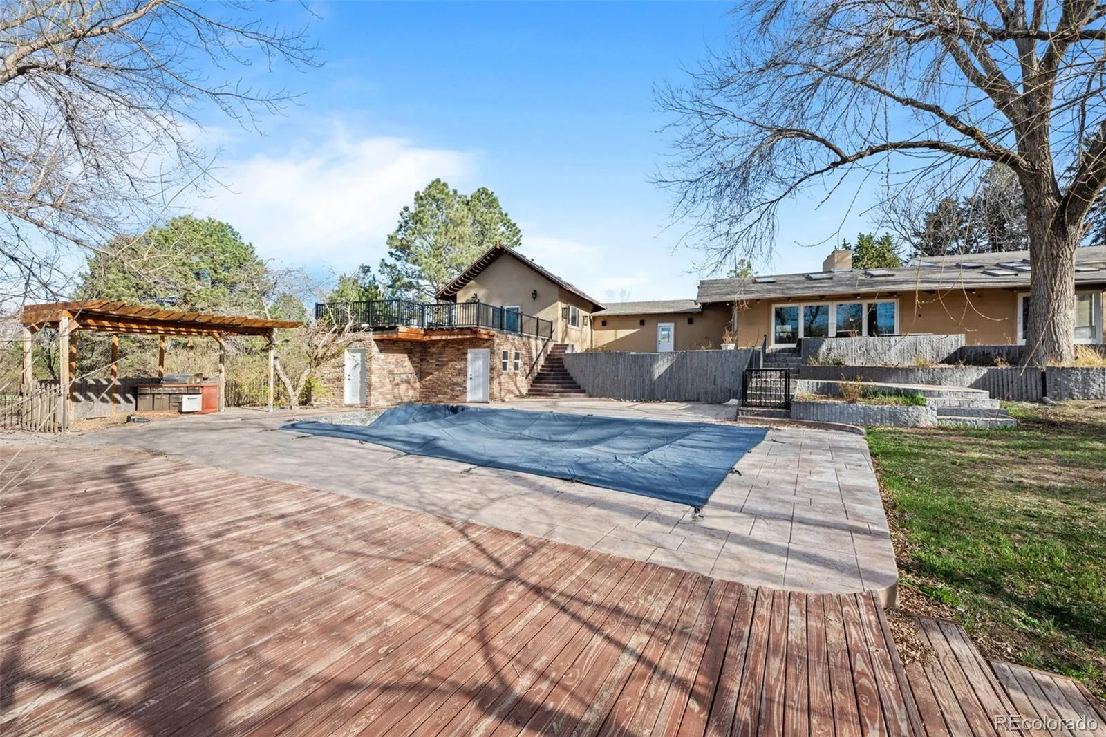 1130 E. Kenyon is a very rare opportunity to own 1.25 acres in the heart of Cherry Hills Village, located at the west end of the Cherry Hills Country Club Golf Course. This property is spectacular with mature trees/grounds highlighted with a peaceful stream, sweeping green lawns, expansive patio areas & a swimming pool. The inside of this home has been completely gutted, ready for a scrape or total remodel. The owners have plans designed by Steve Diamond, to build an amazing guesthouse/pool party house and new pool and patios. Plans are available with the sale of the home/land. This is one of the best priced parcels of land/home in Cherry Hills Village, with 1.25 acres you could build a home, new pool, sport court, etc.