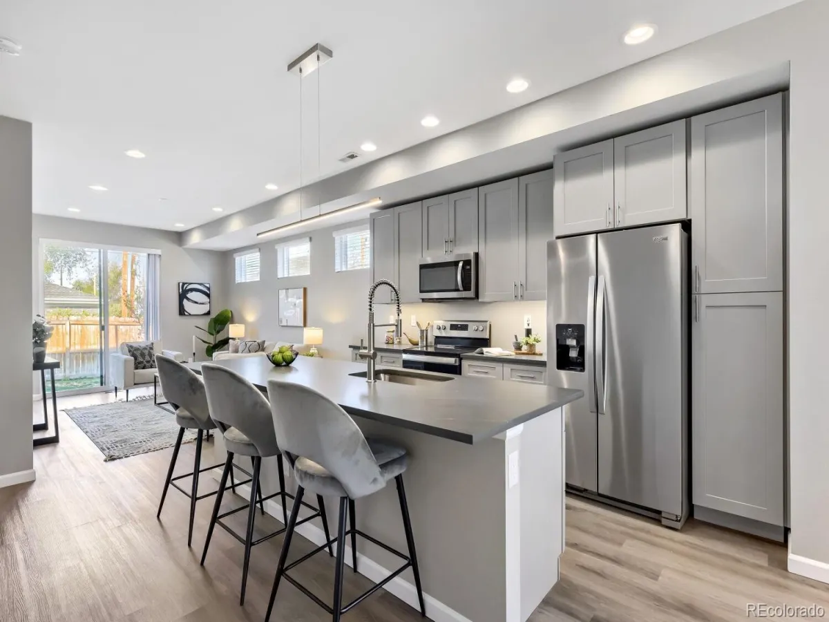 Discover the perfect blend of space, style, and convenience in this corner unit 3-bedroom, 4-bath duplex nestled near downtown Englewood, CO. Thoughtfully designed for modern living, this home offers generous room to grow, entertain, and unwind. Check out the sleek, well-appointed kitchen featuring contemporary finishes and spacious island perfect for whipping up a quick breakfast or hosting a dinner party. The open floor plan flows effortlessly into the living spaces, creating a warm and inviting atmosphere with a lot of natural light. There is a nice transitional area with a bench and good storage on the main level.