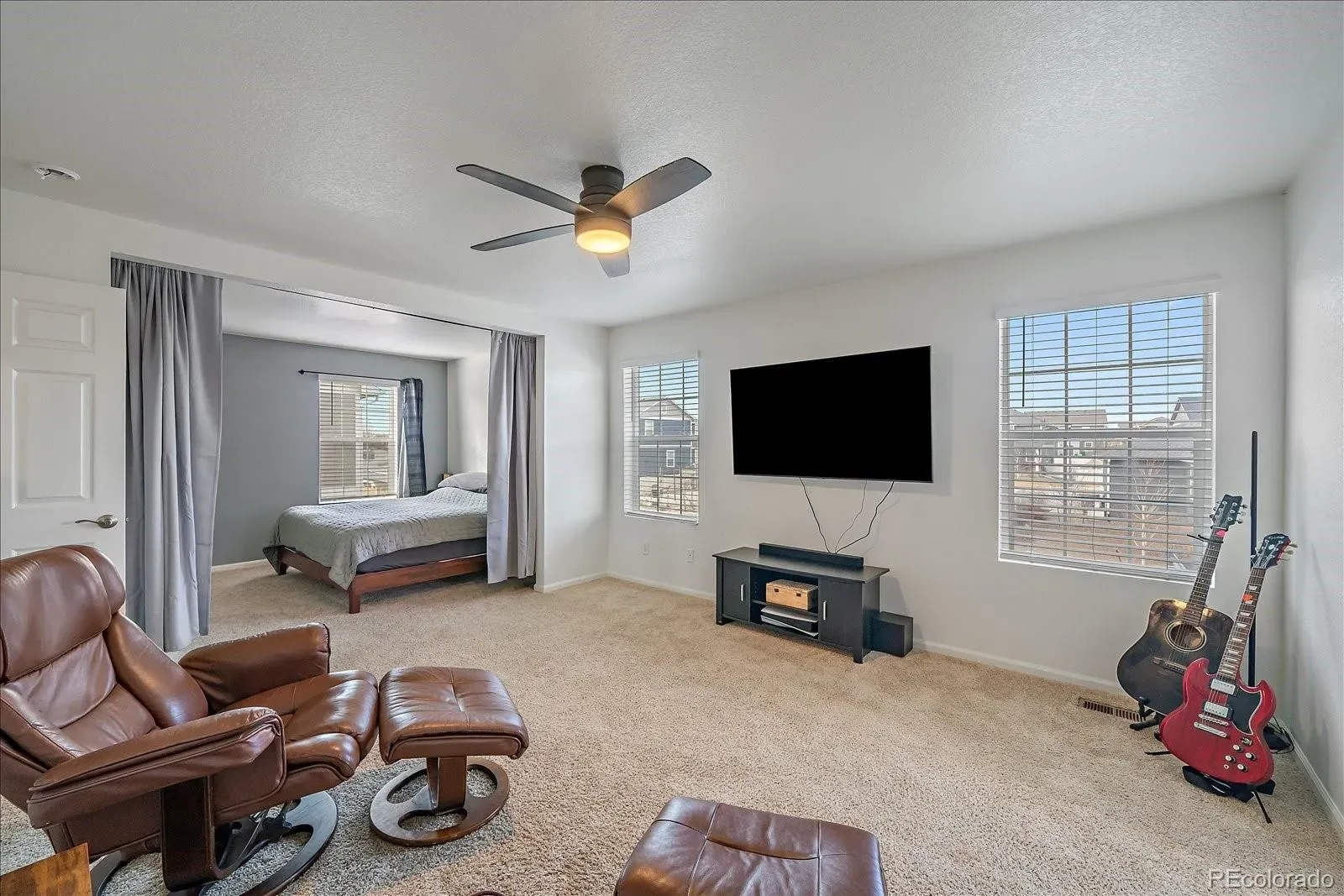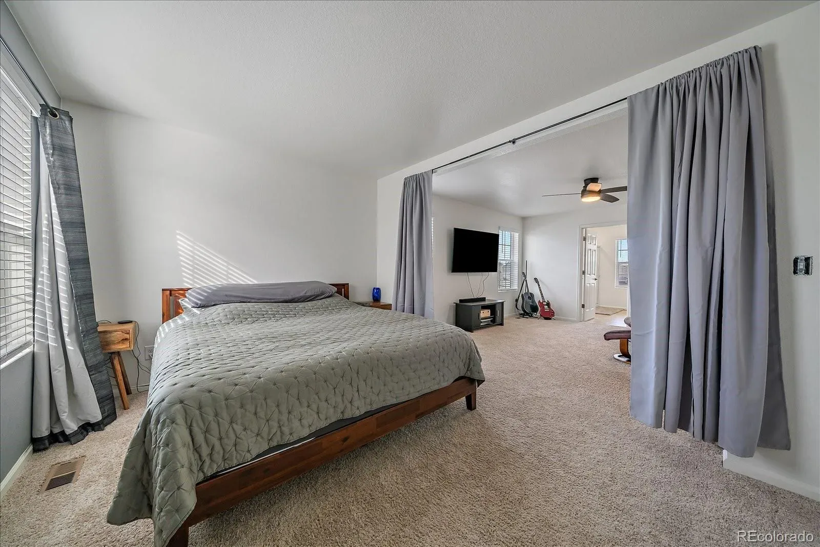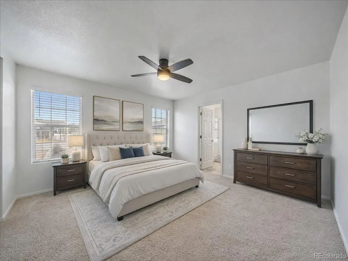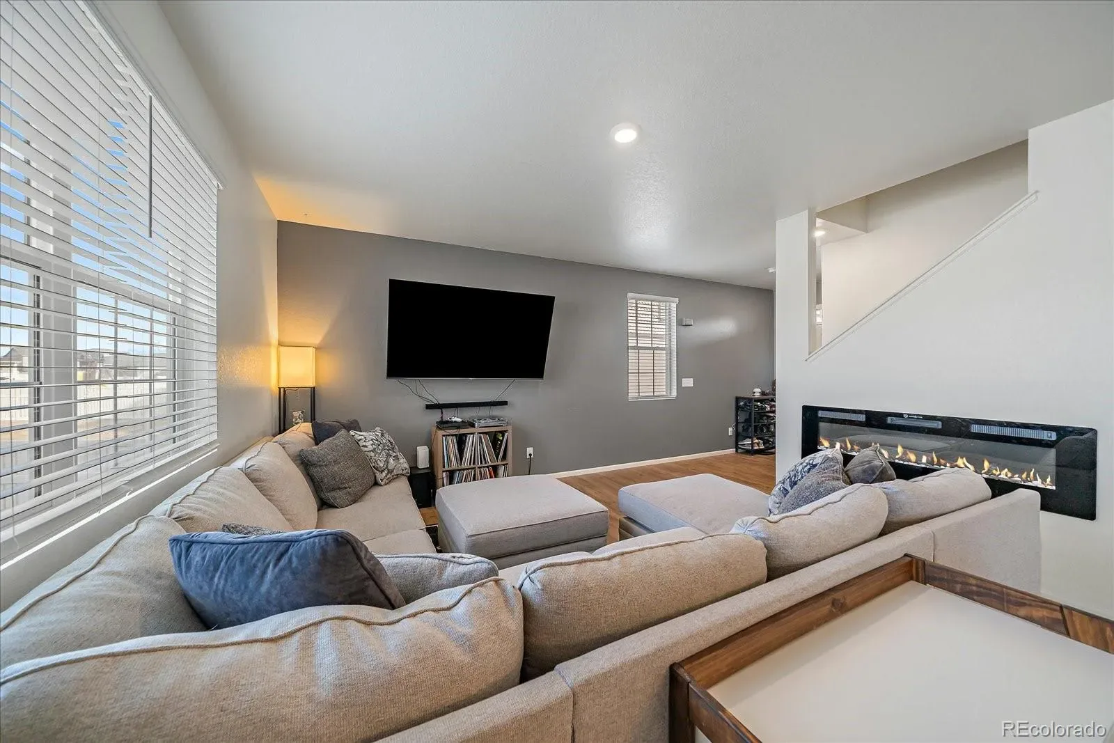 Thoughtfully designed and beautifully maintained, this near new single family home offers a seamless blend of modern functionality and timeless style in Neighbors Point. With open living spaces that are inviting and designed for connection, this home redefines everyday living. The main level is anchored by wide-plank flooring that flows effortlessly from the entry through the kitchen and great room, creating warmth and continuity. The kitchen features rich espresso cabinetry, granite countertops with natural movement, stainless steel appliances, a spacious center island with seating, and a walk-in pantry—perfectly positioned to overlook the living and dining areas for effortless entertaining. Natural light fills the great room, while sliding glass doors extend the living space to a covered patio and expansive fenced backyard. A thoughtfully designed paver patio creates an additional gathering area, ideal for enjoying Colorado evenings. The primary suite offers generous proportions including a large sitting room, a walk-in closet, and a bright ensuite bath with dual vanities. Two additional bedrooms, a full bath, and convenient upper-level laundry complete the second floor. The full unfinished basement presents endless potential for future expansion, storage, or customization. Additional features include central air, tankless water heater, solar panels and a three-car attached garage. Located near parks, trails, Centennial Elementary, shopping, and everyday amenities, this home delivers comfort, style, and room to grow in the desirable community of Neighbors Point.