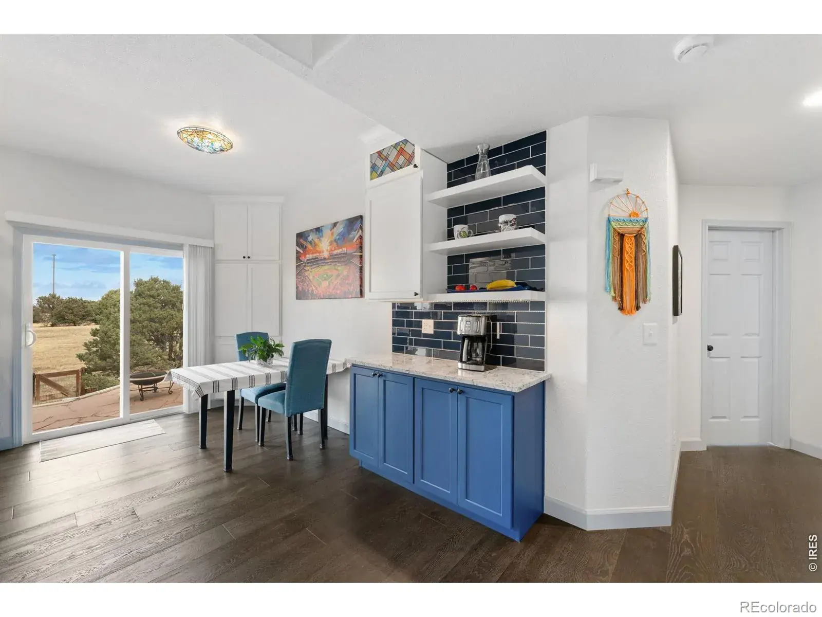 Welcome home to this beautifully updated 1 1/2-story retreat backing to open space. From the moment you enter, wide-plank flooring and a bright, open floorplan create a warm and inviting feel. The spacious living room features vaulted ceilings and flows seamlessly into the dining area with a built-in coffee bar and a stunning designer kitchen-complete with new cabinetry and built-ins, updated countertops and backsplash, stainless steel appliances, double oven, and induction cooktop.Enjoy true main-level living with a generous primary suite offering a large walk-in closet and a stylishly updated bath, plus a second non-conforming bedroom and updated powder room. Upstairs, you’ll find an additional oversized bedroom, full bath, and cozy loft space. The fully finished basement adds exceptional living space with a large family and recreation area, updated bath and laundry room, stainless steel bar, and a Murphy bed that stays-perfect for guests. Major updates include a newer roof, windows and furnace, plus radon mitigation for peace of mind. Step outside to a lovely backyard backing to open space, featuring mountain views, a large patio for entertaining, and mature evergreens providing privacy.