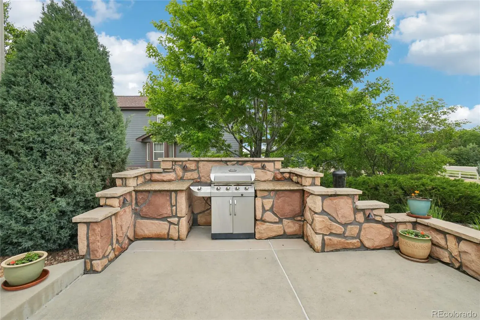 Head outdoors on a 0.5-acre lot, showcasing an enviable manicured front