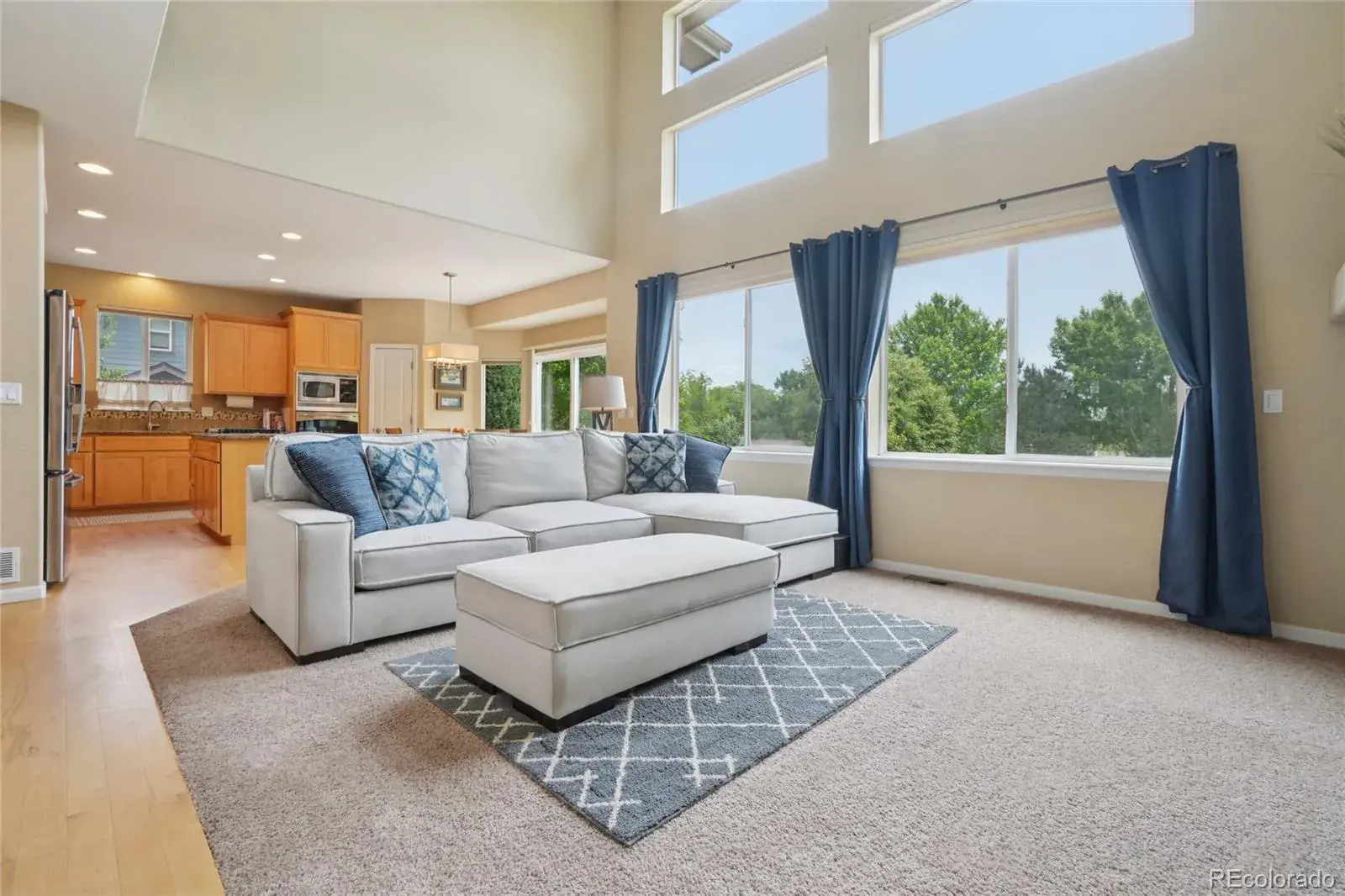 open floorplan extends from the main level living areas into the kitchen,