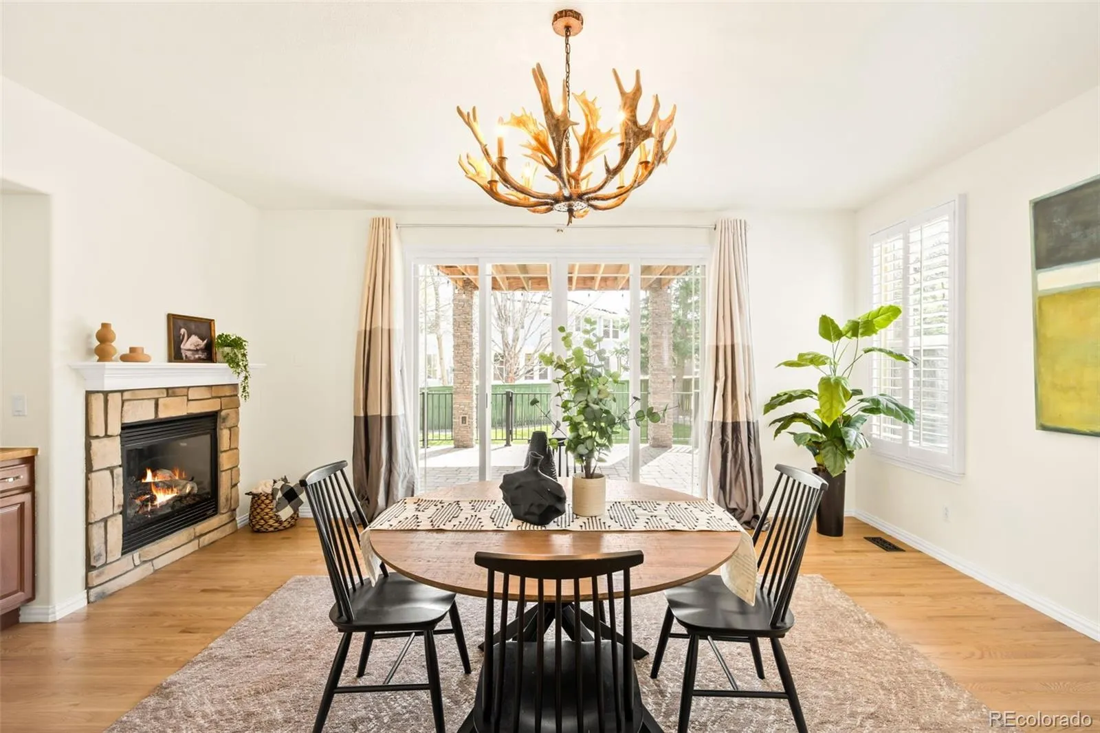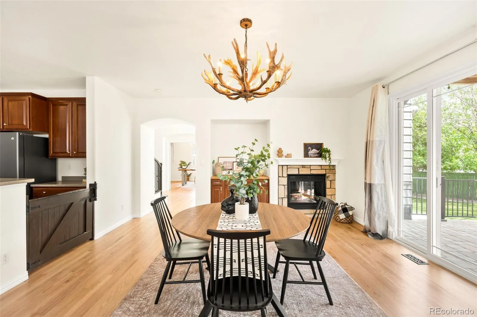 Step inside to refinished hardwood floors and a bright, open layout anchored by an impressive two-story living room with soaring ceilings, oversized windows, and incredible natural light. The space flows easily into the dining area, where a cozy fireplace adds warmth and character, and into the spacious kitchen, making it ideal for both everyday living and entertaining.