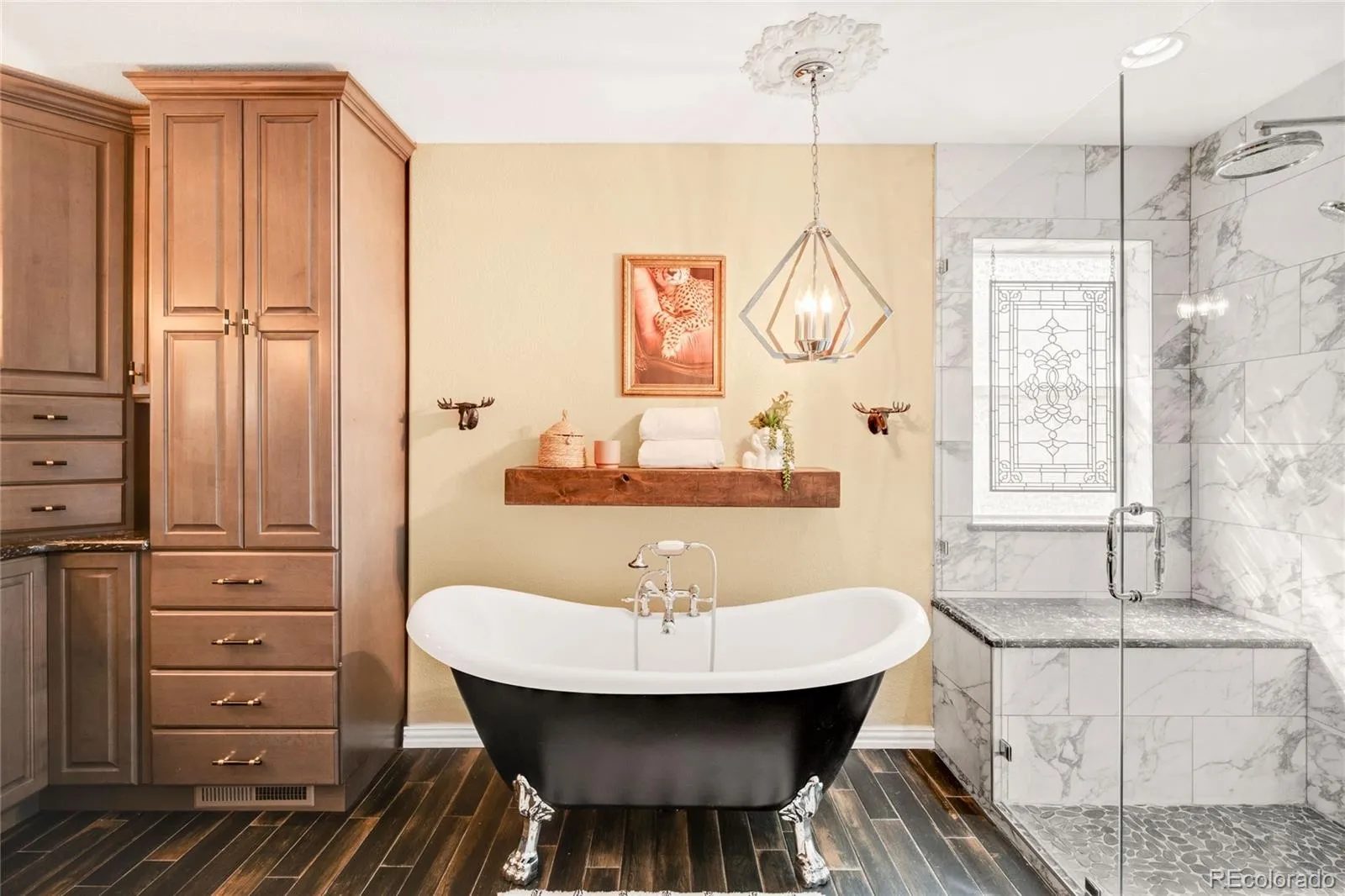 Upstairs, new carpet throughout adds comfort, while a versatile loft and well-designed bedroom layout provide space for everyone. The primary suite feels like a true retreat with a private deck that’s perfect for morning coffee, a custom-designed closet, and a beautifully updated bathroom featuring a large walk-in shower, a stand-alone clawfoot tub, and plenty of cabinet space.