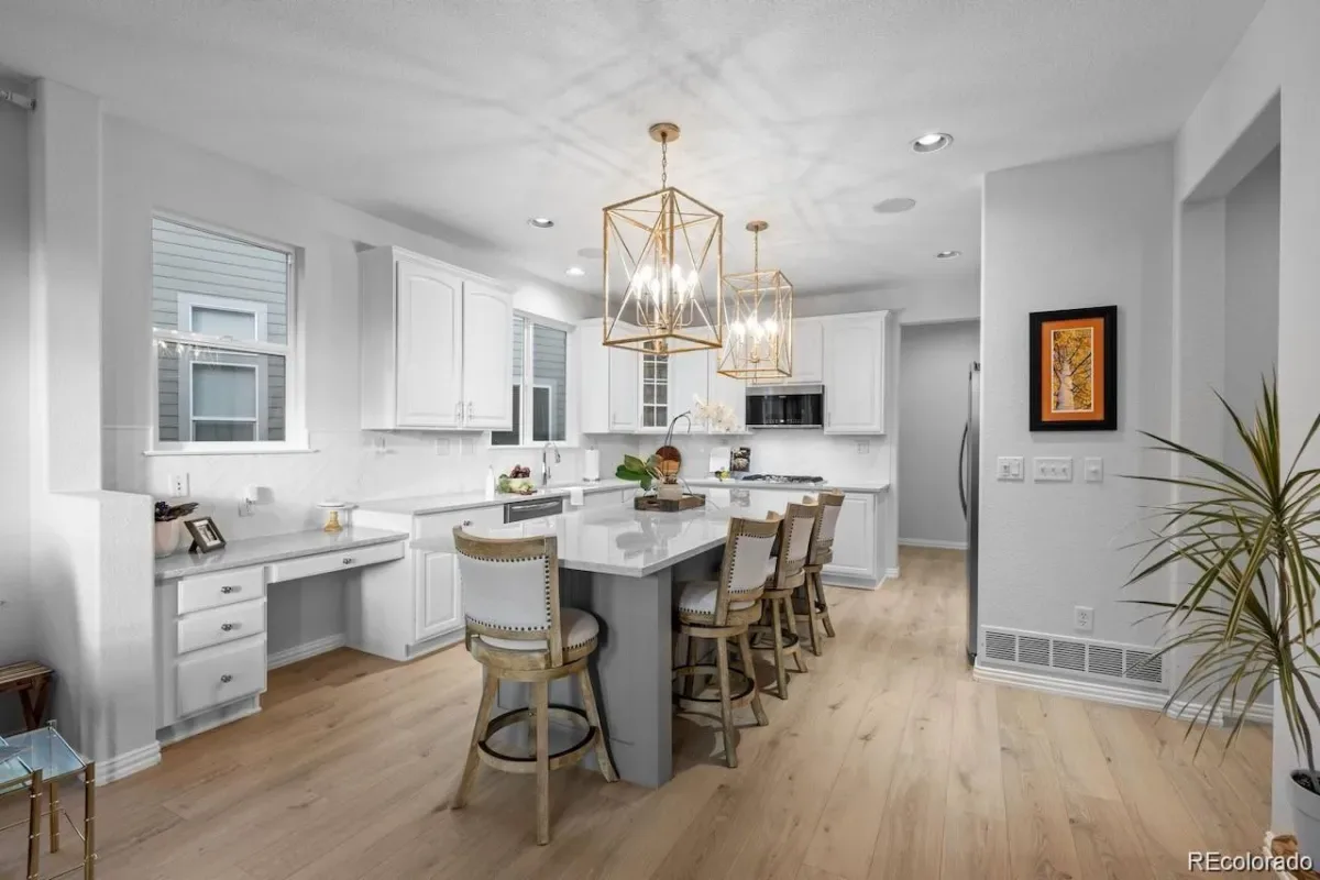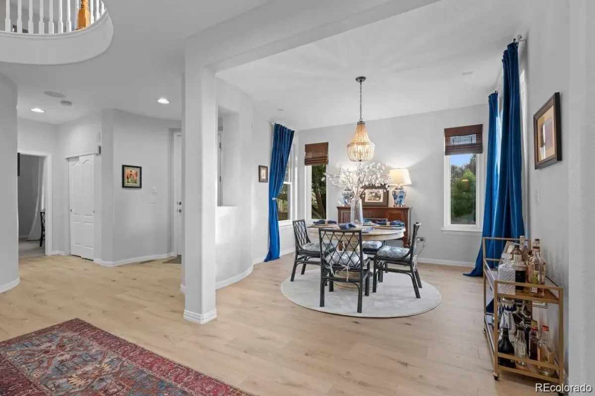 This coveted home showcases many fine finishes & features. A grand entry with sweeping curved staircase, new flooring, & a warm inviting dining space. The thoughtfully updated kitchen boasts white cabinetry, an oversized island, designer lighting, quartz countertops, and newer stainless steel appliances including a gas cooktop & double ovens. The open-concept floor plan is ideal for both entertaining & comfortable everyday living.