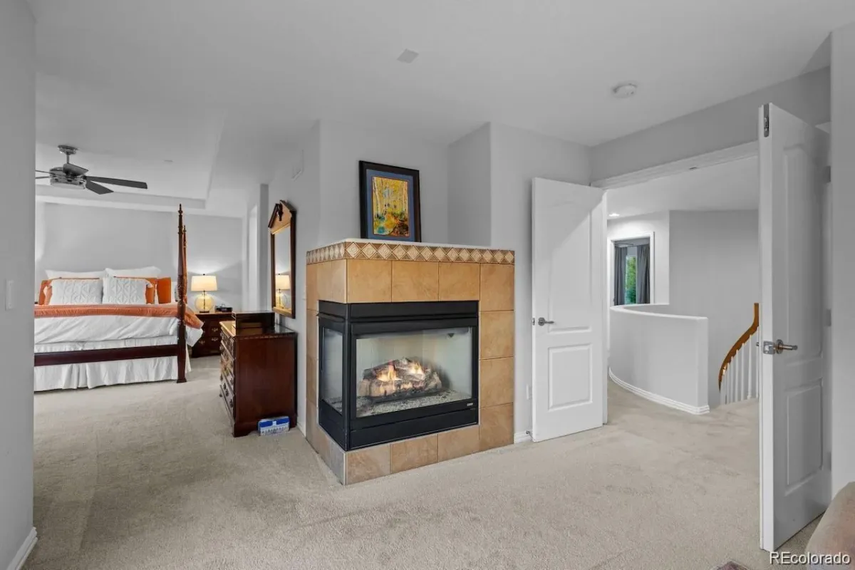 Upstairs, a dramatic curved staircase leads to an inviting & light-filled loft, 3 additional bedrooms, & a beautifully updated full bath w/copper vessel sinks. The luxurious primary suite is a true retreat, offering a sitting area with 2-sided gas fireplace, private balcony w/unobstructed panoramic views, a spa-inspired 5-piece bath w/tasteful updates, & an oversized dual walk-in closet.