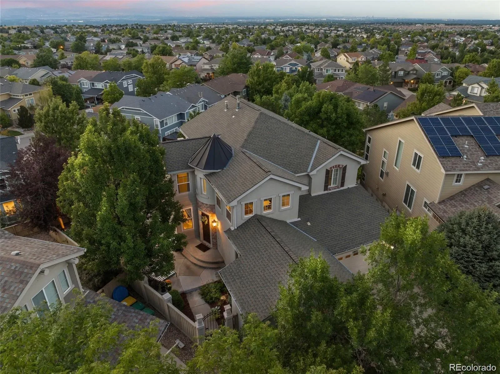 High on a ridge in Highlands Ranch, this exceptional VIEW HOUSE captures some of the most breathtaking Front Range & Denver Skyline Views in the area! The quiet cul-de-sac offers offers both privacy & tranquility.