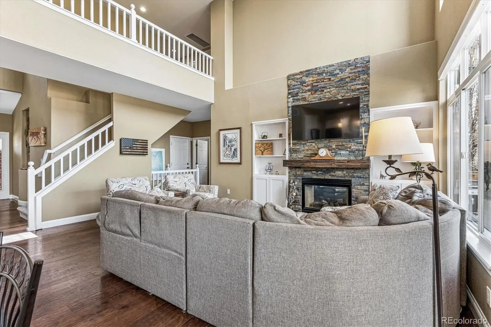 Highly Maintained, Warmly Inviting Home on Prime South-Facing Lot in Cul-de-Sac Backing to Open Space & Vista Trail! This 4 Bed plus Main Floor Office, 4 Bath with Finished Basement gem shines with smart & thoughtful updates throughout. Enter to find an open & flowing floor plan featuring abundant windows & vaulted ceilings in many rooms. Notice the extensive engineered hardwoods throughout the main & upper levels! Heart of the Home updated Gourmet Kitchen boasts ample quartz counters/tile backsplash, white cabinets w/pull-out shelves, pantry, & island along with convenient desk area. Upgraded light fixtures & can lights plus all appliances are included. Plenty of seating at the island, Breakfast Nook & adjacent Formal Dining Room. Grand Family Room has soaring vaulted ceiling, two-story windows, built-in cabinets/shelves & dual-sided fireplace (to office) w/custom stone surround. More built-ins in the Office plus fireplace make a functional & comfortable workspace! Beautifully updated Laundry/Mud Room w/W&D, LVP floors, cabinets & many floating shelves. Formal Living Room has bay window & peaked ceiling, open to Dining Room. Upstairs find all 4 Beds & 2 renovated Baths. Primary Suite boasts sizeable walk-in closet w/natural light & spa-like attached bath w/expanded walk-in shower & tasteful finishes. 3 more spacious bedrooms share 4-pc hall bath complete w/2 sinks & private shower/tub/toilet room. Finished Basement offers more living space with a large rec room, 3/4 Bath, storage/work room, massive walk-in closet & crawl space. Enjoy the private back yard & open space views from the expanded stamped concrete patio w/privacy wall. Bonus gate to the trail behind! Oversized garage has tons of shelving. MORE FEATURES: New HVAC, Newer Water Heater & Exterior Paint, Roof w/Hi Impact Shingles, New Upgraded Top Down/Bottom Up Shades, SMART thermostat & attic fan, Tinted south-facing windows. Low HOA gets 4 rec centers, pools, tennis, fitness. Truly Move-In Ready!