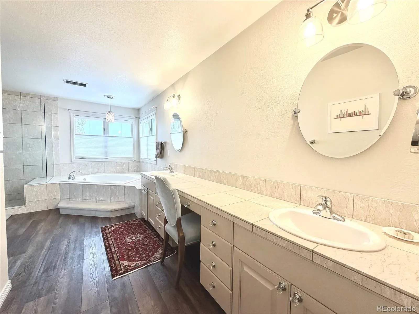 Wolf/Jenn-Air Appliances, LVP/high-end carpet, 4-car garage with EV charger, refreshed paint and trim, mountain sunset views from back patio and guest bedrooms, spacious closets, full finished basement with custom-designed eat-in bar area/double beer-tap with double climate controlled beverage refrigerator