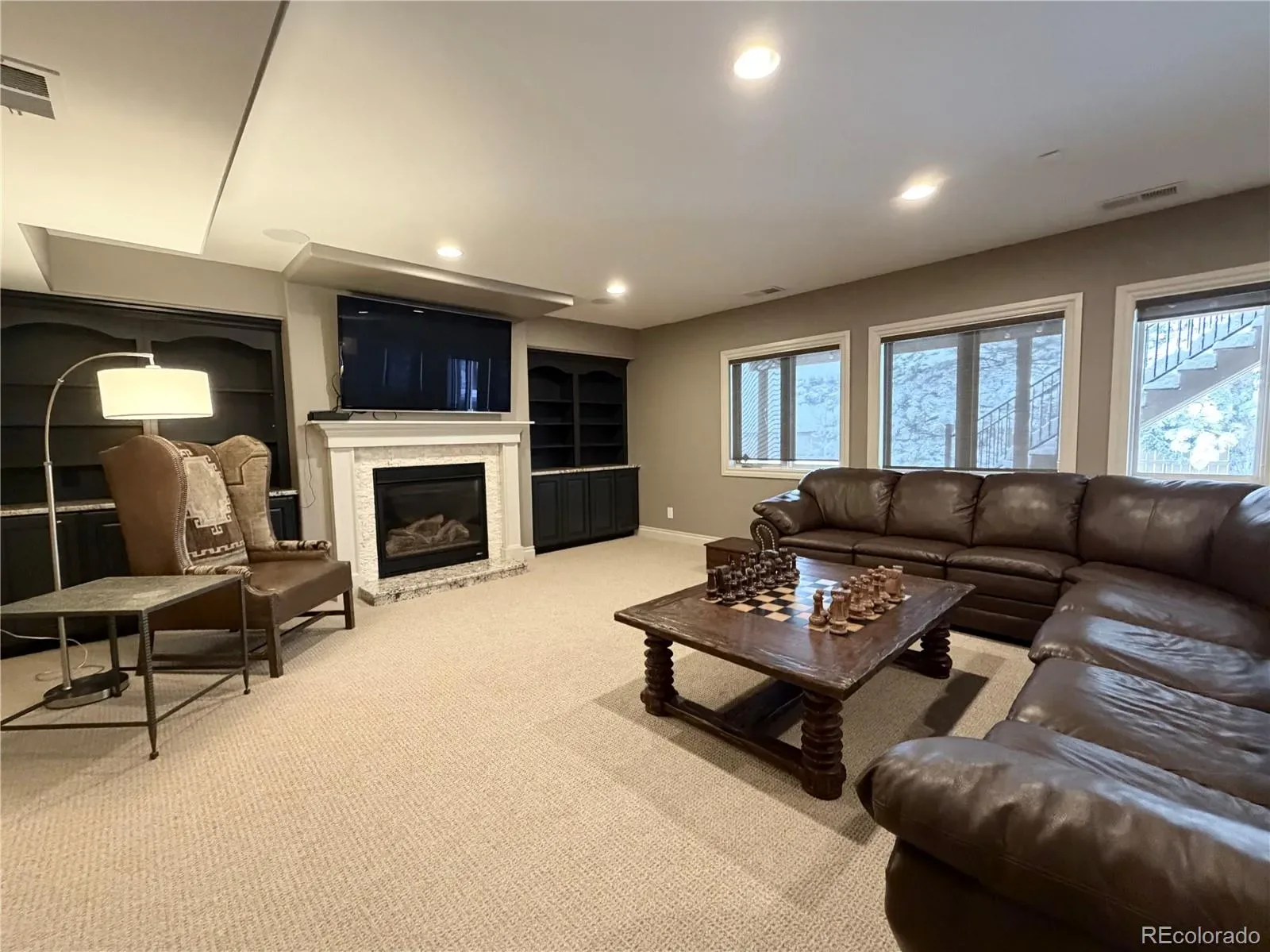 The fully-finished walkout basement is an entertainer’s dream, boasting a full bar, media room and game area, guest bedroom, and workout room. Step outside to private retreat—a covered patio with a well-maintained hot tub, all overlooking a beautifully landscaped yard.