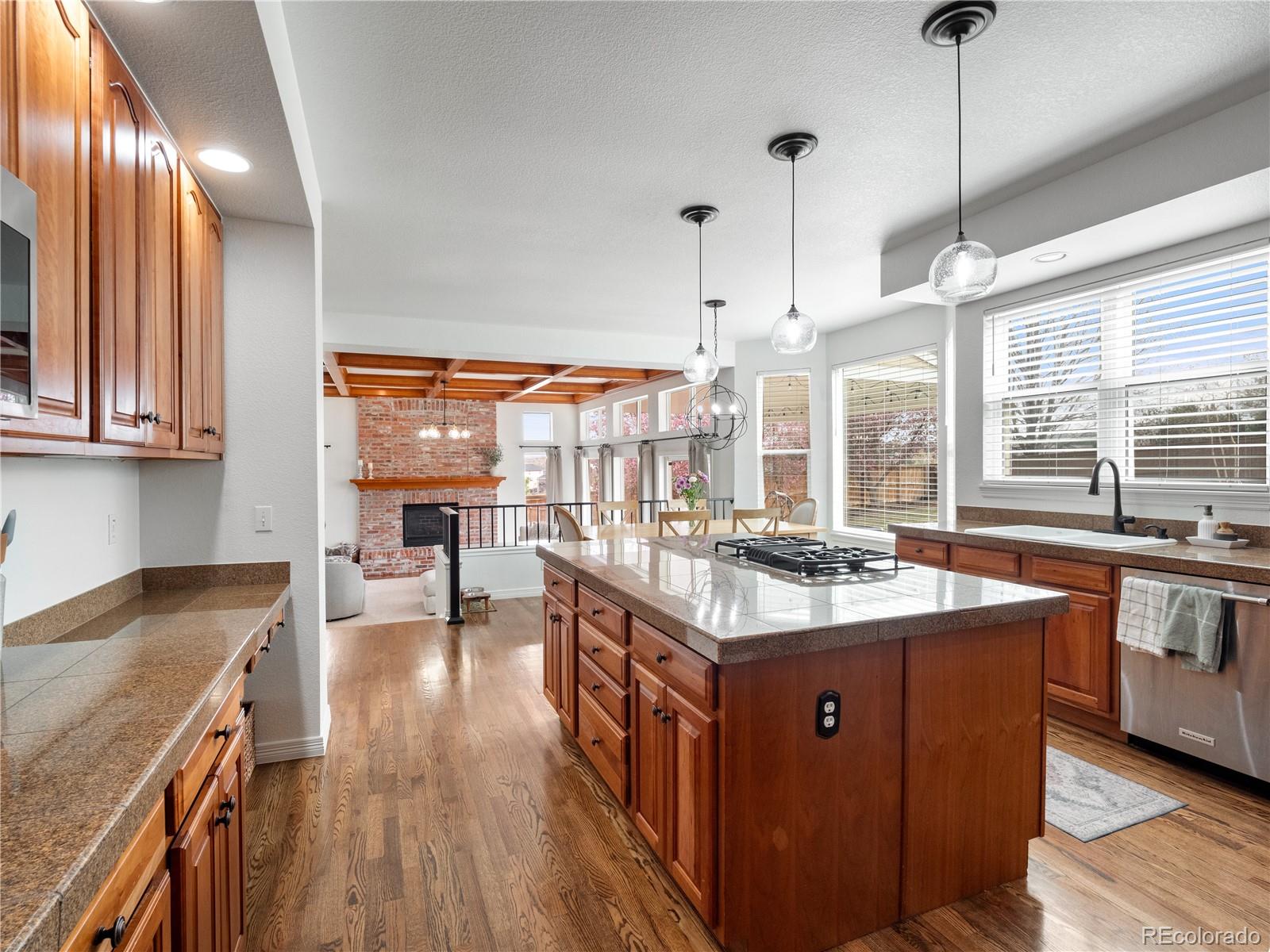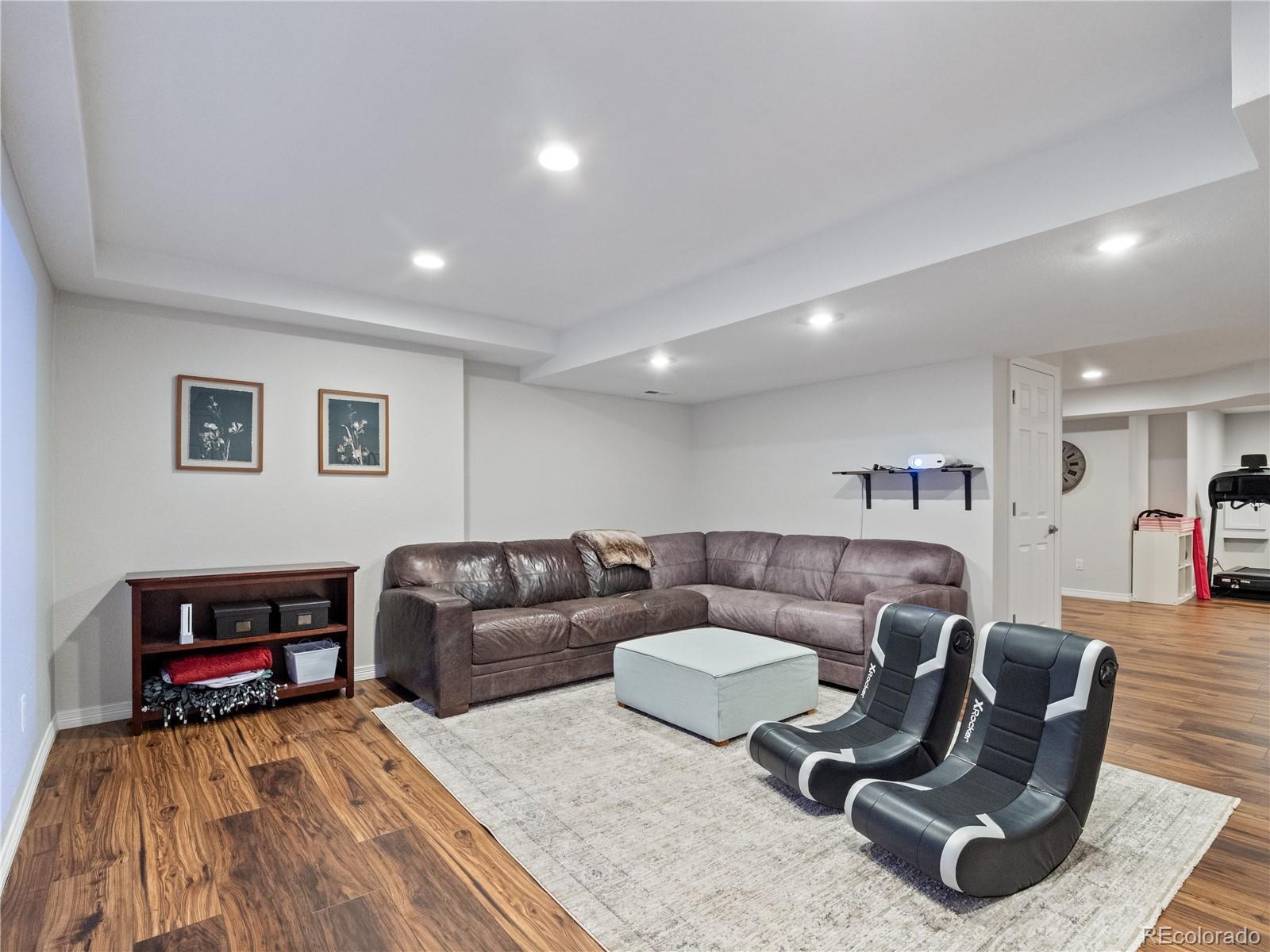 Beautifully updated 6 bed, 5 bath home within Kentley Hills in Highlands Ranch, located in Douglas County, offering 4,659 finished sq ft including a finished basement and a spacious open floor plan ideal for modern living and entertaining. This home is completely move-in ready with extensive recent upgrades, including hardwood flooring throughout the main floor, new carpet, and fresh interior paint. Updated lighting throughout includes entry, hallway, dining, private home office, and main living areas, along with added ceiling fans. The entry has been refreshed with a remodeled bathroom, updated closet, iron railing and handrail, and new lighting creating a strong first impression. The gourmet kitchen features a new oven and microwave and flows seamlessly into the main living space, perfect for entertaining. Additional improvements include an updated laundry room, new washer and dryer, blinds, and upgraded fixtures throughout. The attached 3-car garage provides ample space for vehicles and storage. Outside, enjoy a private fenced backyard with covered patio, ideal for Colorado outdoor living, dining, relaxing, or pets, with plenty of space to create your ideal outdoor setup. Conveniently located near parks, trails, and schools, and walkable to the neighborhood elementary, middle, and high schools, this home offers exceptional space, comfort, and value in a highly desirable Highlands Ranch location.
