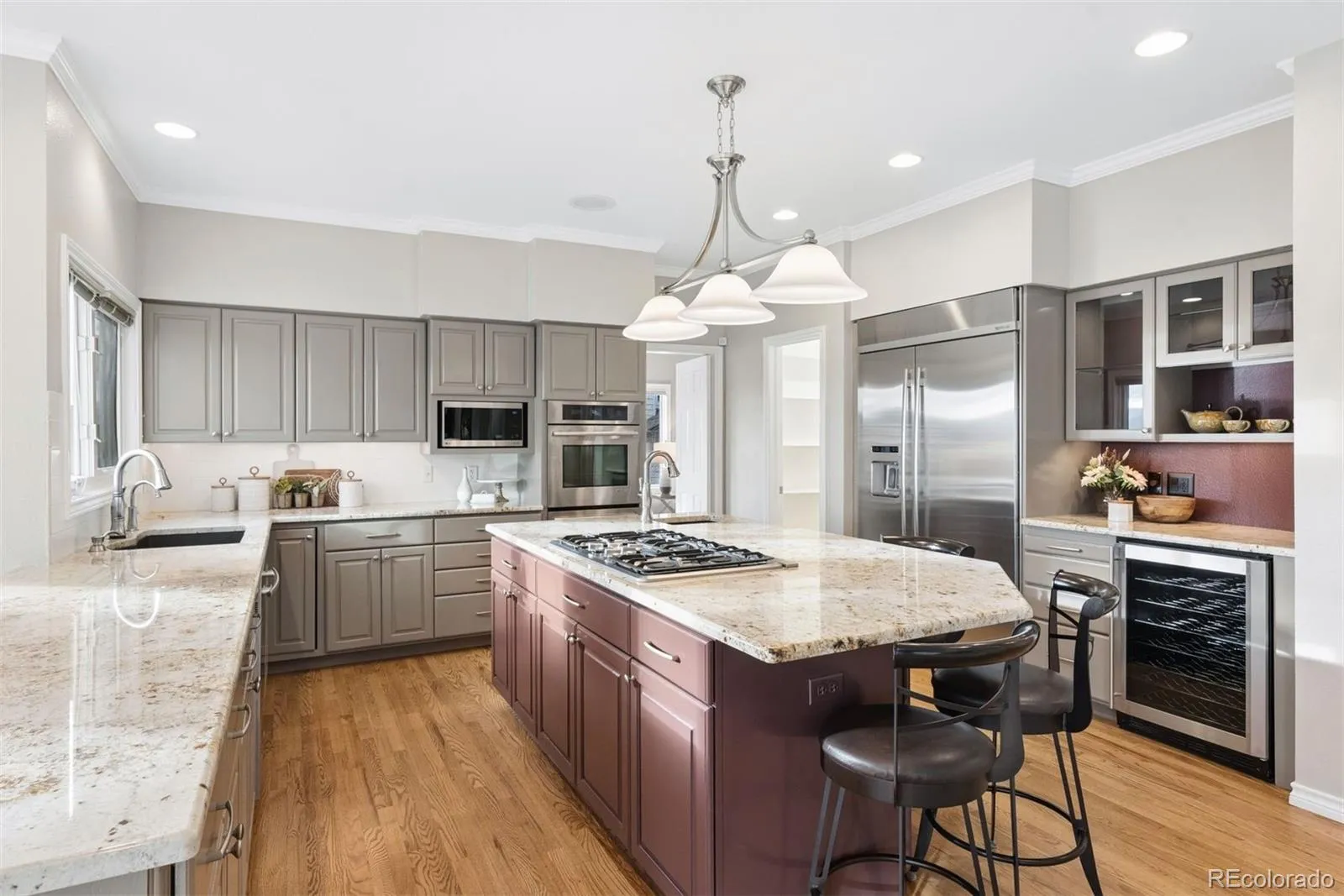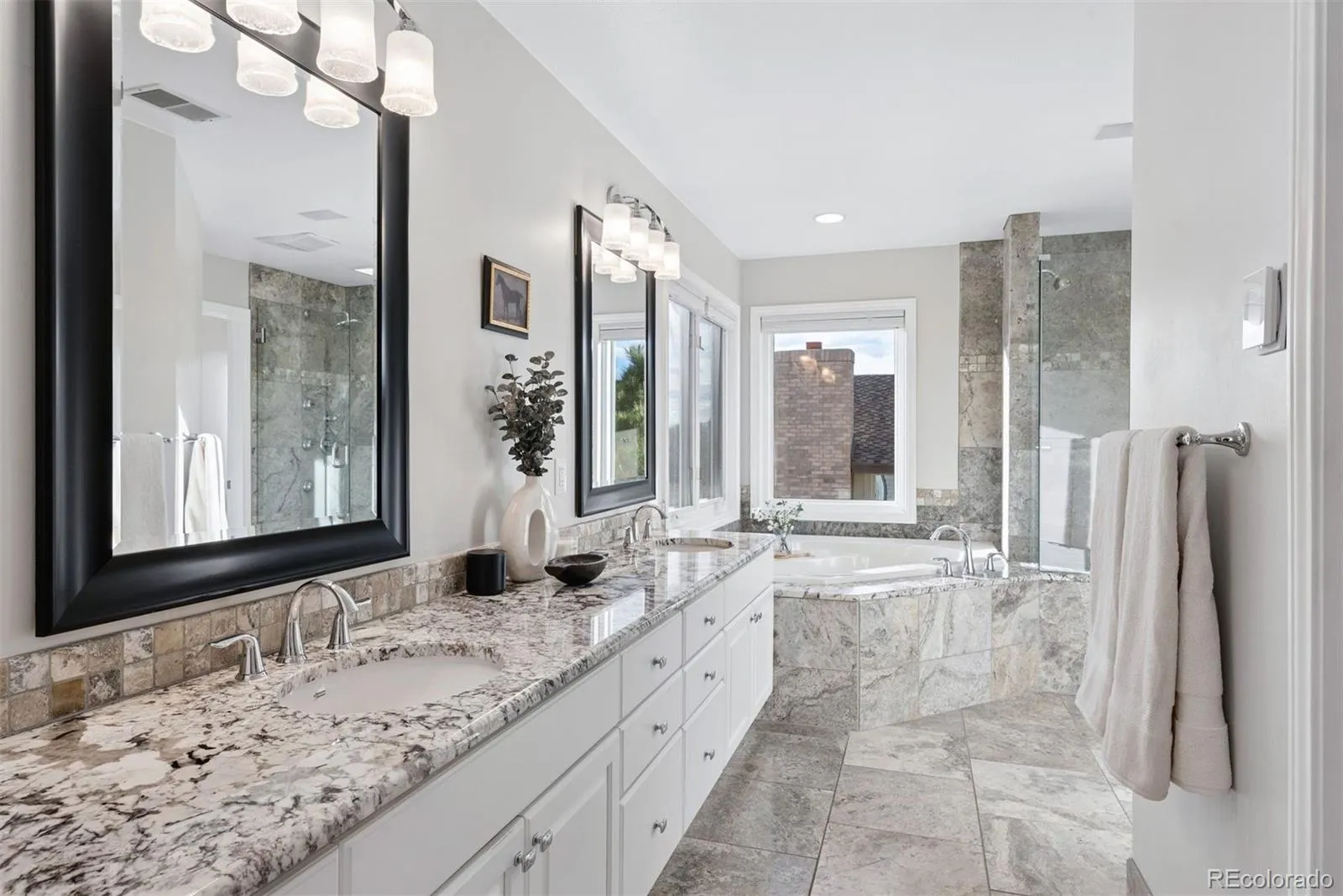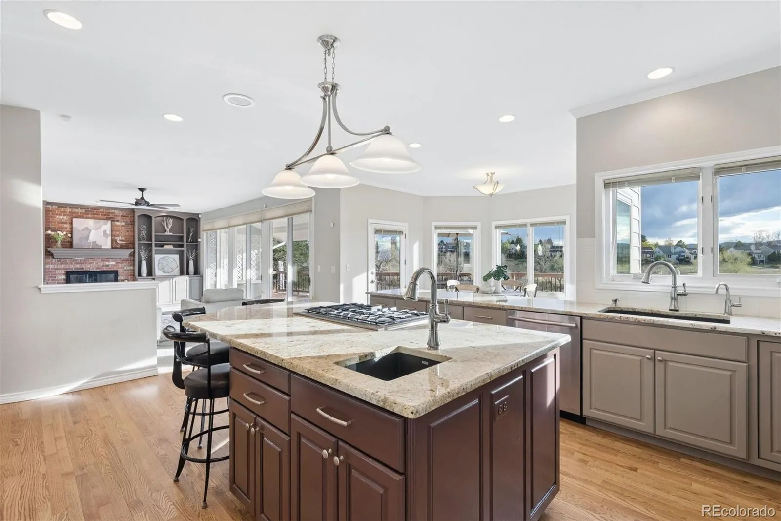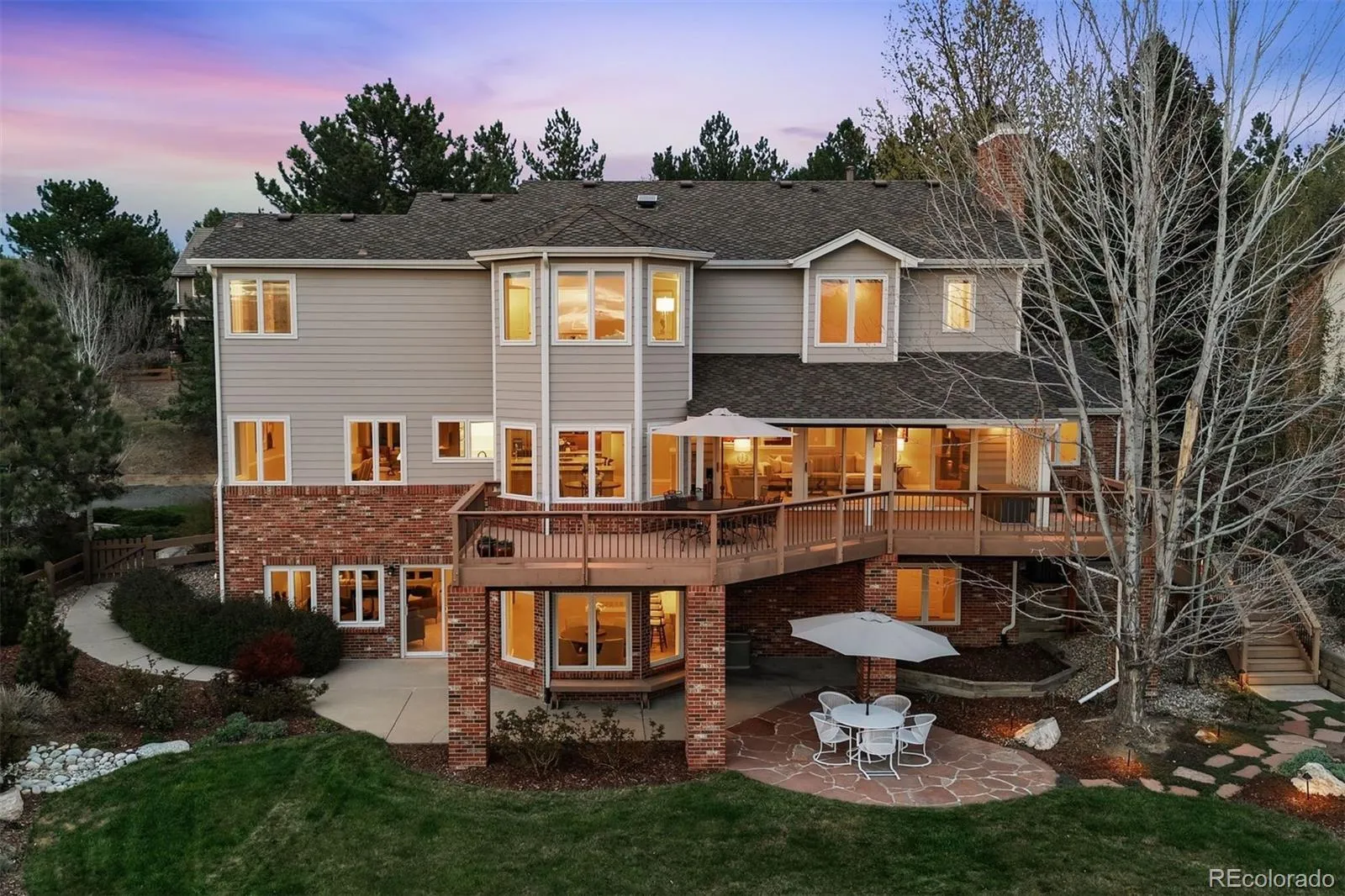 Luxury Living in Stratton Ridge, on magnificent OPEN SPACE with incredible MOUNTAIN VIEWS! Best views in the entire neighborhood will be enjoyed from every level of the home! Large flat backyard backing to hundreds of acres of open space, mature trees, professionally landscaped gardens, an expansive Trex deck, and covered patio. This peaceful outdoor oasis must be seen in person to truly appreciate its beauty and tranquility. Interior shines with thoughtful updates throughout. Main floor features a wood-paneled office with custom built-ins and pocket door access to ¾ bath. The formal dining room showcases stunning front range and open space views. Gourmet kitchen is a chef’s dream, complete with massive granite island, huge walk-in pantry, JennAir appliances, and dry bar with beverage fridge. Just off the kitchen, the family room offers a wood-burning fireplace and three 8-foot tall slider glass doors that open to impressive deck. Main floor also includes spacious laundry room with storage, utility sink & stone counters, plus access to oversized 3-car garage with a brand-new epoxy coated floor. Upstairs, the primary suite delivers breathtaking mountain and open space views and a luxurious, 5-piece ensuite bath featuring radiant floor heat, an oversized custom walk-in closet, granite counters, soaking tub, and a spa-like shower with dual heads including rain shower. Three additional large bedrooms are also found upstairs, each with updated (attached baths). The fully finished basement is an entertainer’s paradise with built-in speakers, a large family/media room (perfect for a 95” TV), a wet bar with granite countertop and barstool seating, a dining area with bay windows, a large 5th bedroom, and an updated full bath. All that plus over 200 sq ft of unfinished storage space with wood shelving. A walk-out slider provides easy access to the covered patio and gardens. See the MLS supplements for full list of features and updates!