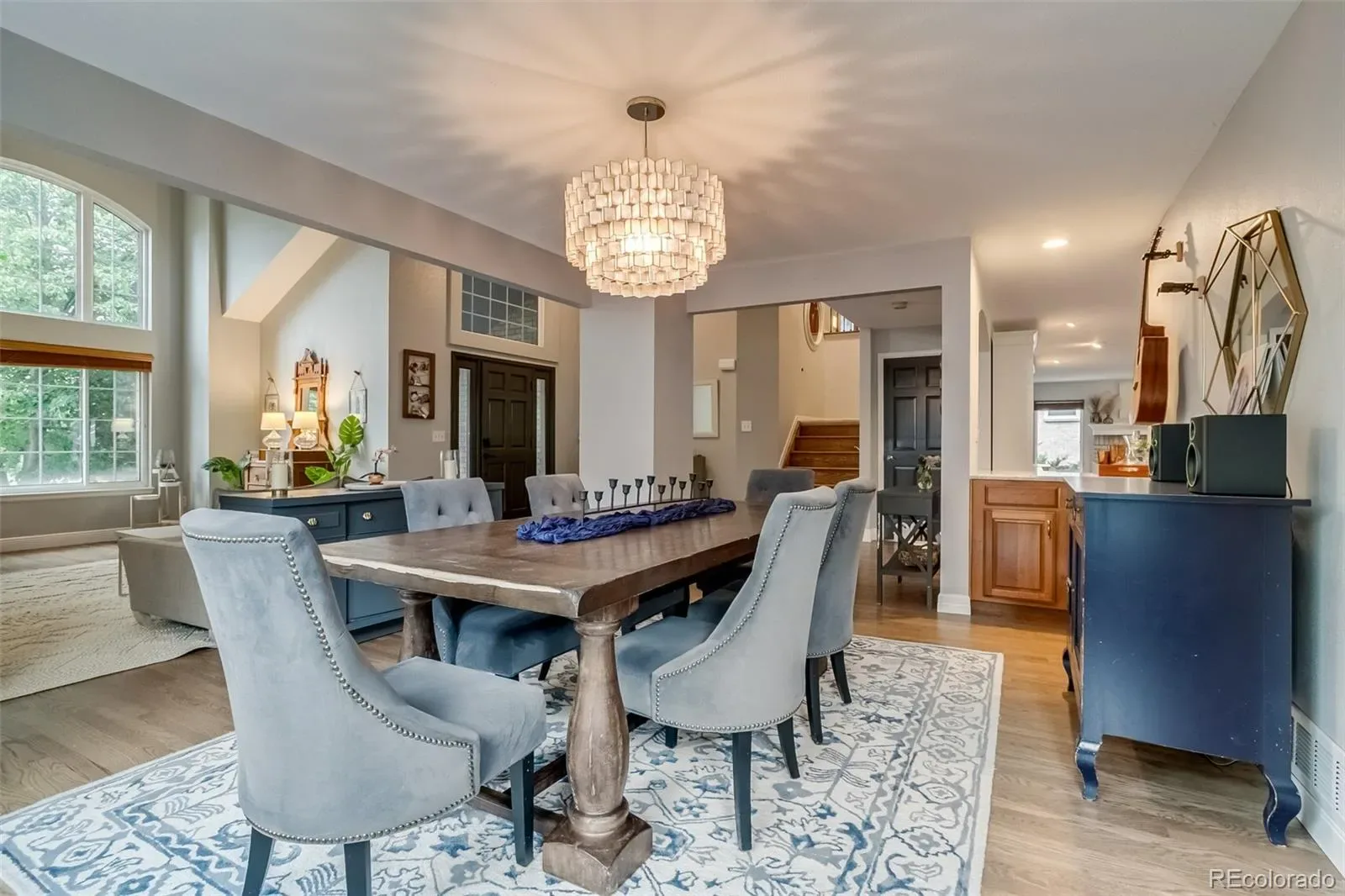 MOUNTAIN VIEWS + UPDATED features. Experience true multi-generational living in this expansive 5,118 sq. ft. Highlands Ranch masterpiece. Nestled in a quiet cul-de-sac, this home features a fully finished walk-out basement with a second kitchen—perfect for guests or extended family. Brand-new hardwood floors complete the main level, complemented by vaulted ceilings and large windows that flood the space with natural light. A cozy gas fireplace adds warmth to the great room, which flows effortlessly into the recently painted backyard deck—ideal for outdoor entertaining. The spacious kitchen boasts updated appliances, abundant cabinetry, and a convenient eat-in area, making it perfect for both everyday meals and hosting guests. Upstairs, retreat to the generously sized primary suite featuring a sitting area and a 5-piece en-suite bathroom. Three additional bedrooms and a full bathroom complete the upper level, with new carpeting throughout. The fully finished basement offers versatile living space with a large recreation room, an oversized bedroom, a recently updated bathroom, and a full kitchen with granite countertops and stainless appliances. The yards are equipped with a Bee Hyve smart sprinkler system, a dedicated dog run, and mature trees that provide ample shade. Whether you’re entertaining or enjoying quiet relaxation, this space caters to all your outdoor needs. Recent updates also include new HVAC systems and furnaces for greater peace of mind.