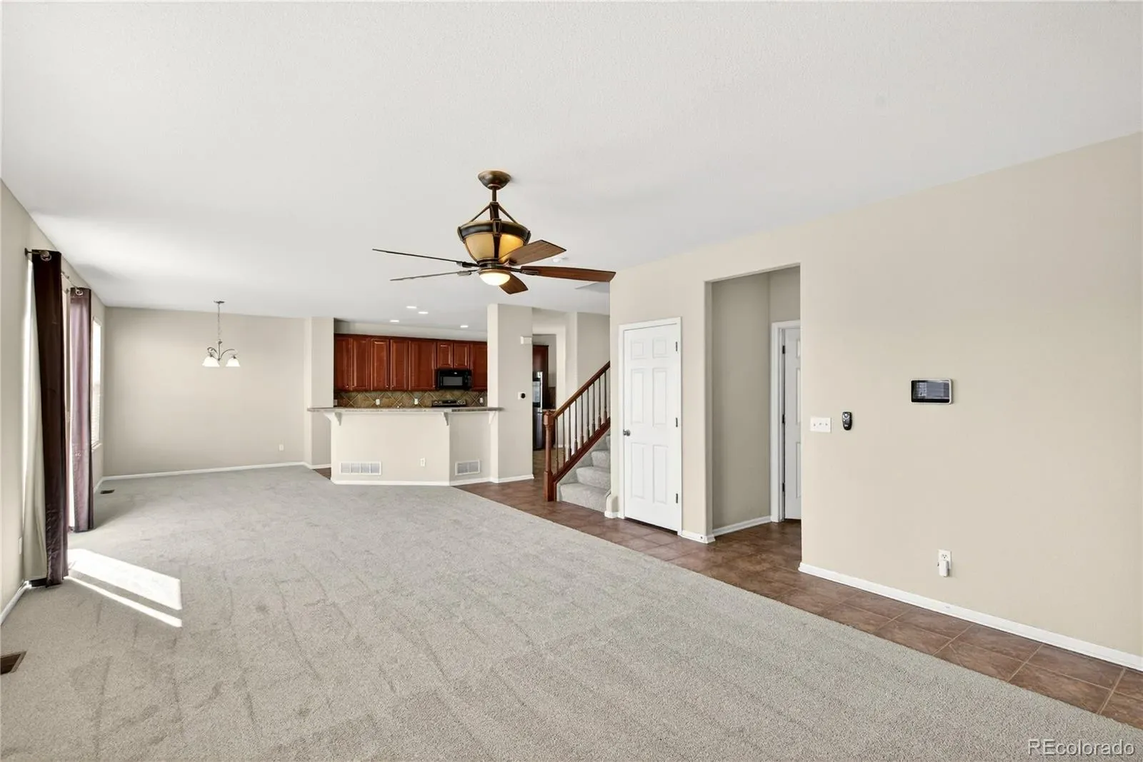 Welcome to this spacious and light-filled 3-bedroom, 3-bath home located in the desirable Quincy Lake subdivision of Littleton, Colorado. With approximately 3,200 square feet of living space, a large backyard, and an unfinished garden-level basement ready for future expansion, this home offers both comfort today and opportunity for customization tomorrow. Inside, the main level features a large open floor plan designed for everyday living and entertaining. The kitchen includes tile countertops, abundant cabinet space, and all appliances included, with a functional layout that flows directly into the dining area and expansive living room. Large windows throughout the home bring in abundant natural light, creating a bright and welcoming atmosphere. The spacious living area connects seamlessly to the backyard deck, providing an ideal setup for indoor-outdoor living. Upstairs, the primary suite offers a comfortable retreat with a large walk-in closet and an oversized shower in the private bathroom. Two additional bedrooms provide flexibility for guests, work-from-home space, or hobbies. A large second-floor loft creates additional living space that can be used as a media room, office, or bonus living area. Ceiling fans have been installed in each bedroom for added comfort. The garden-level basement is unfinished and includes rough-in plumbing, offering excellent potential for additional bedrooms, a recreation area, or a future bathroom. Outside, the fully fenced backyard features a sprinkler system in both the front and back yard and a deck that overlooks the spacious outdoor area. Recent updates include a fresh exterior repaint completed in 2024 and new interior paint in March 2026, along with new carpet throughout the home. Located near parks, trails, shopping, and restaurants, this home provides convenient access to everyday amenities while offering space, flexibility, and comfort in a well-established Littleton neighborhood.