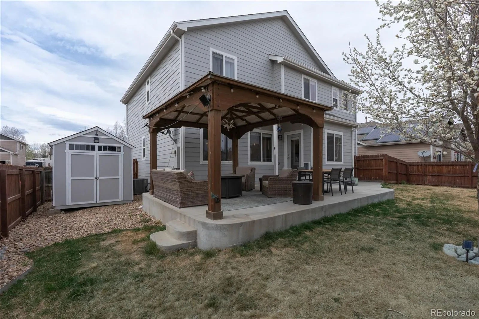 Outside, the backyard is both functional and inviting, featuring a concrete patio, gazebo, storage shed, and of course a dog door – perfect for enjoying Colorado evenings and creating your own outdoor oasis. The extended RV/boat parking area is 75 feet long and features a 30 amp plug in. Park your trailers, toys, or additional vehicles! A new roof in 2018 and new water heater in 2026 adds peace of mind. Kitchen appliances are a year old.