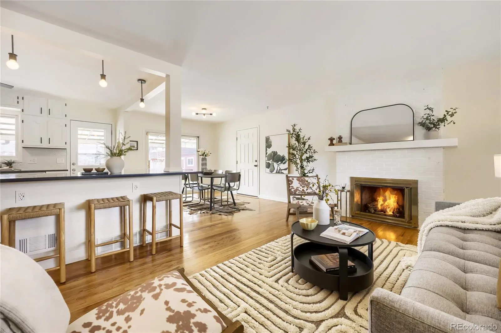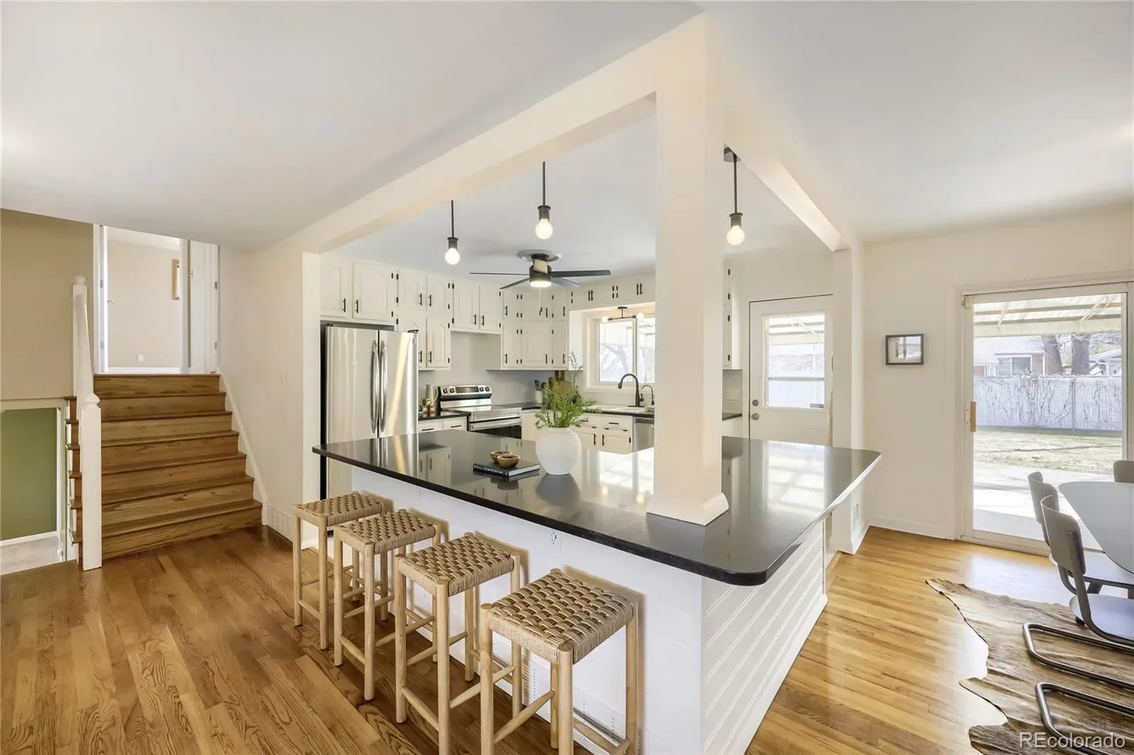 Inside, the heart of the home is a gorgeous remodeled kitchen, featuring a stunning black quartz island (one single slab!) and new appliances. The kitchen flows seamlessly into the dining and living areas with a cozy gas fireplace and walkout to a covered patio, perfect for everyday living and easy entertaining. The functional layout features three bedrooms and a full bath upstairs, plus an additional bedroom and bath on the lower level, along with a vibrant, inviting second living area.