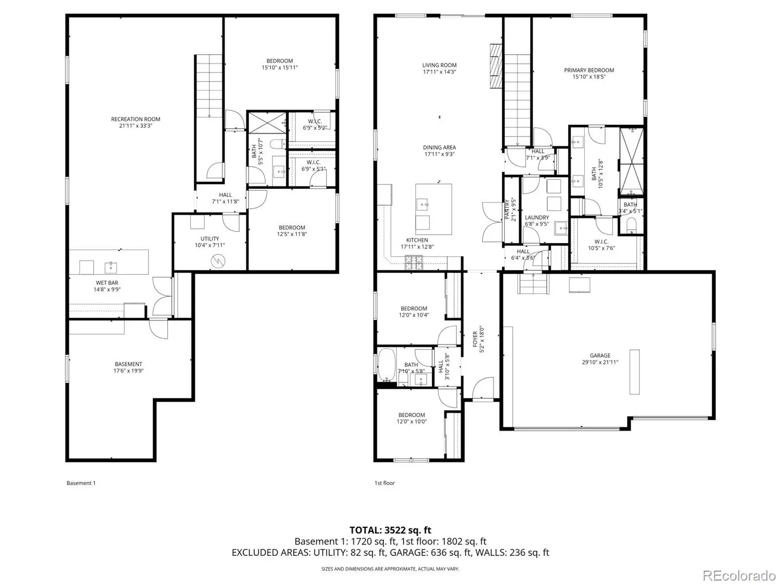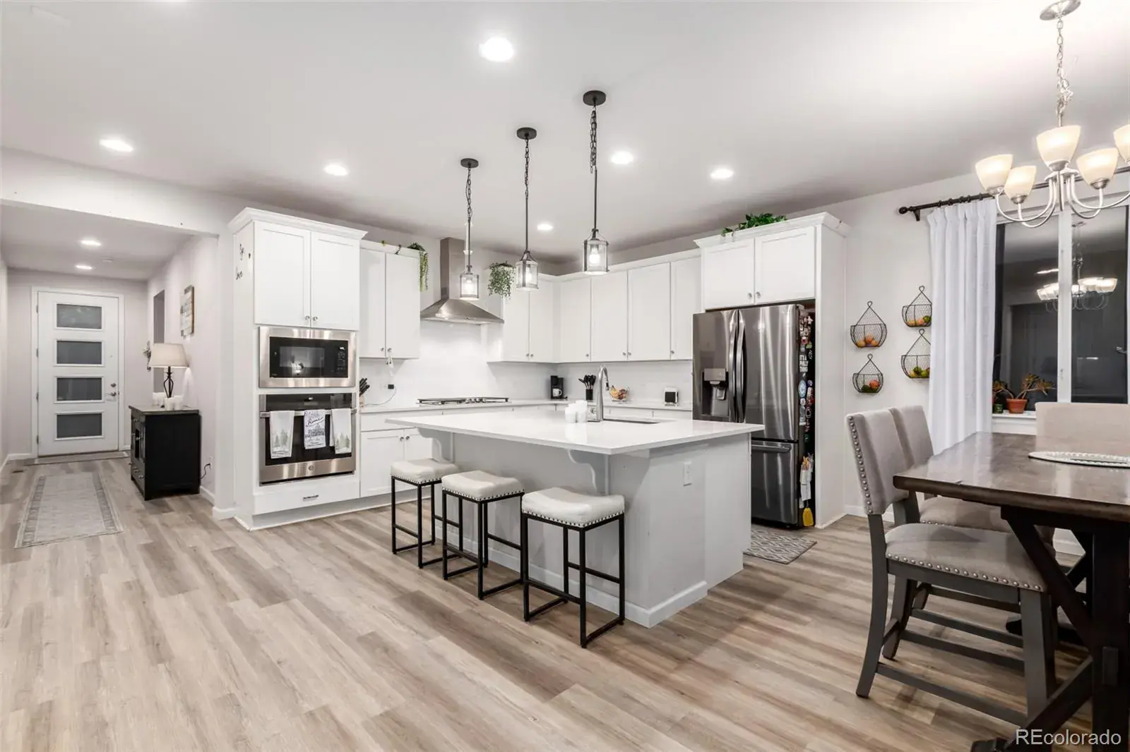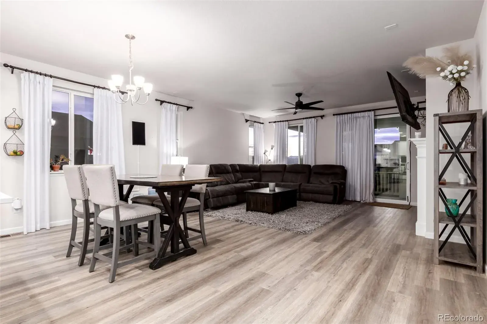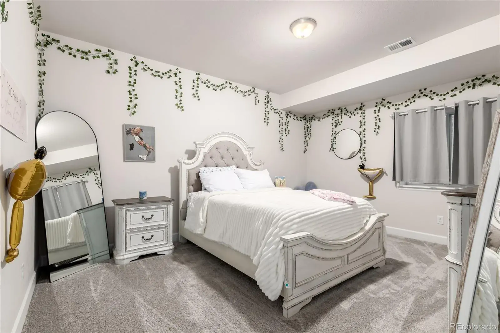 Beautiful ranch-style home designed for entertaining, featuring an open floor plan with a stunning quartz island that flows seamlessly into the spacious family room with cozy fireplace and access to a rare, oversized covered patio showcasing mountain views and unforgettable Colorado sunsets. The main level offers a private primary suite with walk-in shower and walk-in closet, two additional bedrooms, convenient main-floor laundry, and custom drapes included. The finished basement is built for hosting with an incredible wet bar offering abundant cabinet space, perfect for game days or poker nights, plus two large bedrooms and a 3/4 bath. Enjoy quiet cul-de-sac living within walking distance to coffee shops, a Super Walmart, restaurants and everyday conveniences.