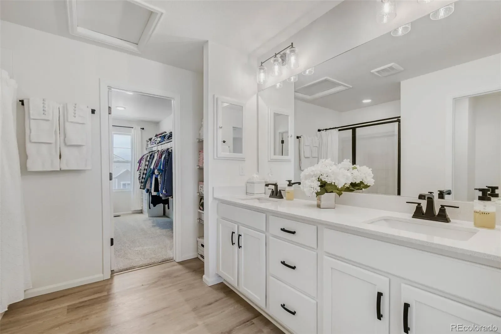 Upstairs, the spacious primary suite offers dual sinks, cabinets and drawers, dual medicine cabinets, glass tiled shower, enclosed toilet, and a HUGE walk-in closet. The two additional bedrooms each have mountain views and walk-in closets. There is a full bath with dual sinks, fully finished laundry room, linen closet, and windowed loft.