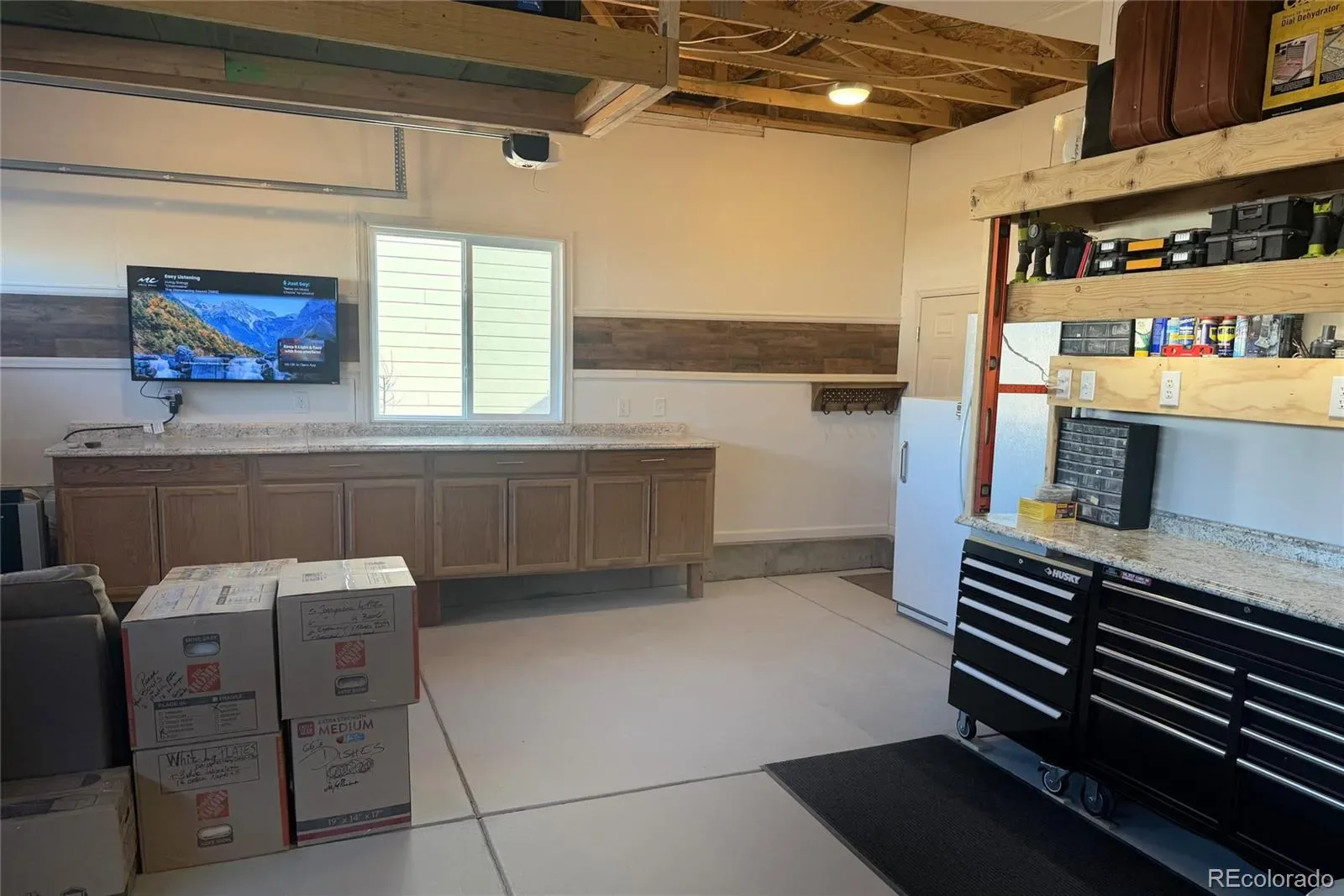 Finally, the three-car garage includes extensive cabinets, drawers, counter-space, upper storage, a workbench, metal tool drawers, freezer, and a remote-control heat pump for winter heating and summer air conditioning. Ask about the incredible option for purchasing most of the existing furniture, including a late model 4-door fridge, washer/dryer, and more!