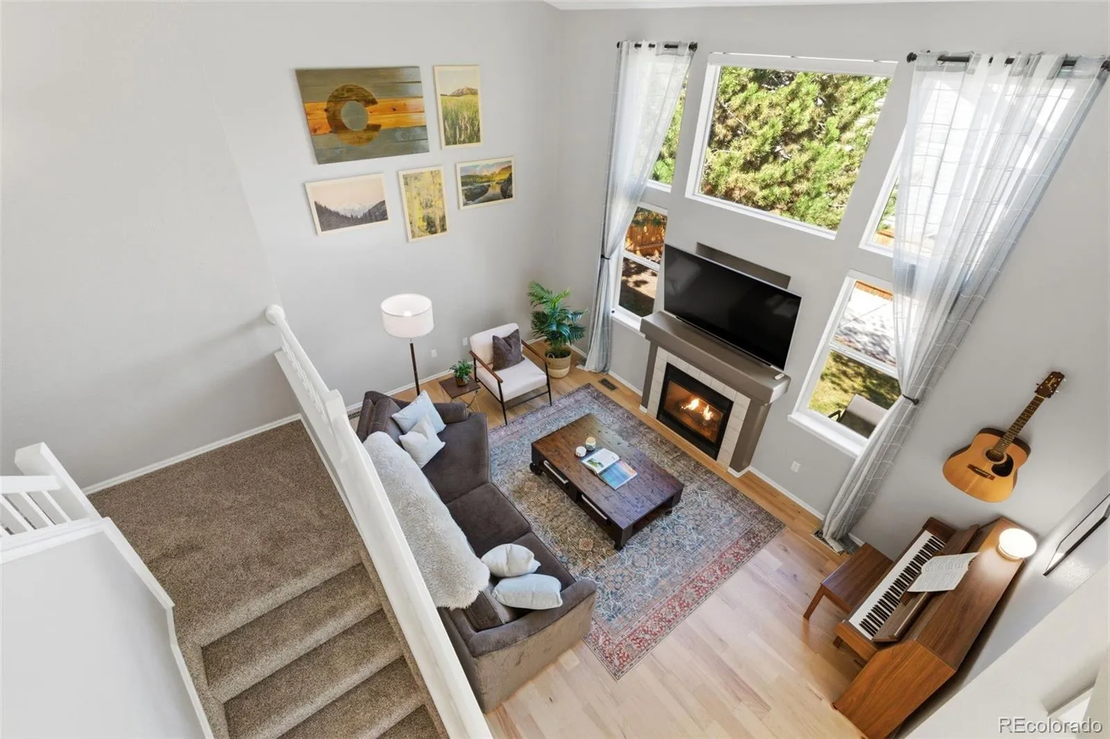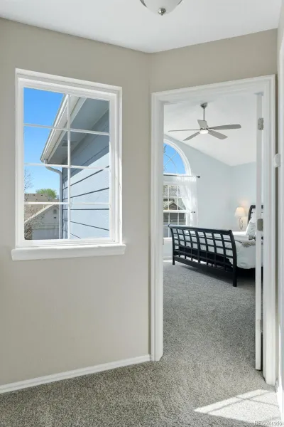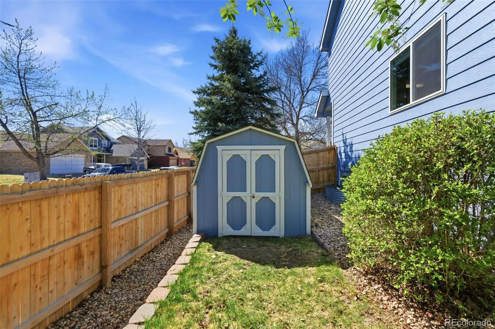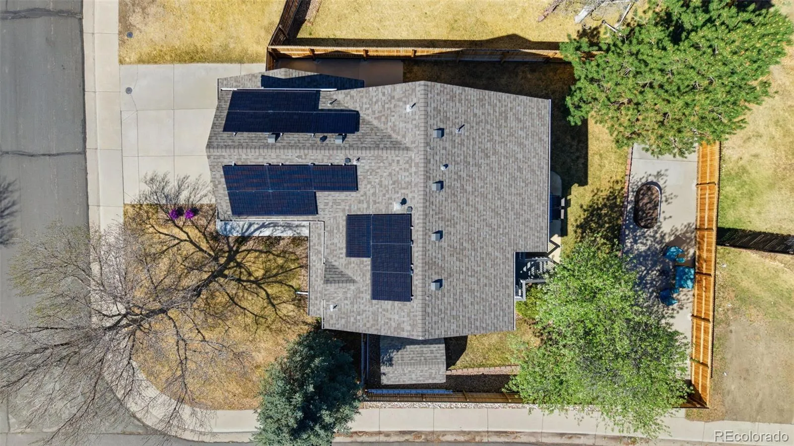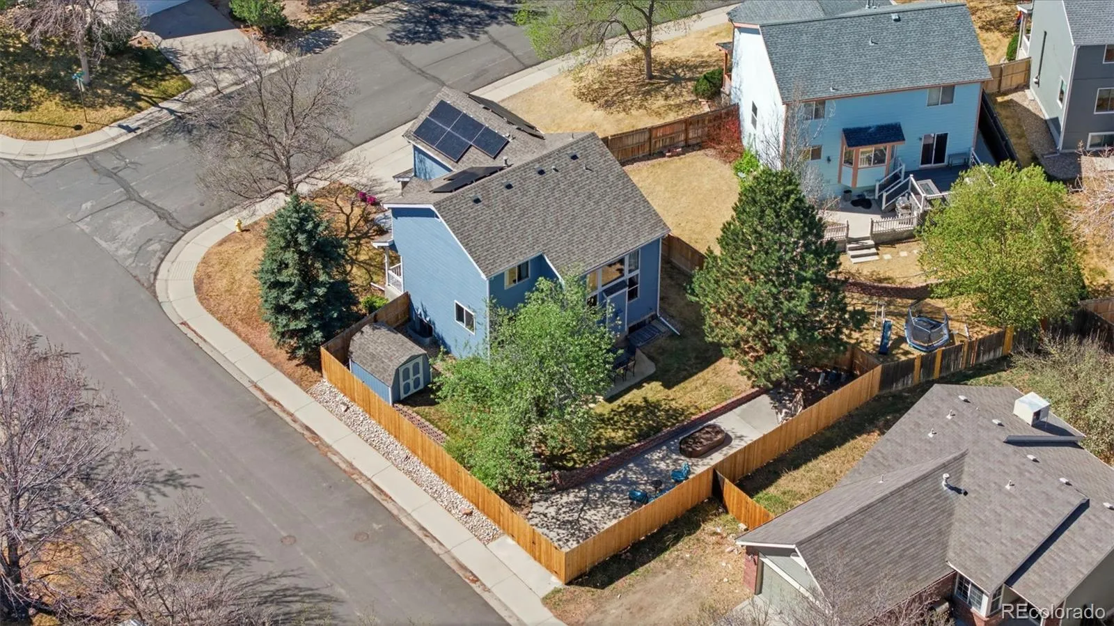 Showings start Wed April 15th, open house Sat April 18th 11-1pm. This two-story, 4-bedroom, 2.5-bathroom home with a finished basement and two-car garage sits on a corner lot in a Thornton community with no HOA. The home makes a great first impression with a south-facing driveway, fresh exterior paint, a new front sidewalk (2024), and a welcoming front porch. Pause in the front foyer to drop your keys before gaining a different perspective of the front yard from the kitchen sink window, featuring views of the mature tree and green lawn with a sprinkler system. The open kitchen features white cabinetry, black countertops, stainless steel appliances, and a peninsula with seating for two stools. The adjoining dining area has a sliding glass door leading to an updated deck (2021), concrete patio, and backyard with sprinklers, new fence (2025), and concrete RV parking. The living room is the heart of the home, featuring two-story lofted ceilings, newer flooring (2020), a gas fireplace, beautiful windows, and an elegant staircase. The attached two-car garage is finished and EV-ready with a dedicated 220V outlet. The garage flows directly into the foyer, where you’ll find a half bath next to the laundry area, washer and dryer included, and ample storage space. The second level features a large primary bedroom with huge south-facing windows, an en-suite bathroom with double vanity, and a walk-in closet. Two additional bedrooms and another full bathroom complete the upper level. The finished basement provides a casual living space and an additional bedroom with a second egress window. Plumbing is already in place to add another bathroom in the basement. Additional upgrades include a new furnace and A/C (2022), new roof (2023), and paid-off 5.67 kW solar panels (2023). This Thornton home is close to the light rail, near parks, and just 20 minutes to downtown—offering comfort, convenience, and thoughtful updates throughout. Please contact agent for all due diligence docs.