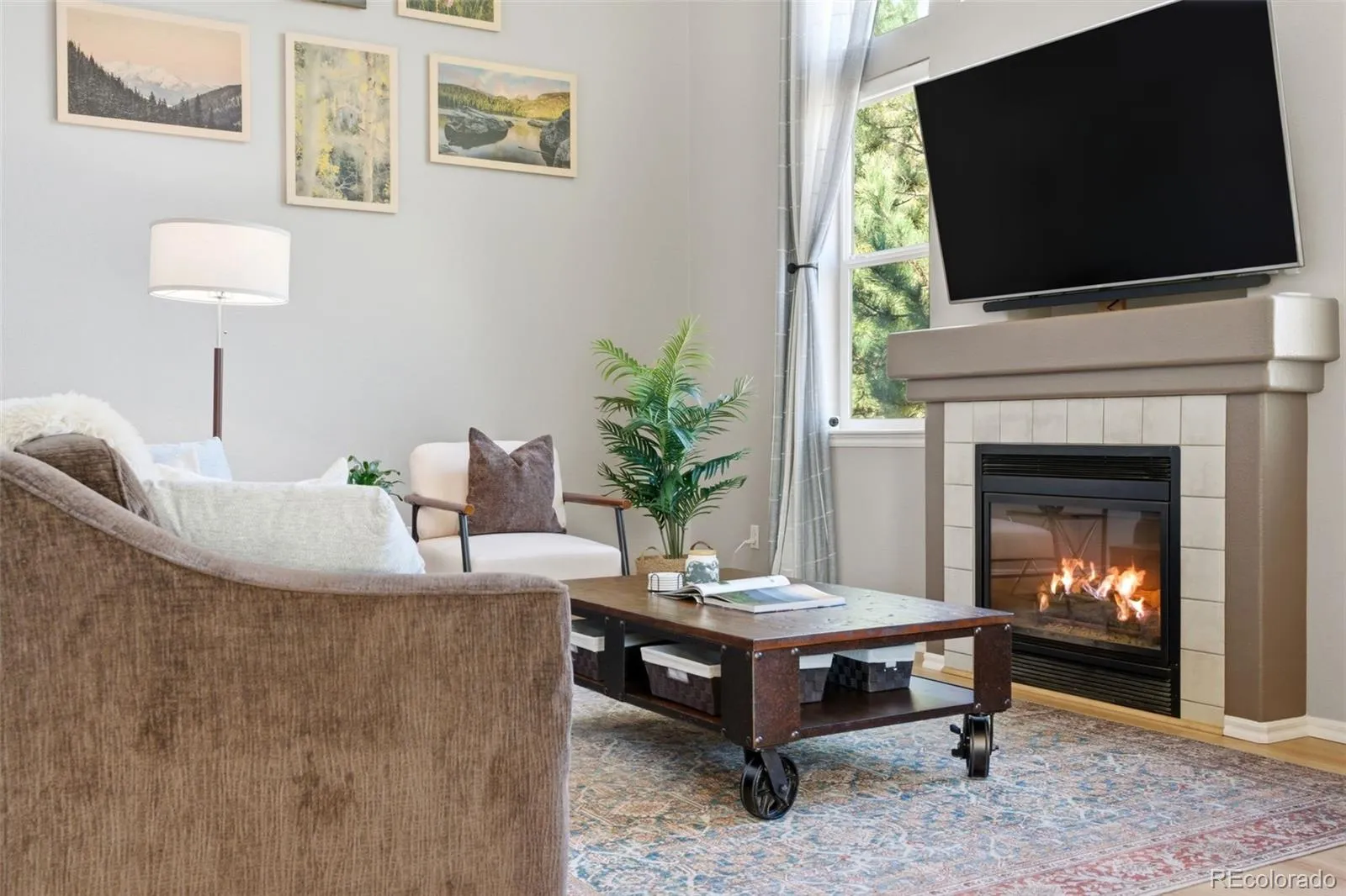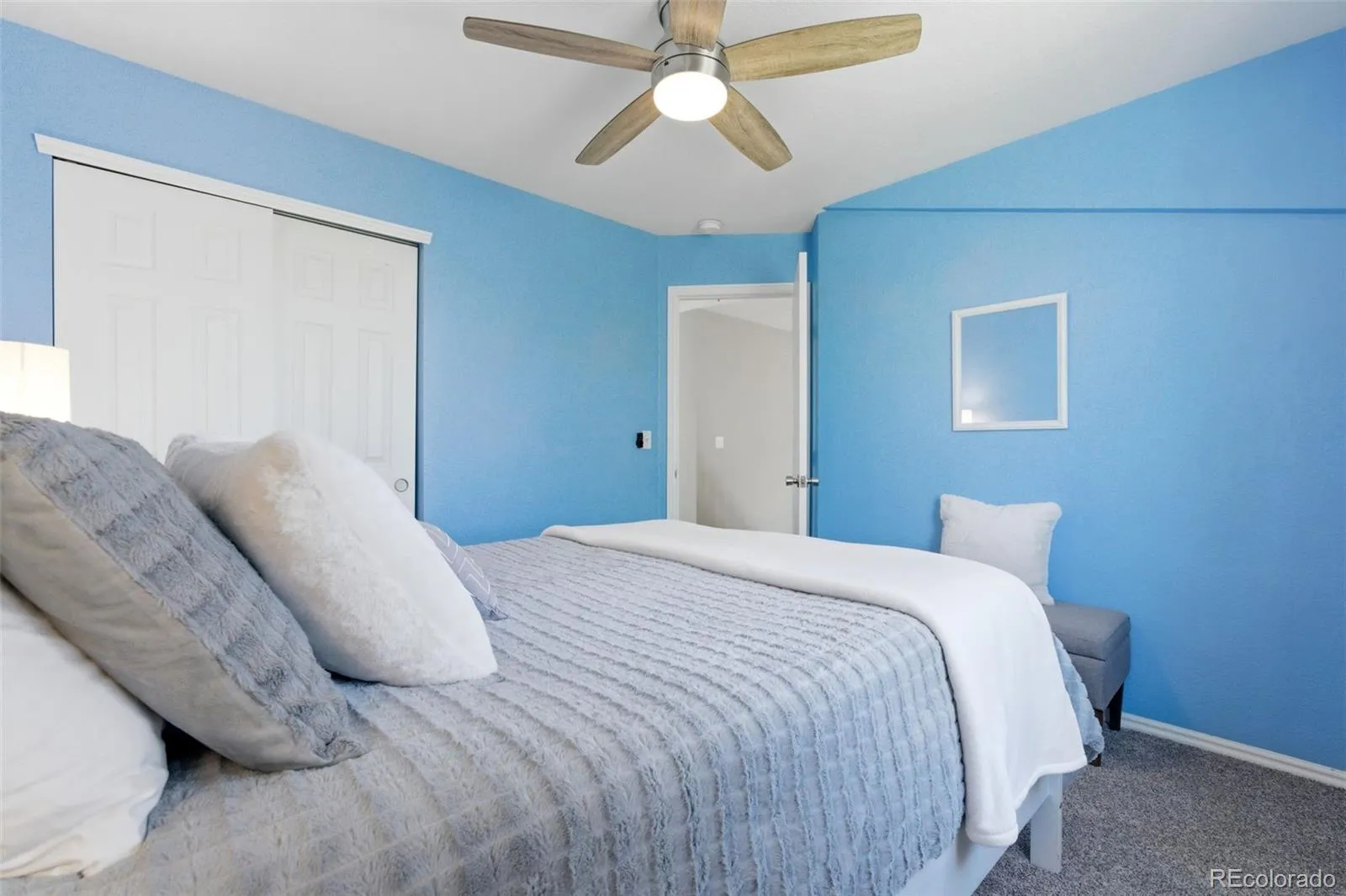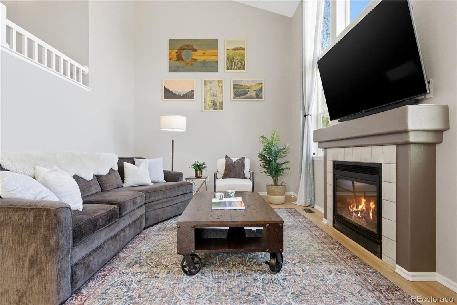 Showings start Wed April 15th, open house Sat April 18th 11-1pm. This two-story, 4-bedroom, 2.5-bathroom home with a finished basement and two-car garage sits on a corner lot in a Thornton community with no HOA. The home makes a great first impression with a south-facing driveway, fresh exterior paint, a new front sidewalk (2024), and a welcoming front porch. Pause in the front foyer to drop your keys before gaining a different perspective of the front yard from the kitchen sink window, featuring views of the mature tree and green lawn with a sprinkler system. The open kitchen features white cabinetry, black countertops, stainless steel appliances, and a peninsula with seating for two stools. The adjoining dining area has a sliding glass door leading to an updated deck (2021), concrete patio, and backyard with sprinklers, new fence (2025), and concrete RV parking. The living room is the heart of the home, featuring two-story lofted ceilings, newer flooring (2020), a gas fireplace, beautiful windows, and an elegant staircase. The attached two-car garage is finished and EV-ready with a dedicated 220V outlet. The garage flows directly into the foyer, where you’ll find a half bath next to the laundry area, washer and dryer included, and ample storage space. The second level features a large primary bedroom with huge south-facing windows, an en-suite bathroom with double vanity, and a walk-in closet. Two additional bedrooms and another full bathroom complete the upper level. The finished basement provides a casual living space and an additional bedroom with a second egress window. Plumbing is already in place to add another bathroom in the basement. Additional upgrades include a new furnace and A/C (2022), new roof (2023), and paid-off 5.67 kW solar panels (2023). This Thornton home is close to the light rail, near parks, and just 20 minutes to downtown—offering comfort, convenience, and thoughtful updates throughout. Please contact agent for all due diligence docs.