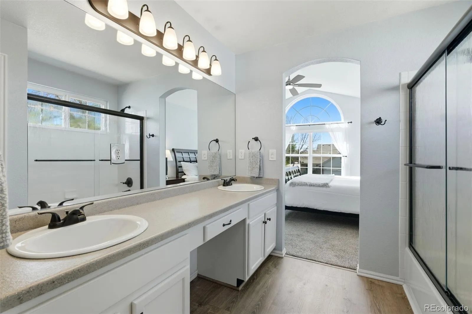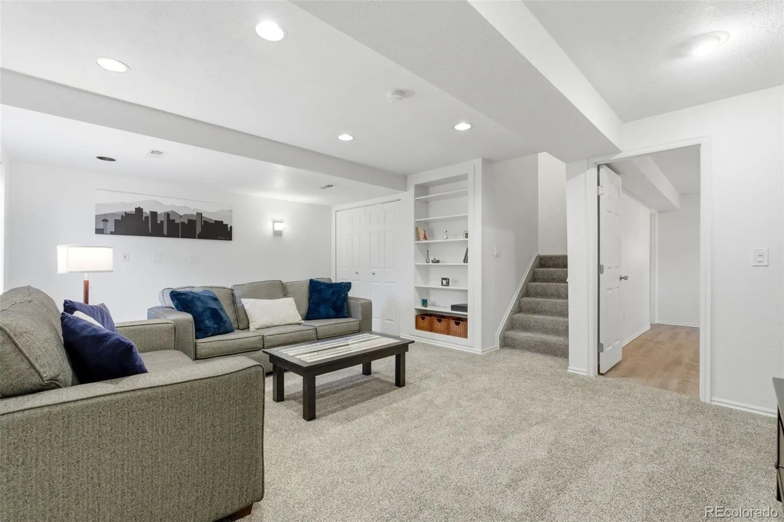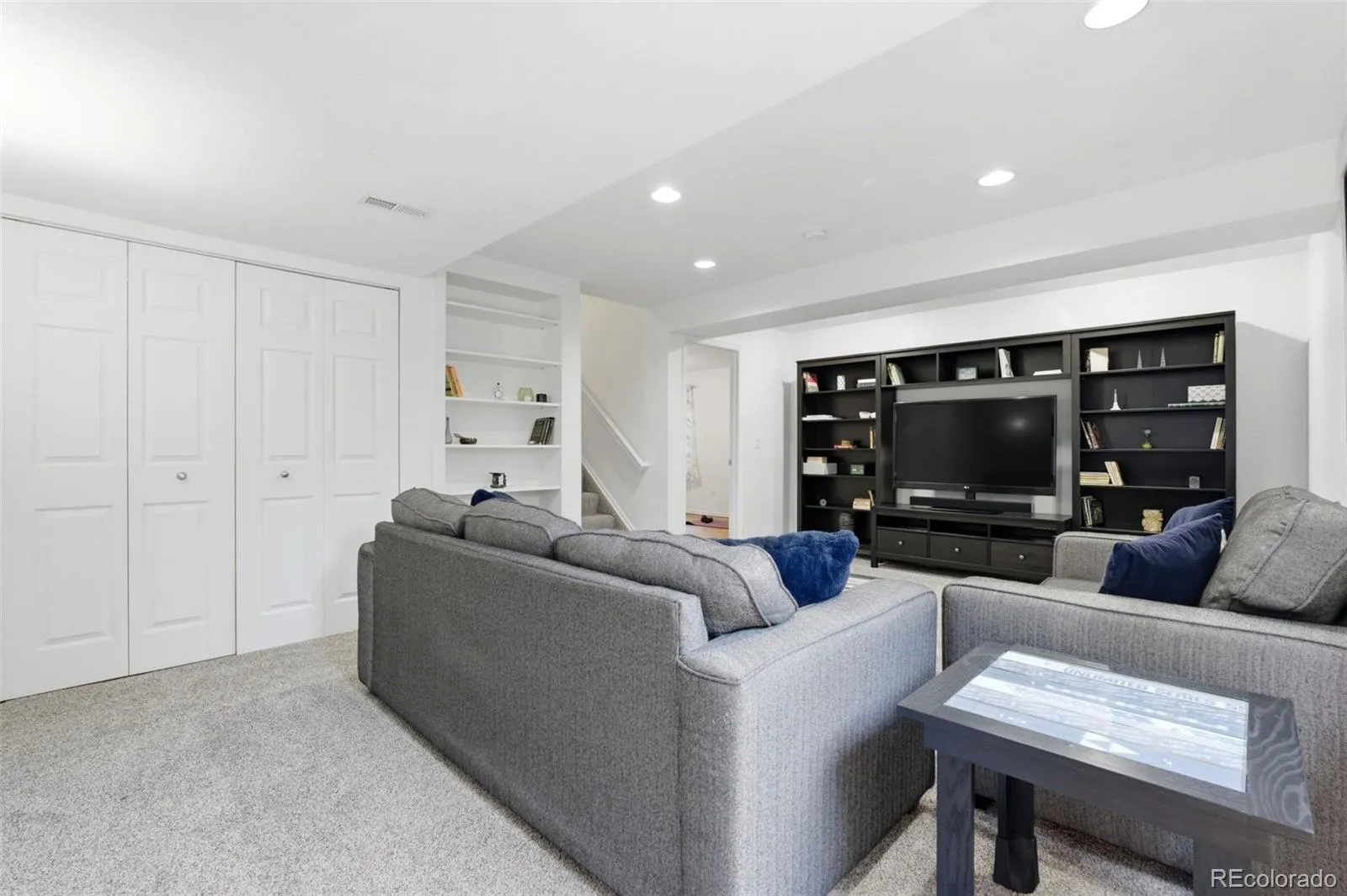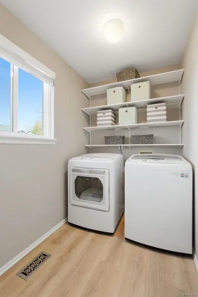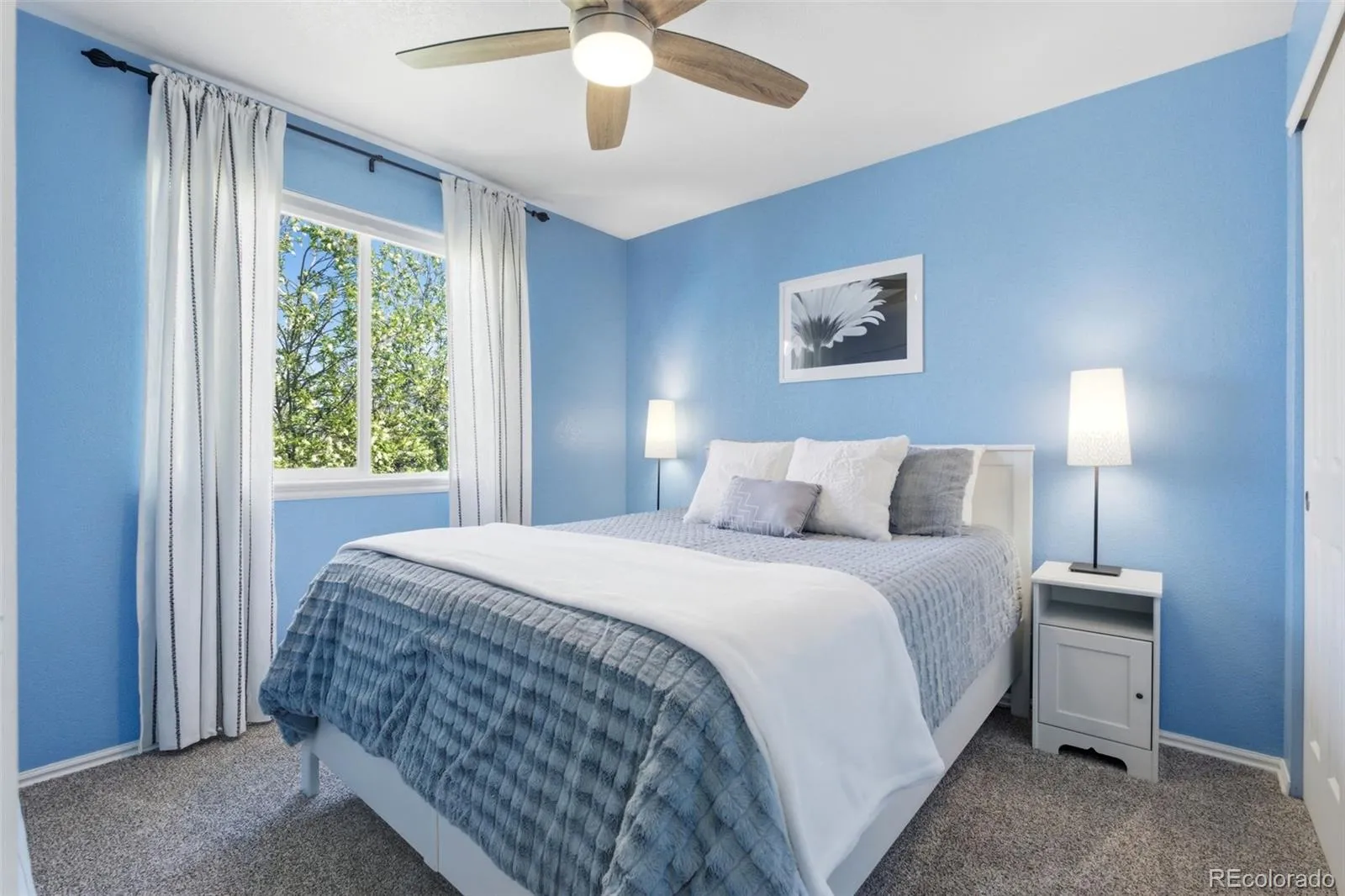Showings start Wed April 15th, open house Sat April 18th 11-1pm. This two-story, 4-bedroom, 2.5-bathroom home with a finished basement and two-car garage sits on a corner lot in a Thornton community with no HOA. The home makes a great first impression with a south-facing driveway, fresh exterior paint, a new front sidewalk (2024), and a welcoming front porch. Pause in the front foyer to drop your keys before gaining a different perspective of the front yard from the kitchen sink window, featuring views of the mature tree and green lawn with a sprinkler system. The open kitchen features white cabinetry, black countertops, stainless steel appliances, and a peninsula with seating for two stools. The adjoining dining area has a sliding glass door leading to an updated deck (2021), concrete patio, and backyard with sprinklers, new fence (2025), and concrete RV parking. The living room is the heart of the home, featuring two-story lofted ceilings, newer flooring (2020), a gas fireplace, beautiful windows, and an elegant staircase. The attached two-car garage is finished and EV-ready with a dedicated 220V outlet. The garage flows directly into the foyer, where you’ll find a half bath next to the laundry area, washer and dryer included, and ample storage space. The second level features a large primary bedroom with huge south-facing windows, an en-suite bathroom with double vanity, and a walk-in closet. Two additional bedrooms and another full bathroom complete the upper level. The finished basement provides a casual living space and an additional bedroom with a second egress window. Plumbing is already in place to add another bathroom in the basement. Additional upgrades include a new furnace and A/C (2022), new roof (2023), and paid-off 5.67 kW solar panels (2023). This Thornton home is close to the light rail, near parks, and just 20 minutes to downtown—offering comfort, convenience, and thoughtful updates throughout. Please contact agent for all due diligence docs.