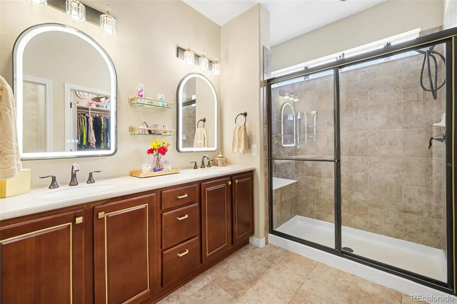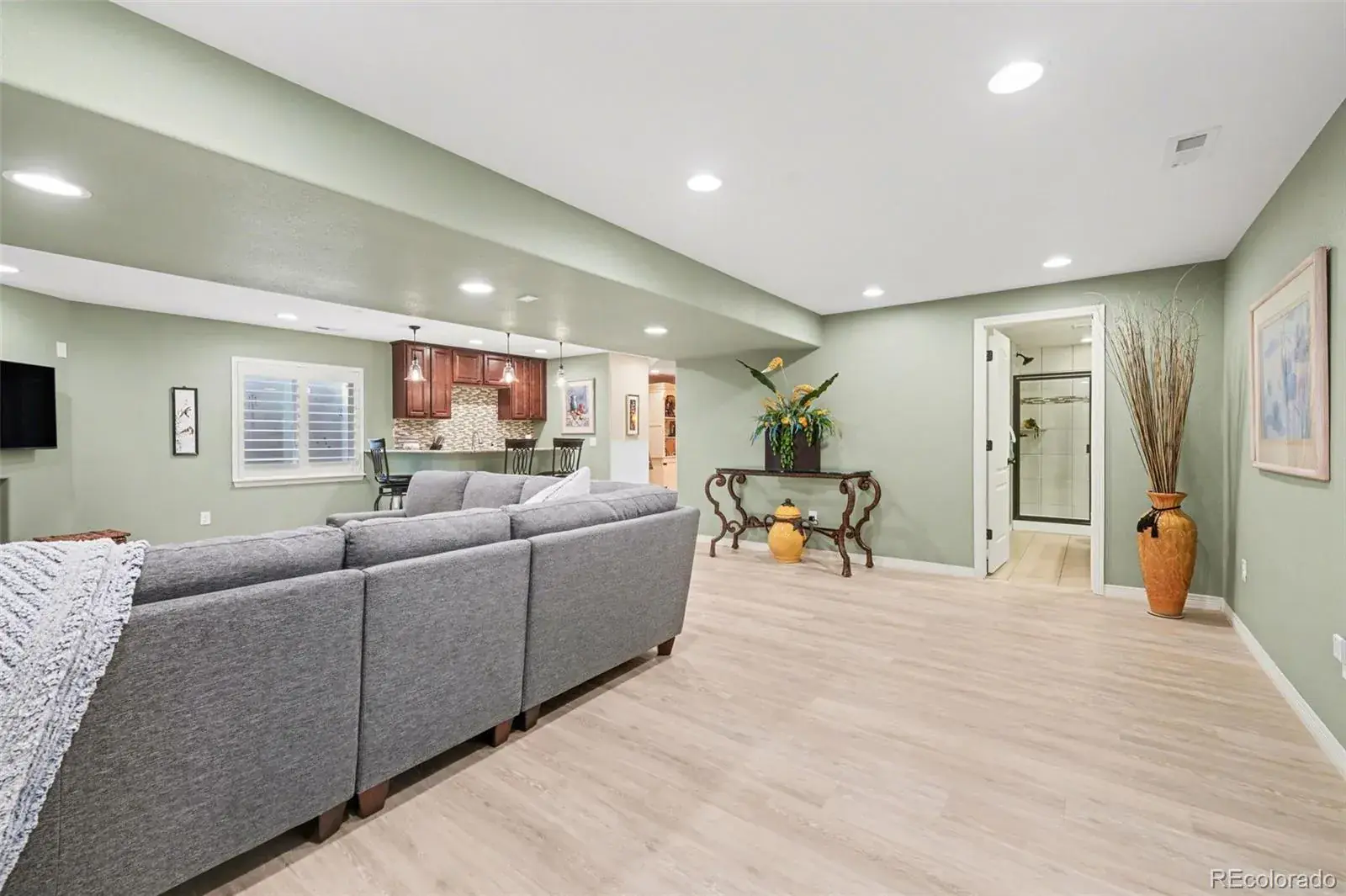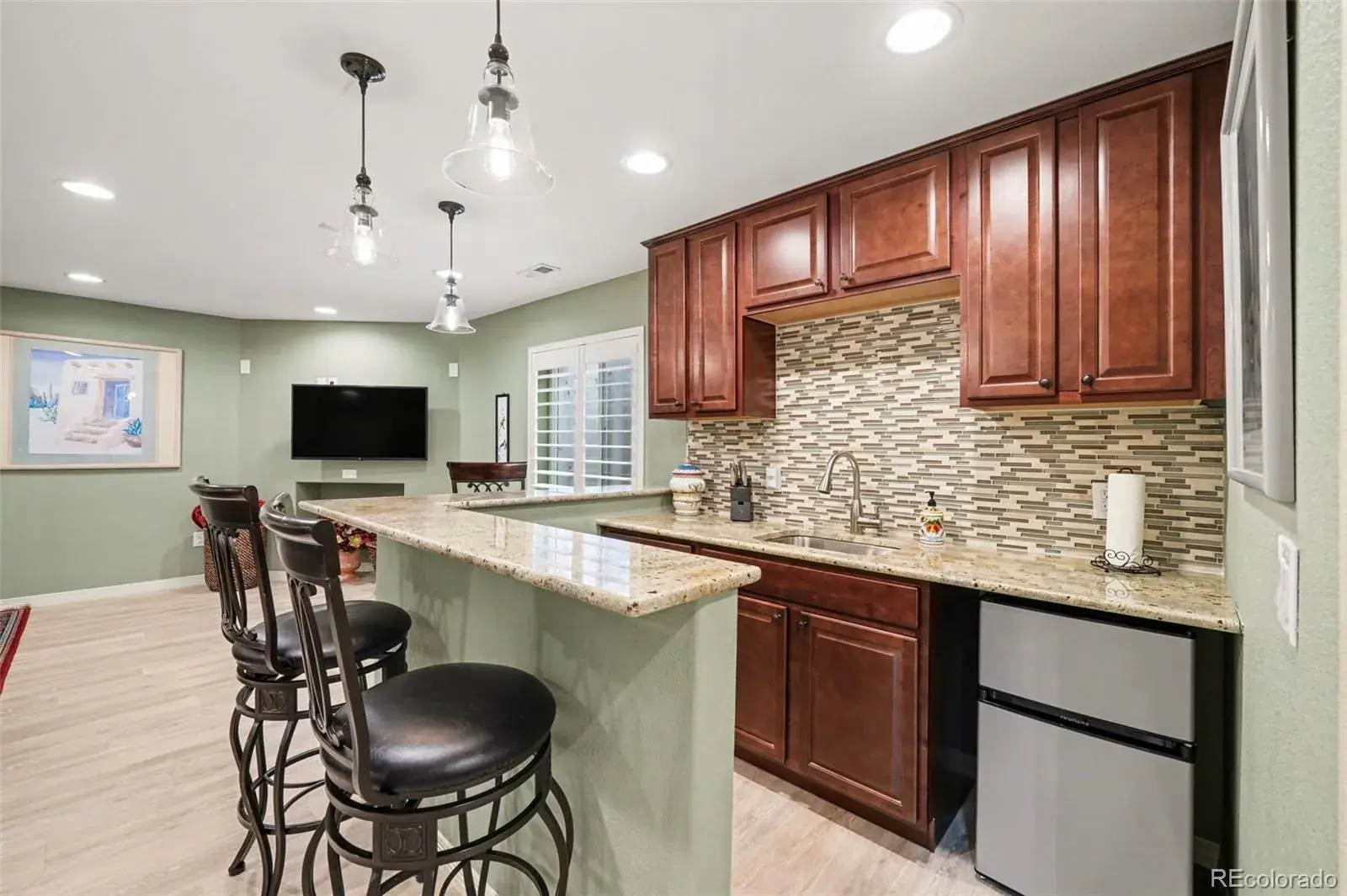 This home in the Heritage Todd Creek 55+ community offers a blend of luxury and functionality, specifically designed for active adult living. Residents have access to the Heritage Todd Creek clubhouse, which serves as the social hub of the community. Enjoy abundant amenities including a gorgeous clubhouse with a fitness center, library, billiards, indoor and outdoor swimming pools, a restaurant, an 18-hole golf course, tennis, pickle ball, and planned activities, all while you mingle and meet like-minded, active adults. Your new home is just a stroll or cart ride away. This gorgeous ranch floor plan will delight you with gleaming hardwood floors, 2 beds, 2 baths, an office, kitchen, living room, and a mud/laundry room on the main level. The fully finished basement is a bonus, adding 3 beds, 1 bath, a wet bar and large recreation room. You have space for guests, hobbies, fitness, or multi-generational living–whatever you need! The windows throughout are beautifully finished with Plantation Shutters. The attached 3-car tandem garage holds vehicles, a workshop and a golf cart. The professionally landscaped yard offers low-maintenance outdoor living and includes hard-wired lighting, flagstone patio, artificial turf and wrought iron fencing for the pups. Super private with no one directly behind you and lush trees for natural screening. The home’s mechanics include central air, 2 sump pumps, gas forced air heating and a GNC Water Filtration System and Charger Water Treatment System for conditioning. A rare opportunity to own a ranch home with a finished basement in one of Colorado’s premier active-adult communities.