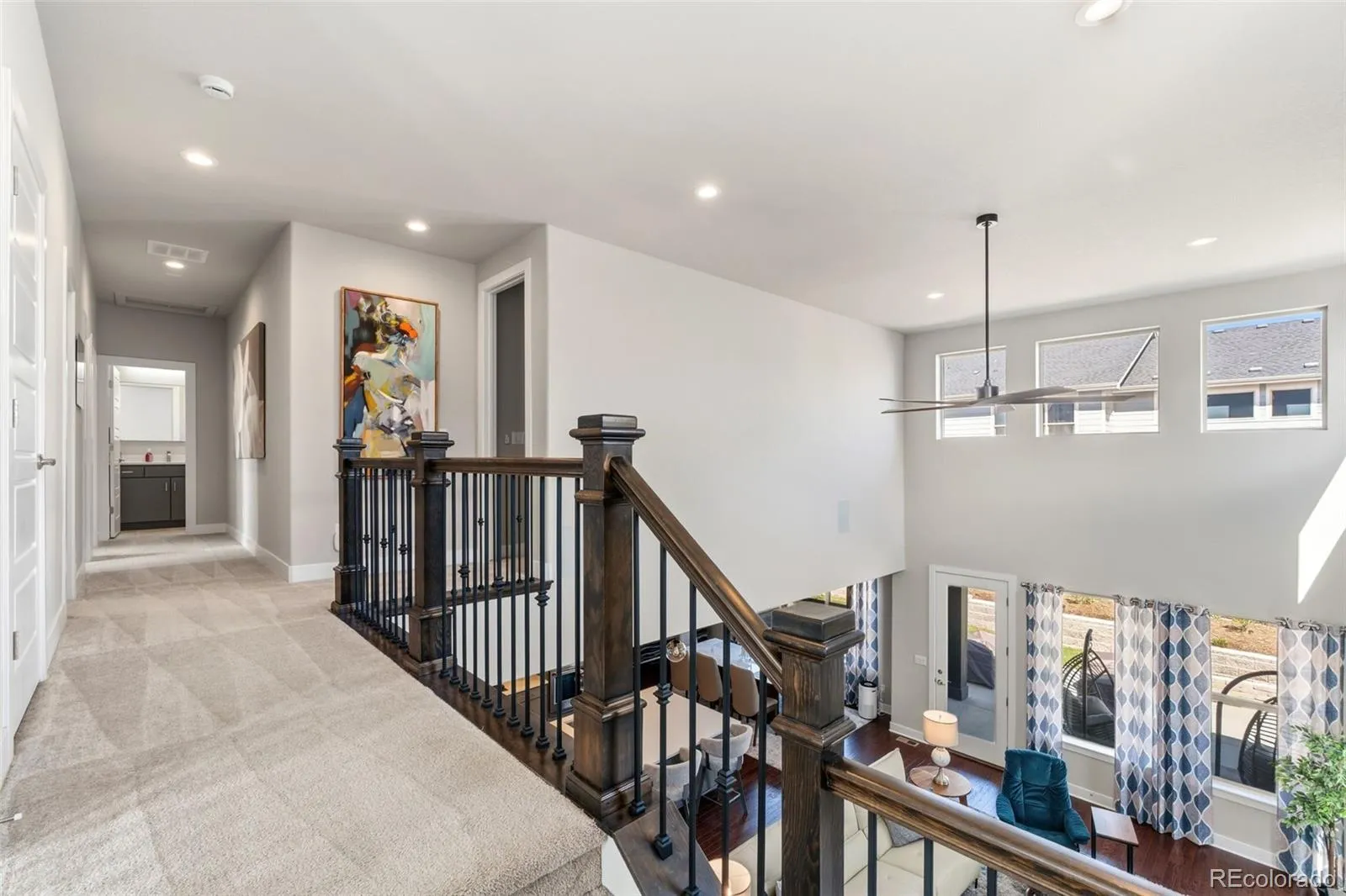 This beautifully designed Toll Brothers home welcomes you with a beautiful foyer with stunning two-story ceilings and open wrought iron railing. The main floor has low-maintenance WPC wood floors and 8′ tall doors. The great room features soaring vaulted ceilings and generous windows filling the space with natural light. The spacious kitchen includes a gas cook top, lots of cabinet space and quartz countertops opening onto the dining space. The kitchen island adds to your cabinet space and has a beautiful and sleek design. Upstairs, a generous primary bedroom suite also features large windows to fill the space with natural light, and a huge walk-in closet. The Primary Bathroom includes a private water closet, separate vanities and quartz counter tops. Two additional bedrooms are roomy with walk-in closets. The laundry room has lots of cabinet space. The tandem 2.5-car garage has plenty of room for storage. The North Hills community offers luxurious amenities with a fitness center, community gathering rooms, trails and 9-acre park with basketball court.