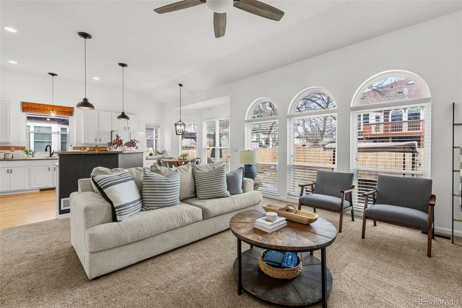 Step inside to discover an open floor plan with vaulted ceilings and timeless details like solid wood six-panel doors and bright sunny windows throughout. The heart of the home opens to a park-like backyard oasis, complete with a sprawling patio, low-voltage lighting, mature landscaping, and a sprinkler system—perfect for unwinding or entertaining.