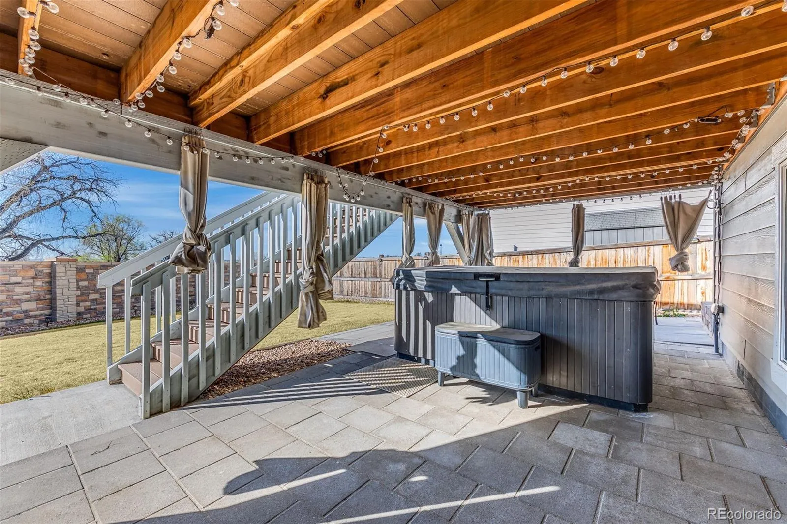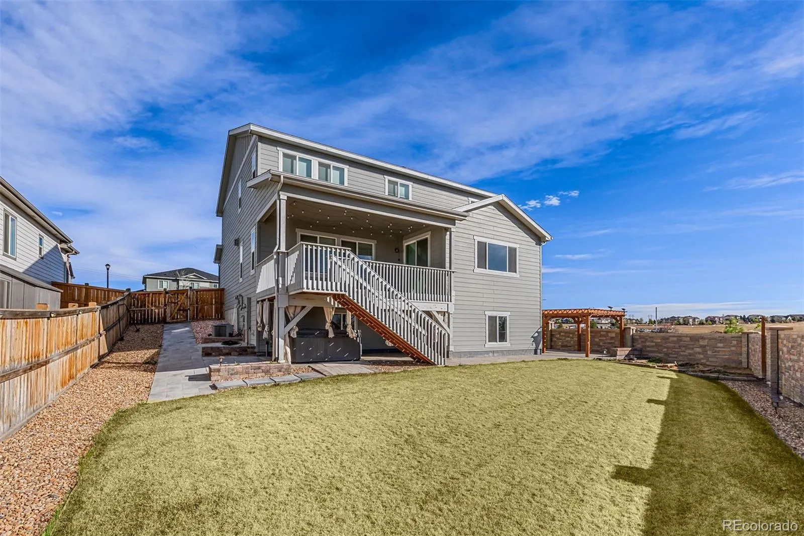 The outdoor living experience is equally impressive. Enjoy a covered deck with a built-in gas line for grilling, overlooking beautiful open space—ideal for entertaining or unwinding. The fully landscaped yard has been thoughtfully completed with a new fence, sprinkler system, and modern pavers for low-maintenance living, along with a hot tub to relax and take in the peaceful surroundings.