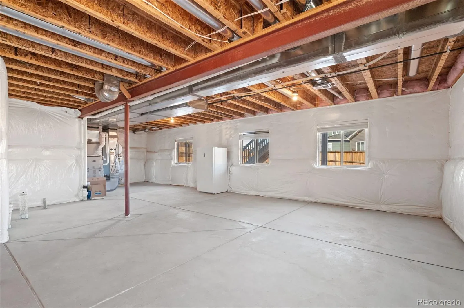 Upstairs, you’ll find an expansive loft, a convenient laundry room, and four well-appointed bedrooms. The luxurious owner’s suite features dual vanities and a customized walk-in closet. Bedroom four offers its own private bath, while the additional full bathroom is shared by the remaining two bedrooms. Additional enhancements include. Outdoor living shines with a covered deck complete with stairs, a gas line. The rare garden-level unfinished basement with abundant natural light provides endless potential and includes a bathroom rough-in, radon mitigation system, sump pump, and a whole-house humidifier. Additional features include a stove with double oven, blinds throughout, and ceiling fans in bedrooms.