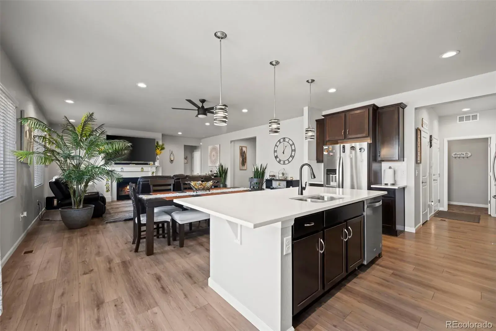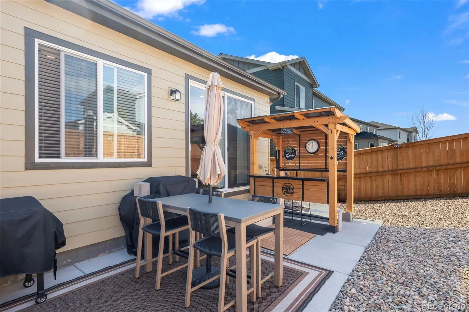 Newer ranch style home with 3-car tandem garage in the wonderful Mayfield community! One of the largest ranch floorplans, this home offers a bright great room featuring a gas log fireplace, updated fixtures, and LVP flooring that flows throughout the main living areas. The gourmet eat-in kitchen is perfect for entertaining with quartz counters, a large island, gas cooktop with hood, custom pendant lighting, and plenty of space to gather. The spacious primary suite includes a luxurious 5-piece en-suite bath with tile flooring, quartz counters, and a walk-in closet. Two additional bedrooms are conveniently located on the main level, along with a full bathroom featuring quartz counters, LVP flooring, and a shower/tub combo. A bright office or flex room, powder bath, and main-level laundry add to the home’s thoughtful layout. Step outside to the Xeriscaped backyard with an extended patio with pergola—ideal for outdoor living and entertaining. Close to parks, trails, shopping, and dining, this home is in the ideal location!