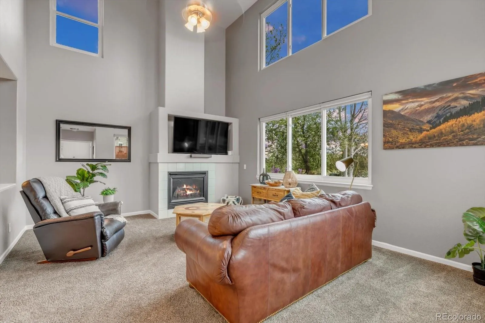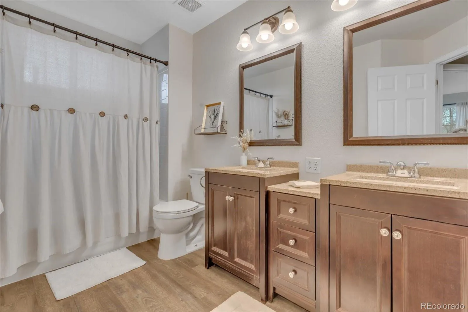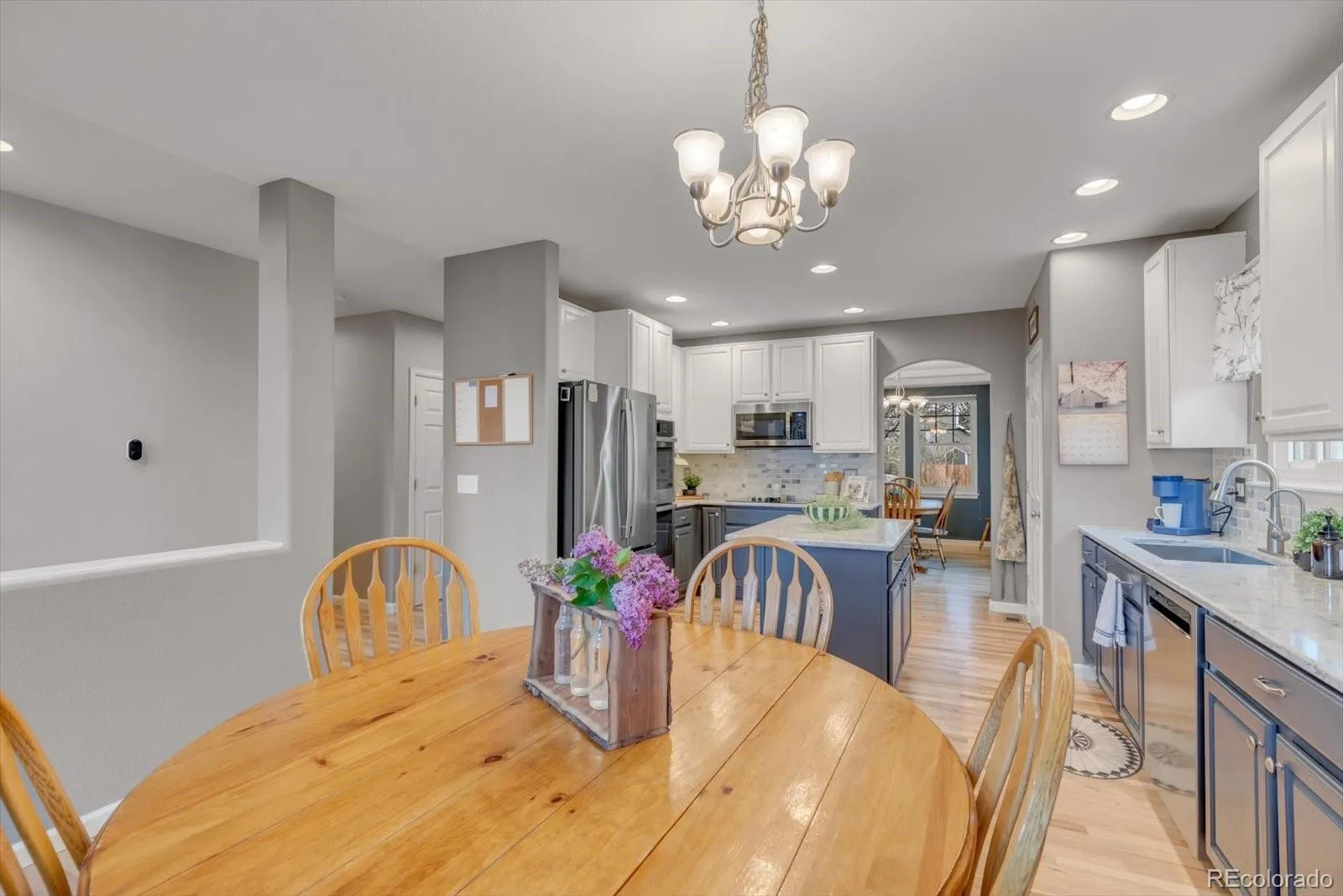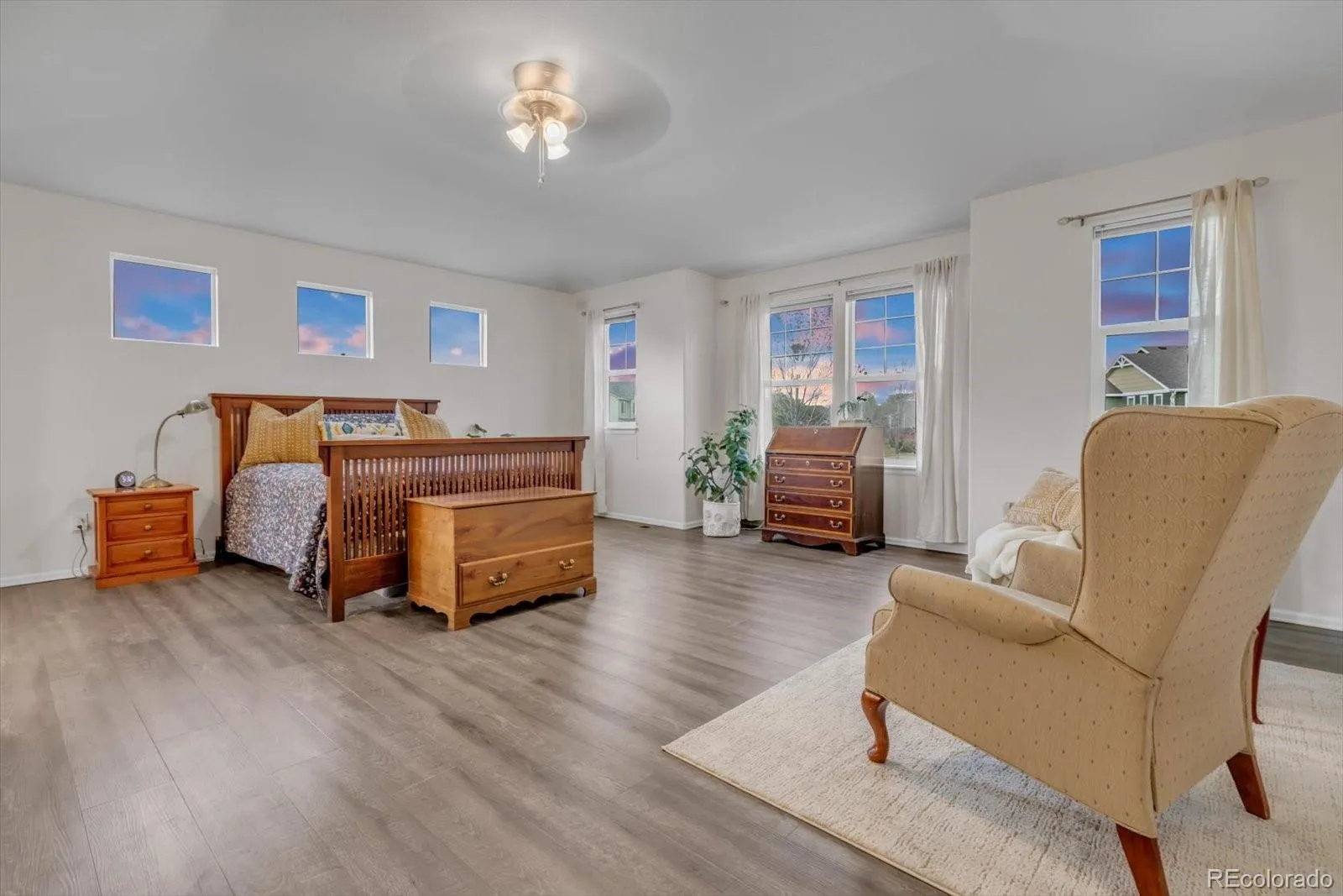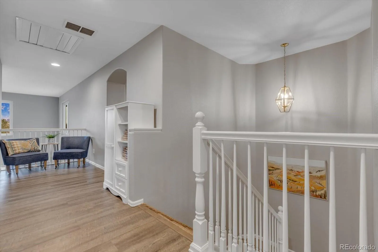 Beautiful large home in desirable Quebec Run with over 4500 square feet! Situated on a huge mature lot that backs to open space, this home has it all! Great curb appeal with new concrete driveway and paver patio for additional parking. Three-car tandem garage allows for workshop or extra storage. Newly refinished real hardwood floors greet you upon entry! Separate dining room allows for entertaining and large gatherings. Updated kitchen includes new quartz countertops, newer stainless steel appliances, updated extended cabinetry and large eat in space. Vaulted ceilings in spacious family room with fireplace and wall of windows for views to the outdoor space are the perfect hang out spot for everyone!. Sunny and bright office on main with half-bath make a great WFH option as well! Upstairs has 4 incredibly spacious bedrooms! The primary bedroom is a beautiful large retreat space with sitting area for relaxing on quiet nights. The large 5-piece primary bath and massive walk-in closet are the perfect compliments to this spa-like retreat space. The secondary full bath has been completely remodeled! Fresh paint throughout home, new roof and gutters will be installed, solar panels for lower utility bills, newer attic fan, newer lvp flooring and carpet installed upstairs. Windows replaced on main level and still under warranty! Basement is fully finished with kitchenette space, dining area, living room, bedroom and updated bathroom for possible income potential. Backyard is massive with mature trees, (two of them peach), lilac bushes and more with new concrete patio, fire pit, shed and more! Great location convenient to shopping, restaurants and downtown Denver!