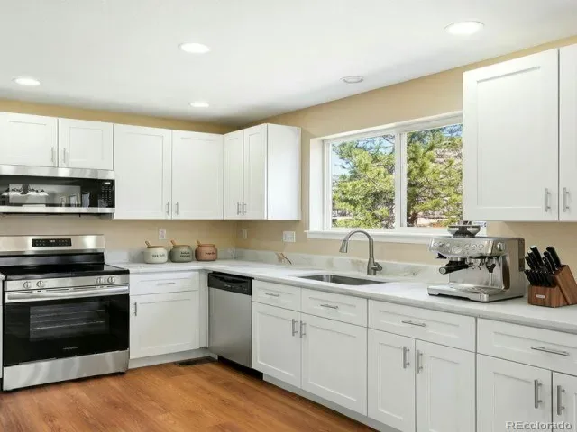 Fully remodeled 3 bed 3 bath and move-in ready home! Welcome to 13214 Columbine Circle in the desirable Signal Creek community of Thornton. This home has been thoughtfully updated throughout, offering a clean, modern feel with the space and layout buyers are looking for. Step inside to bright, open living areas with updated flooring, fresh finishes, and a layout that just works. The kitchen has been completely redone with modern cabinetry, granite countertops, and new appliances, opening nicely to the main living space, perfect for everyday living and easy entertaining. Bathrooms have been fully updated with a fresh, contemporary look, and the entire home has a cohesive, turnkey feel from top to bottom. With multiple living spaces and a flexible floor plan, there’s room to spread out, work from home, or host friends and family without feeling tight on space. The location seals the deal. Signal Creek is a well-established neighborhood with a community pool, parks, and walking trails. You’re just minutes from The Orchard Town Center for shopping, dining, and entertainment, as well as Trail Winds Recreation Center and nearby open space. Quick access to I-25 and E-470 makes commuting simple, and the nearby RTD N Line light rail offers an easy ride into downtown Denver.