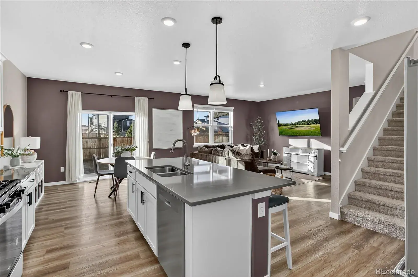 Inside, get ready to grin over updated lighting fixtures that set the mood, fresh paint that pops with personality, and upgraded appliances that make chores a breeze. Bonus thrills include an electric car charger for your eco-adventures, a versatile loft space begging for movie marathons, and tons of room to entertain your squad. Perched across from the park and just a hop from golf courses, a shiny new grocery store development, and top-notch 27J schools, this home mixes new-build perks with move-in-ready joy—your dream pad is calling, come play!