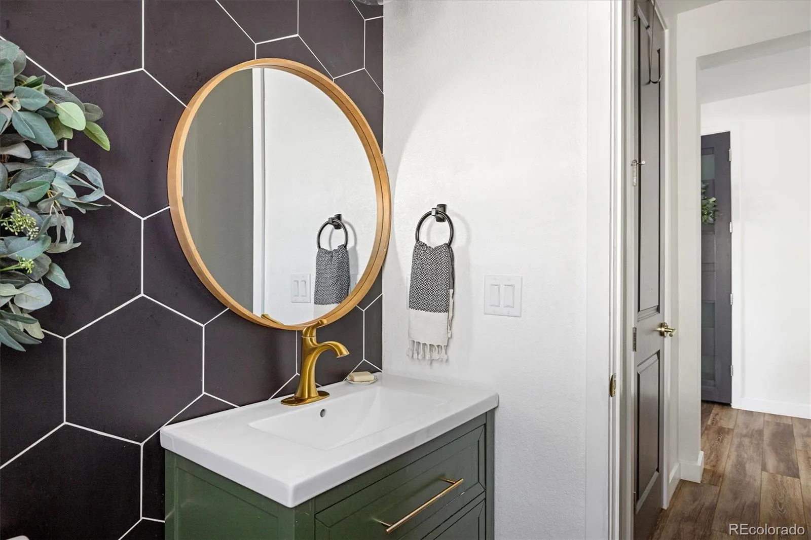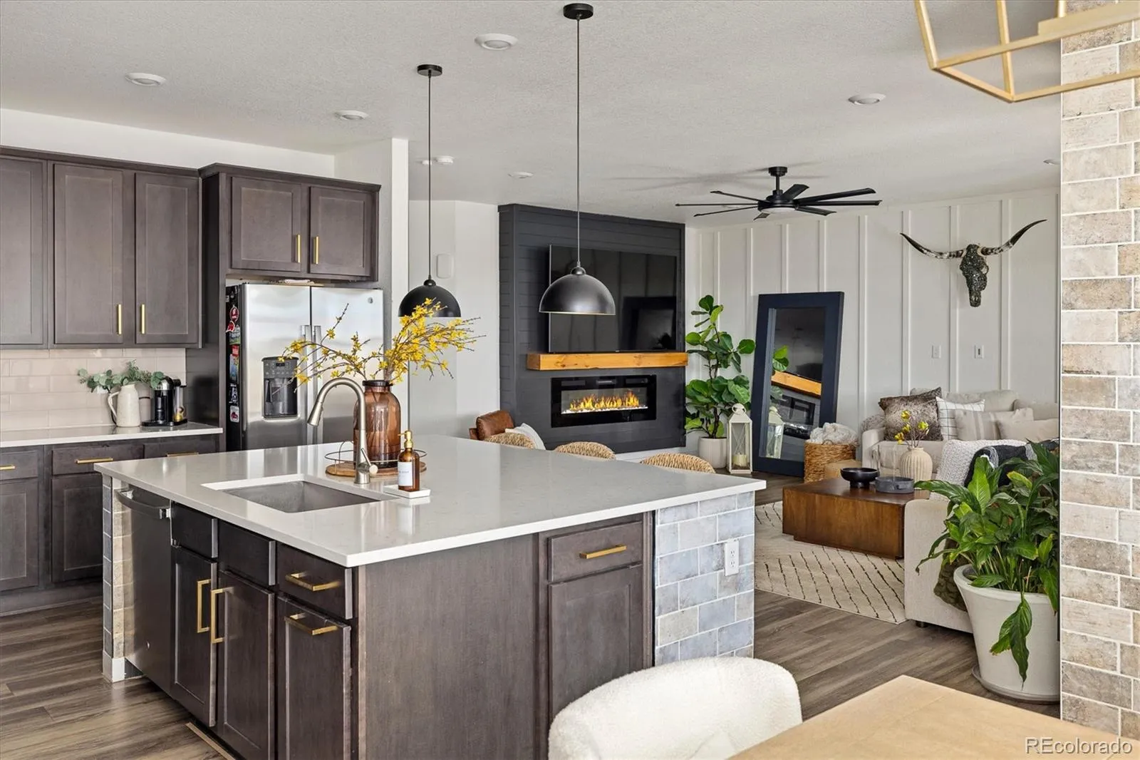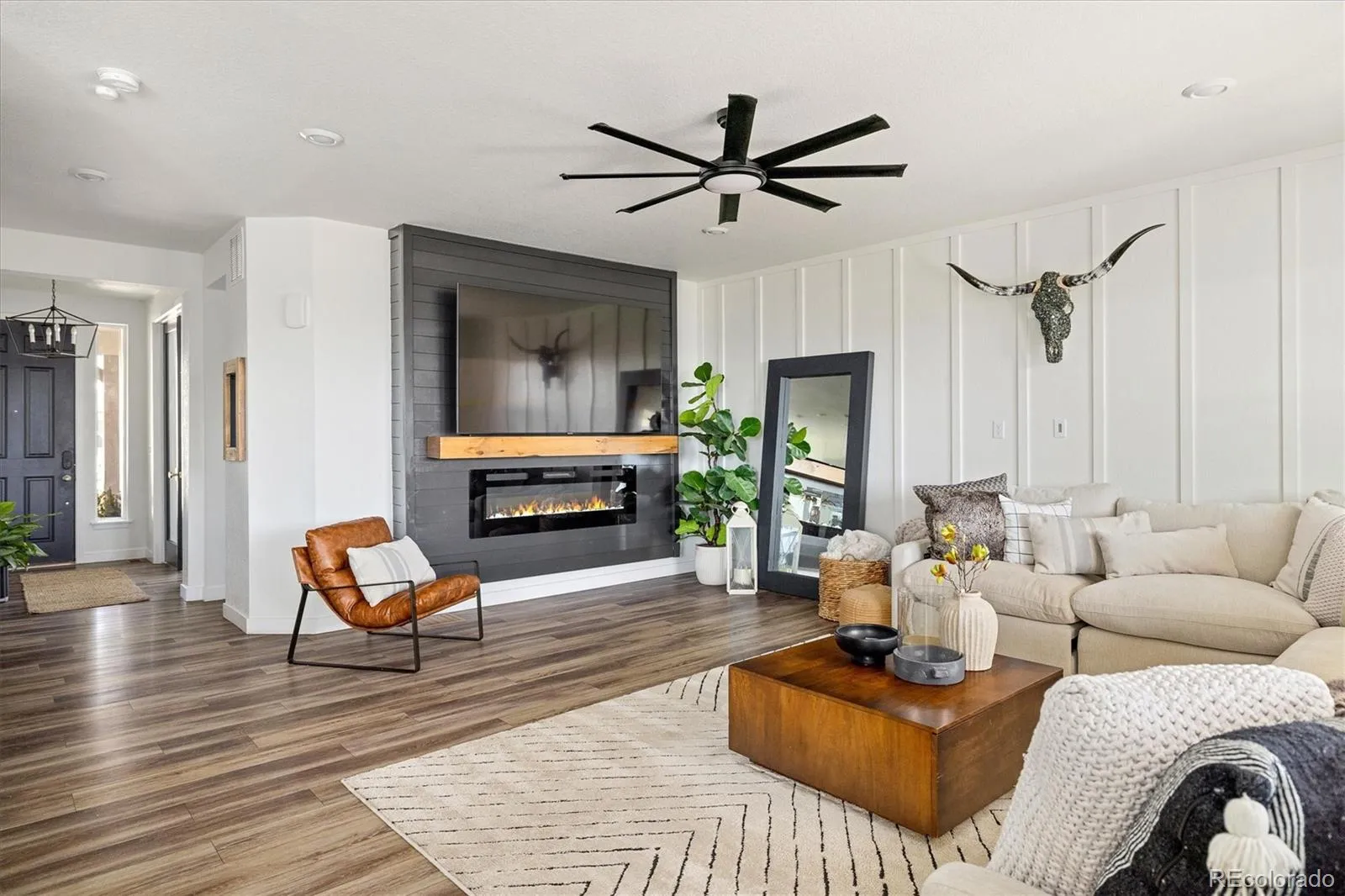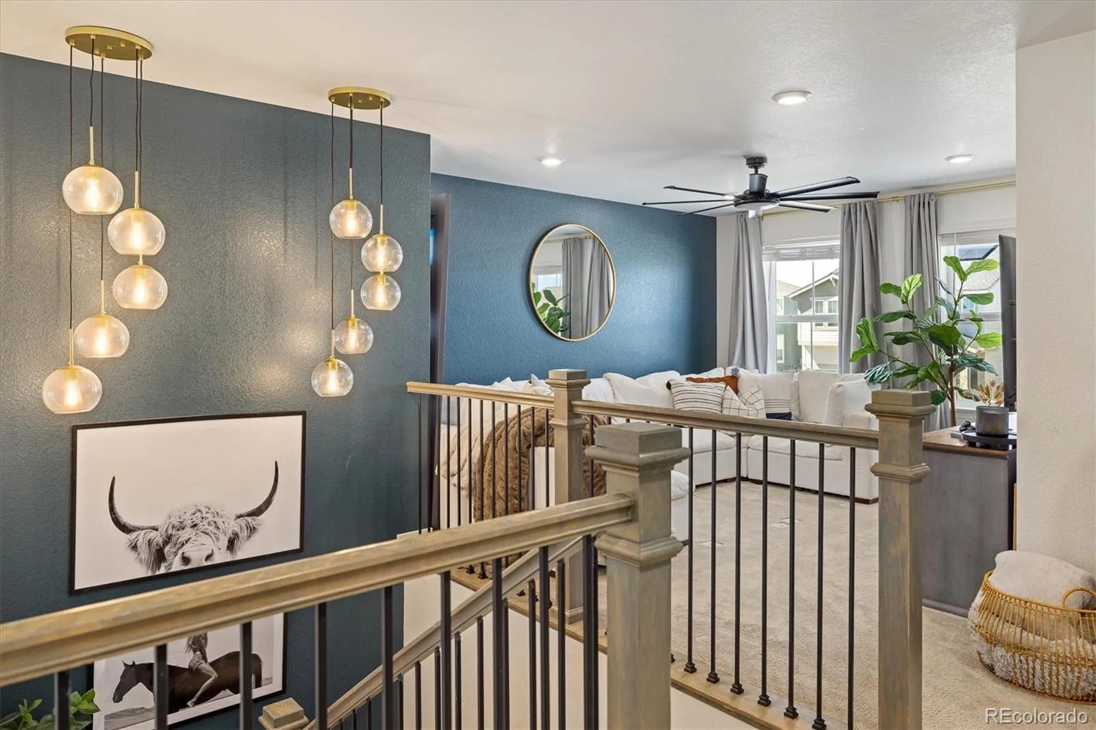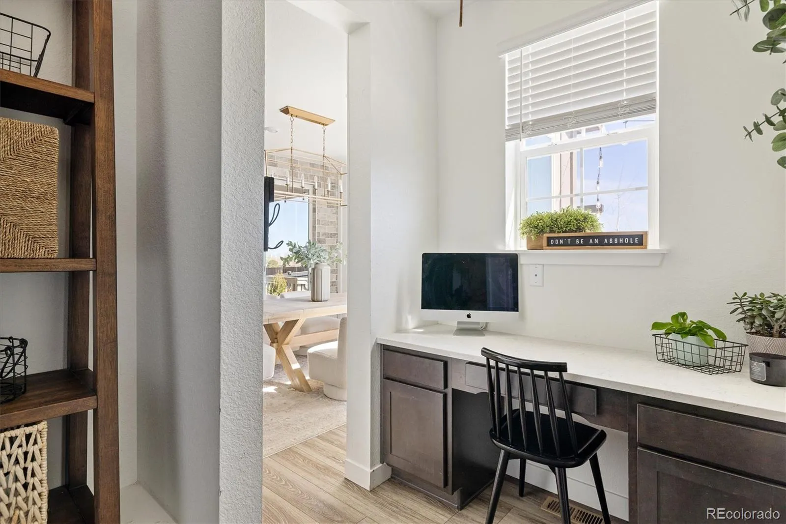 The main level is designed for both style and function, featuring a spacious office/bedroom/flex space with custom glass doors, a striking powder room with octagonal tile walls & custom cabinetry with designer hardware. Relax in the great room, complete w/ a modern fireplace and mantle, shiplap walls & large windows for plenty of natural light. The kitchen is a chef’s dream w/ elegant cabinetry, gas range, gold hardware, quartz countertops, designer island, custom lighting, stainless appliances, large pantry, office nook & convenient mudroom space. The dining room is highlighted by a gorgeous tiled accent wall & sunlight pouring in on all sides.