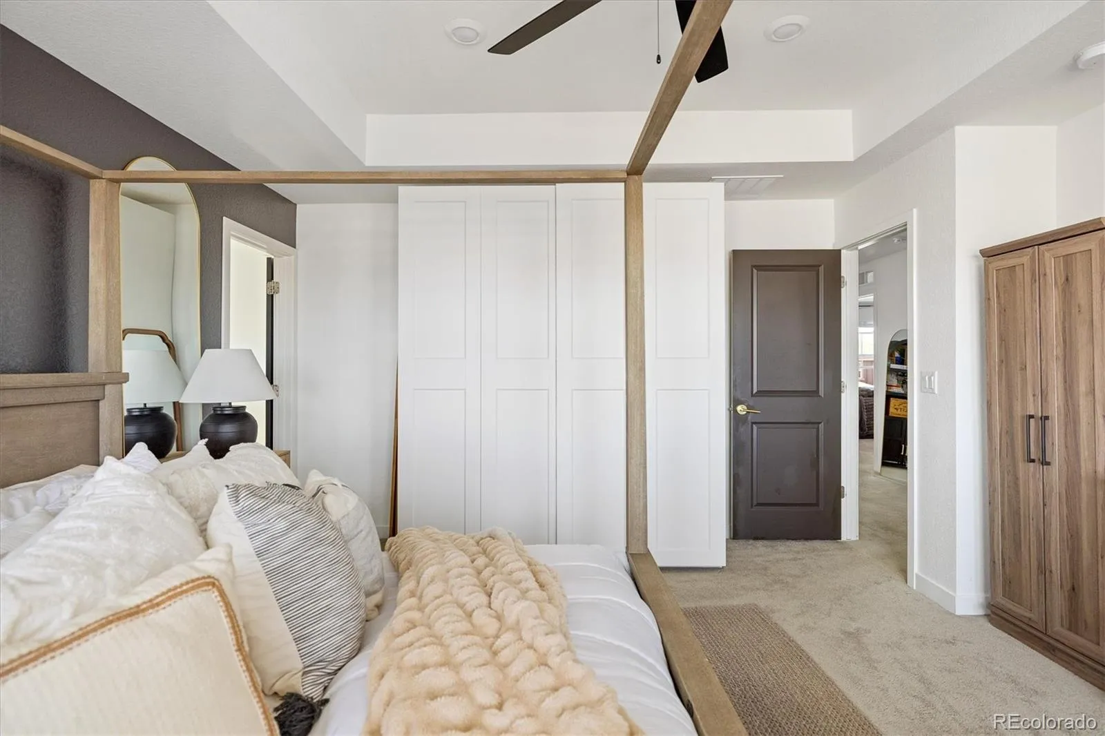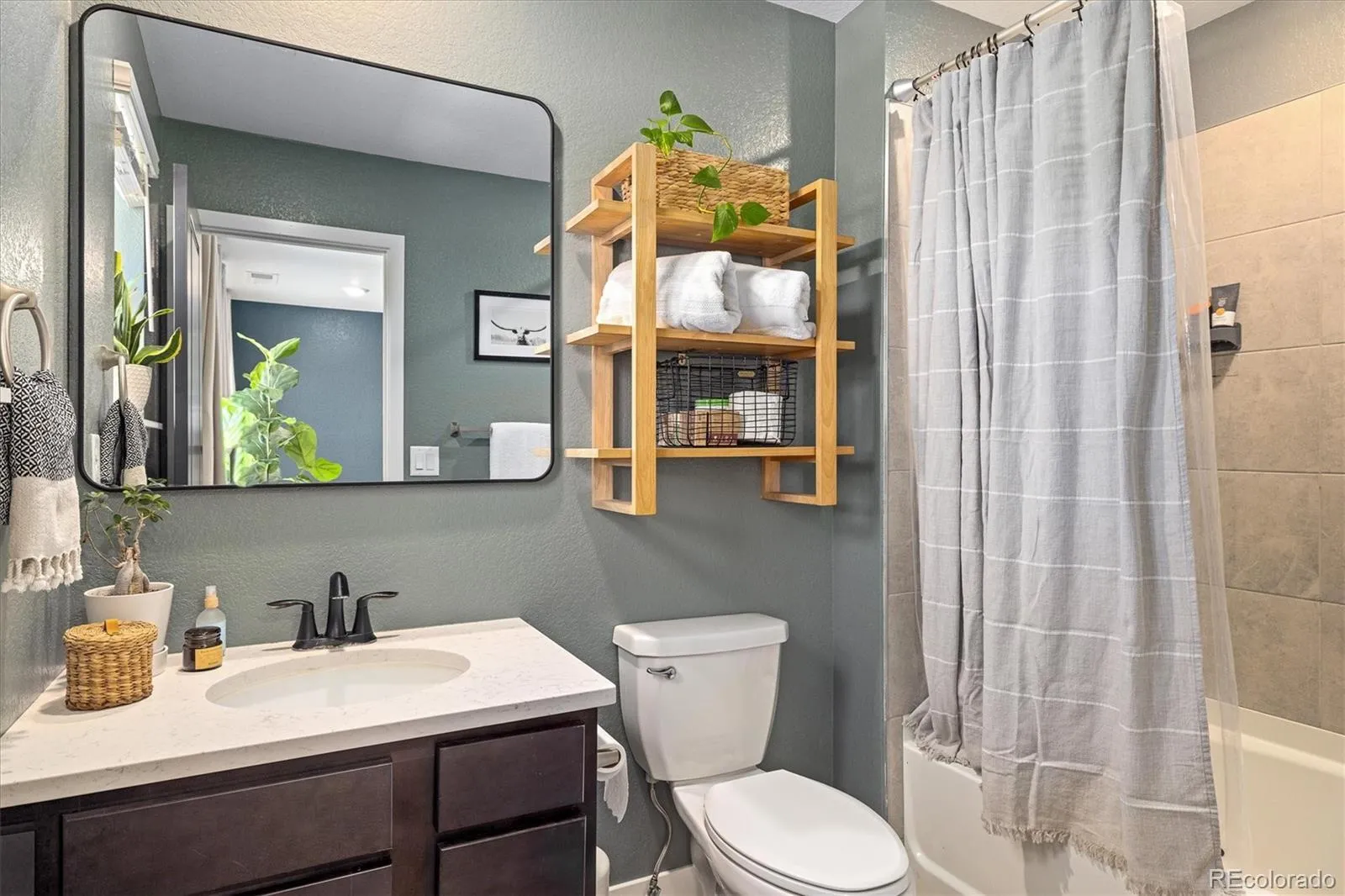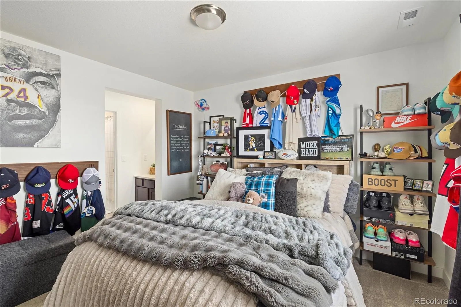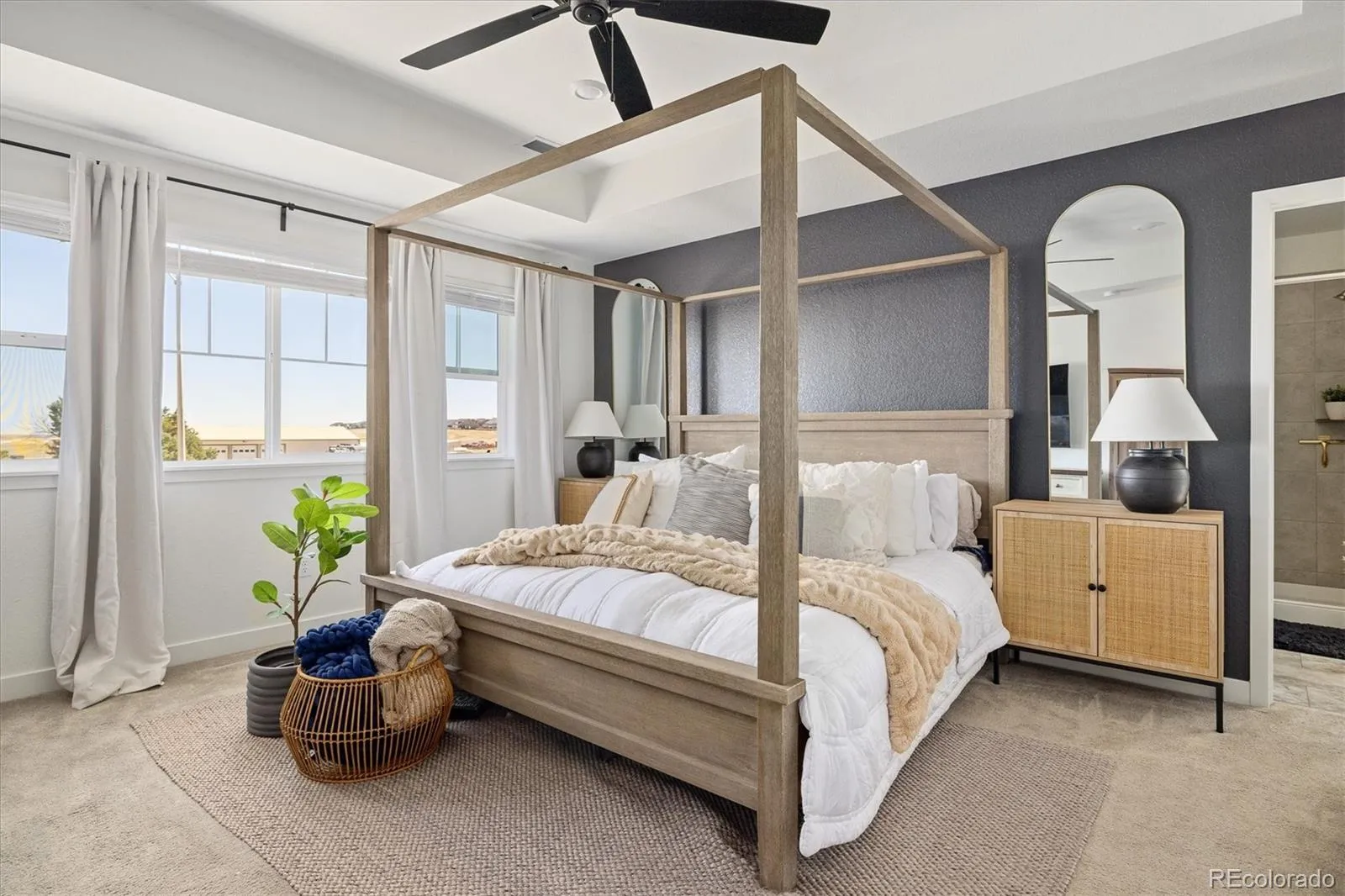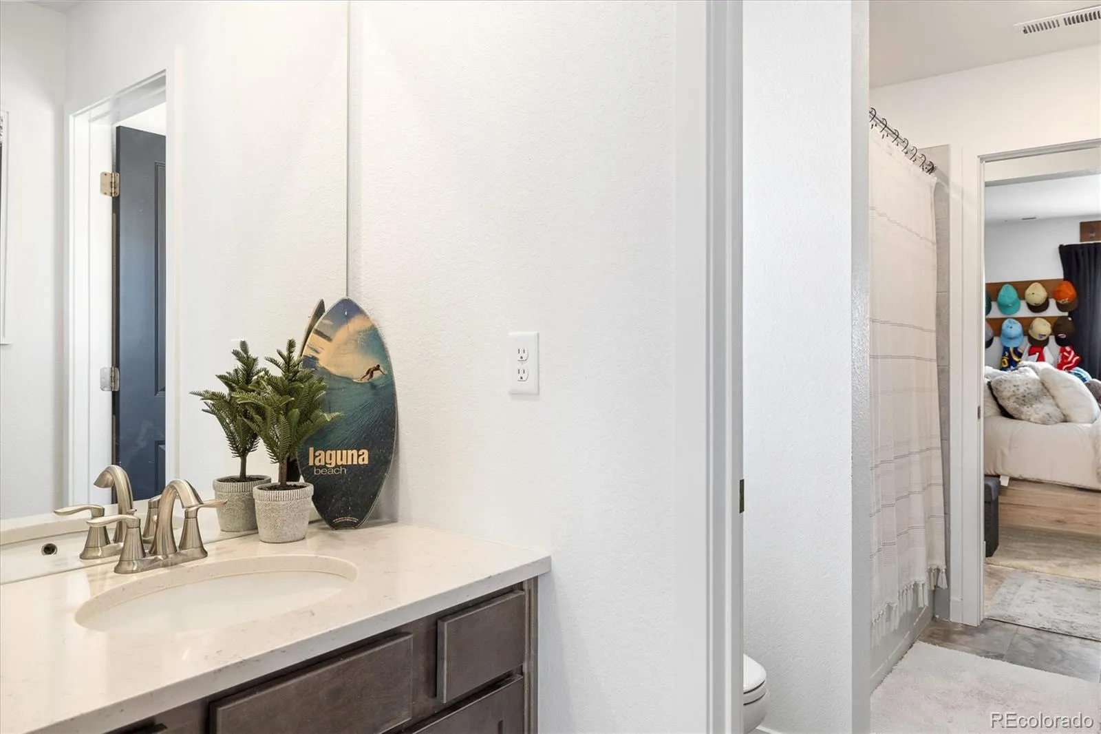 Upstairs, the layout is equally appealing! The laundry room, 2 spacious bedrooms connected by a Jack and Jill bathroom & large loft/potential bedroom w/ its own full bath make this home very versatile. The primary retreat is pure luxury—featuring a stunning accent wall, a huge walk-in closet, built-in armoire, spa-like bathroom w/ dual vanities, framed mirrors, extra counter space & large shower w/ bench.